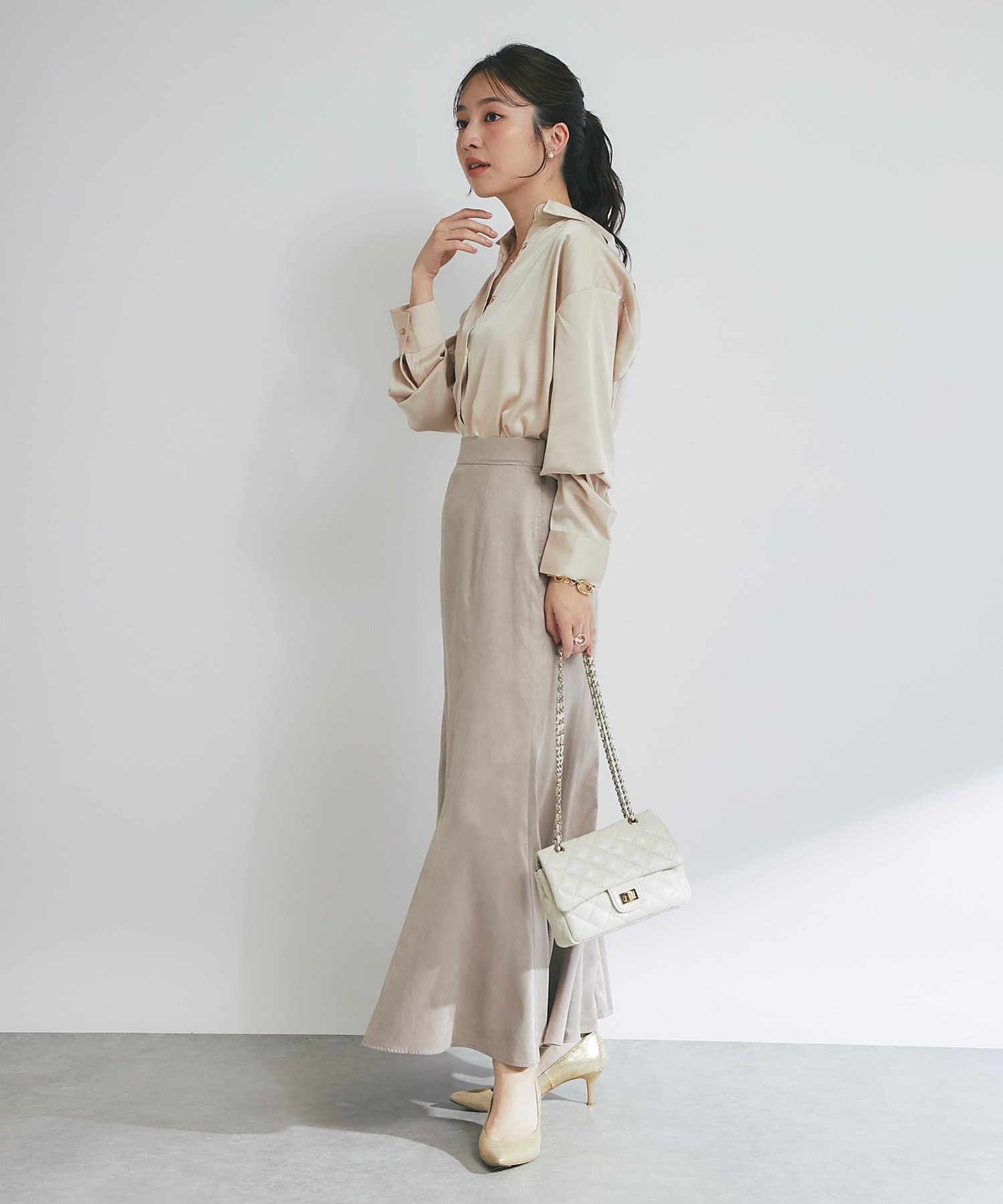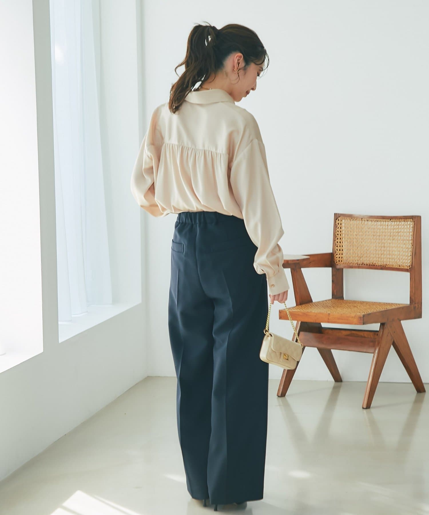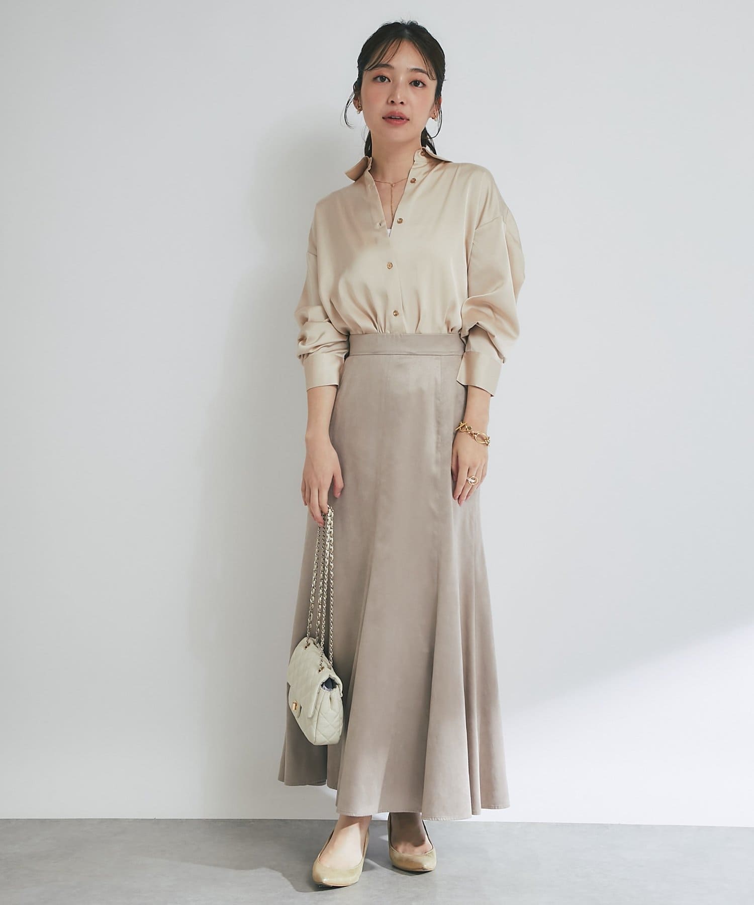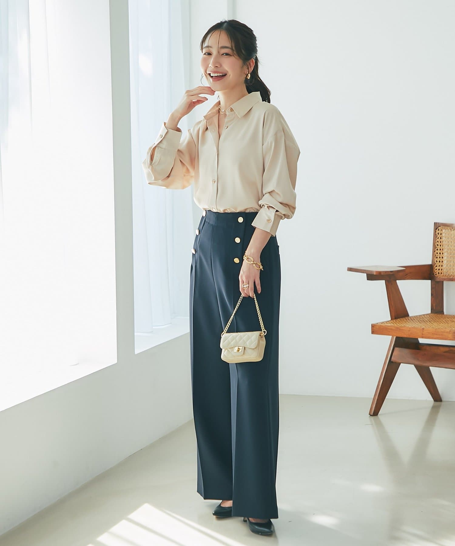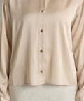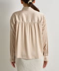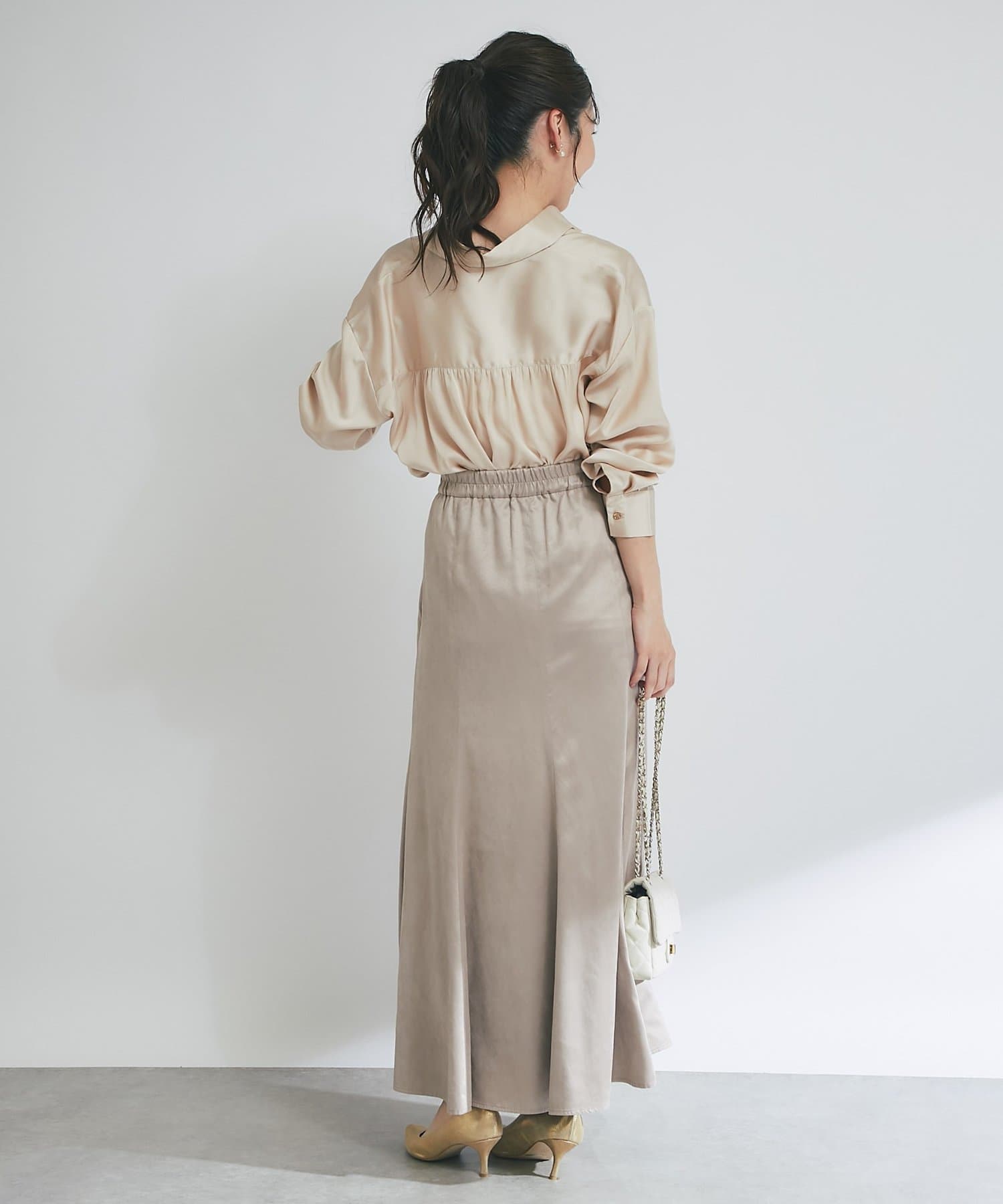 女性らしい艶感と落ち感が魅力の、上品見えするサテンシャツ。