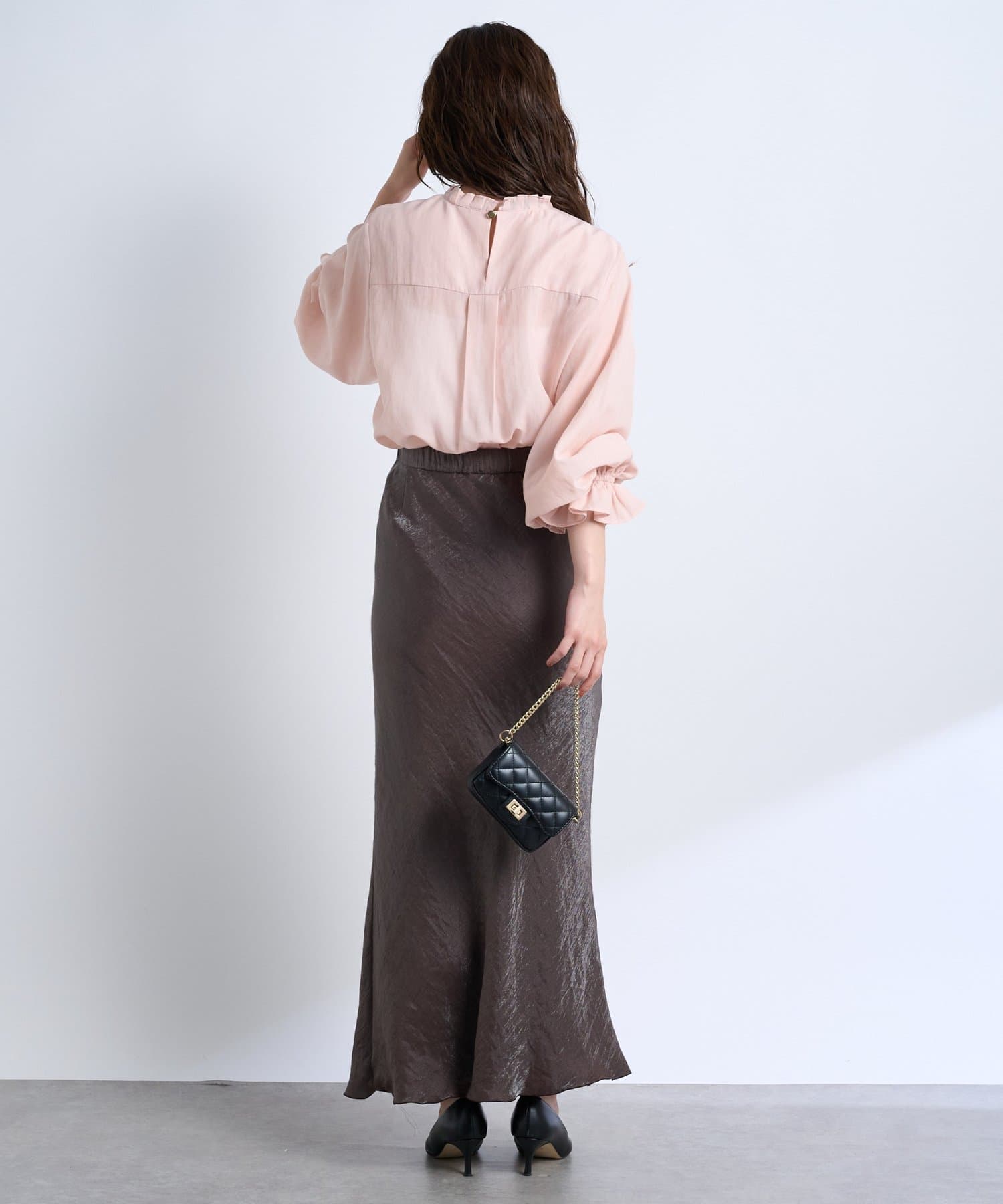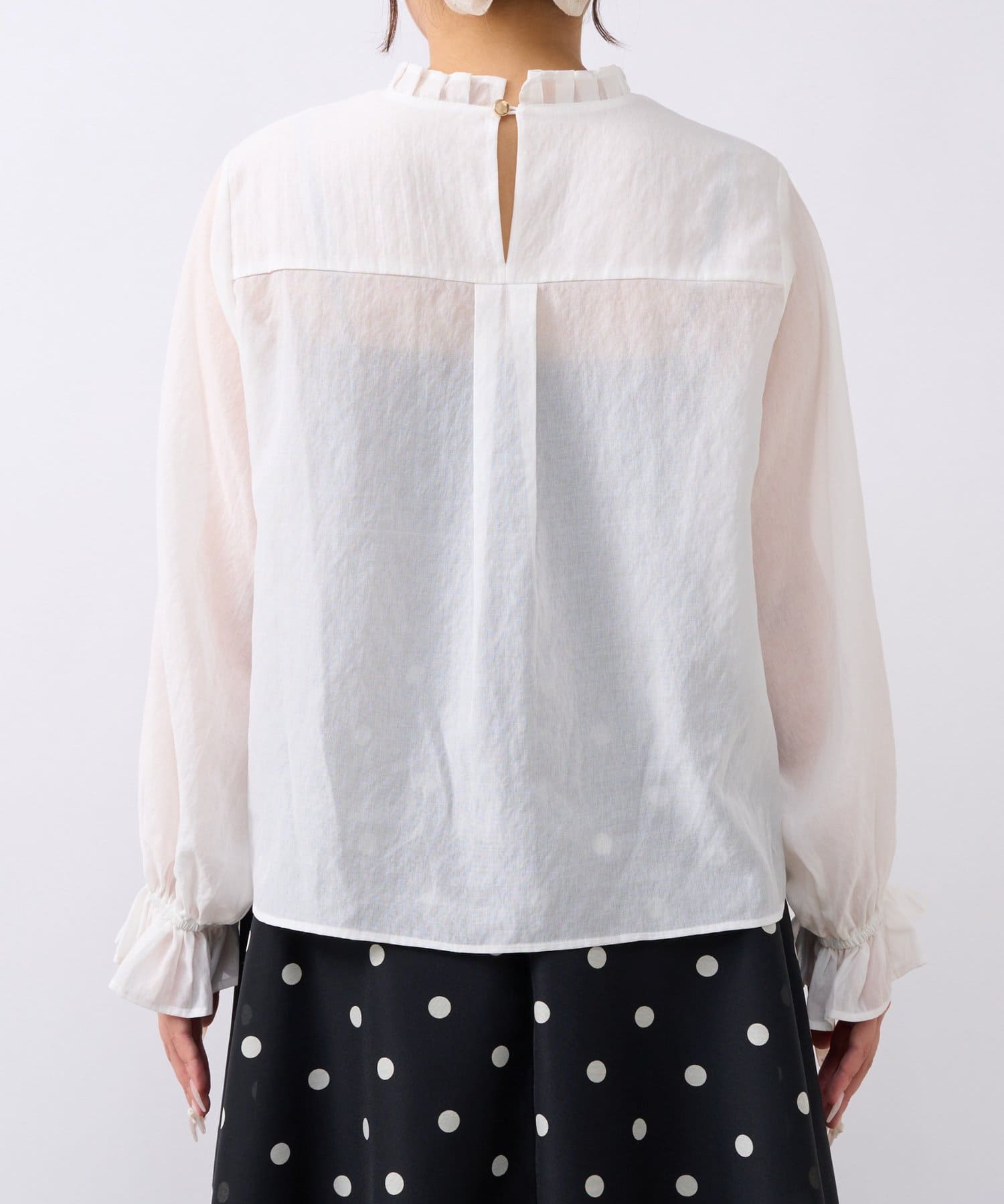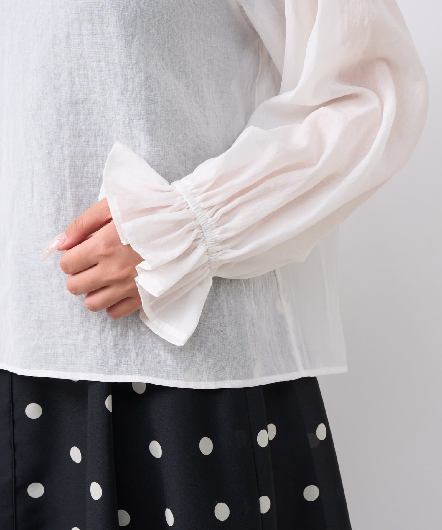 ふんわりとしたキャンディースリーブと袖口のフリルが、さりげない可愛らしさを演出します。