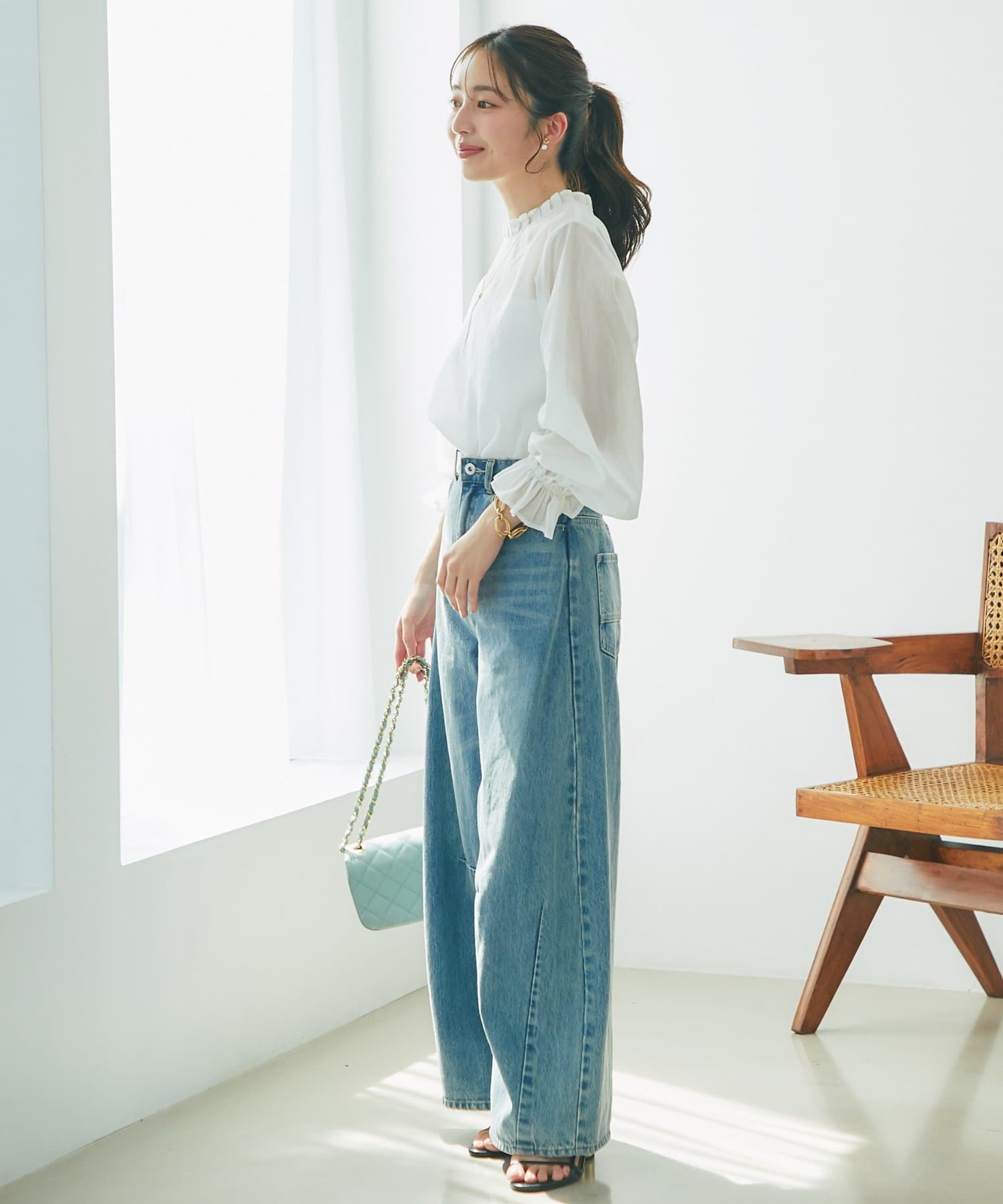 きれいめからカジュアルまで幅広く着回せる万能ブラウスです。