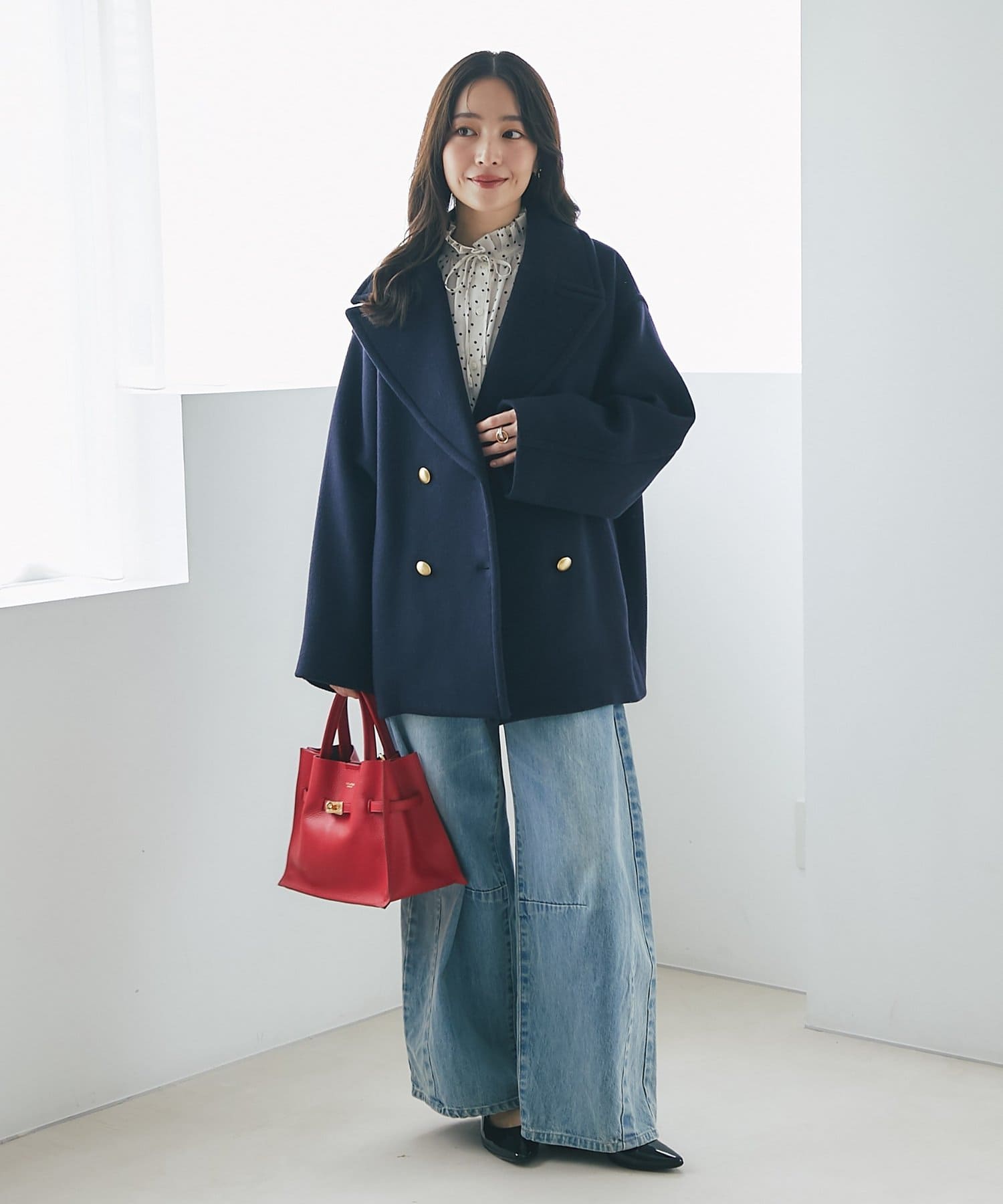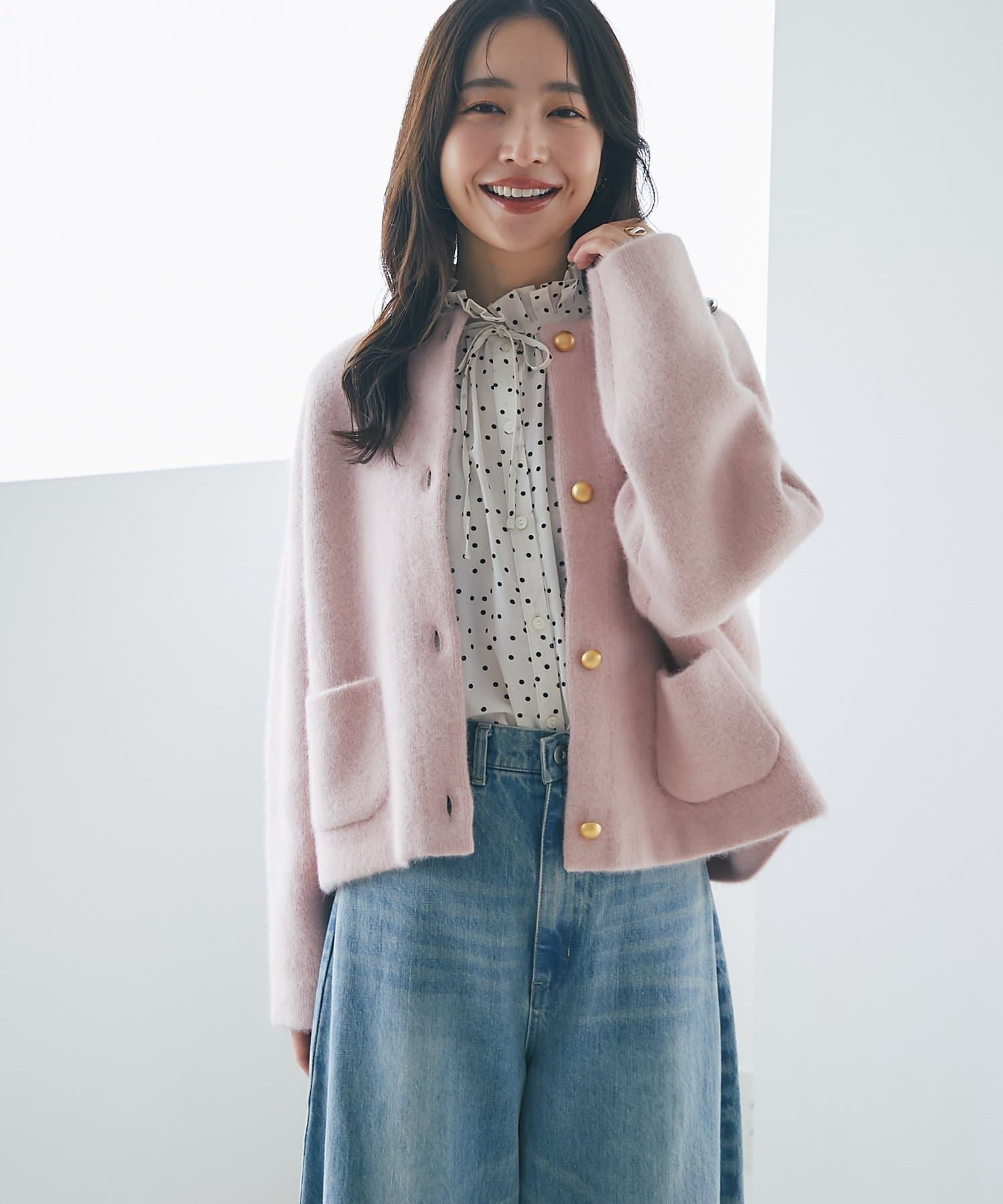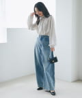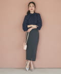 スカートやワイドパンツに合わせて上品なスタイルに。
