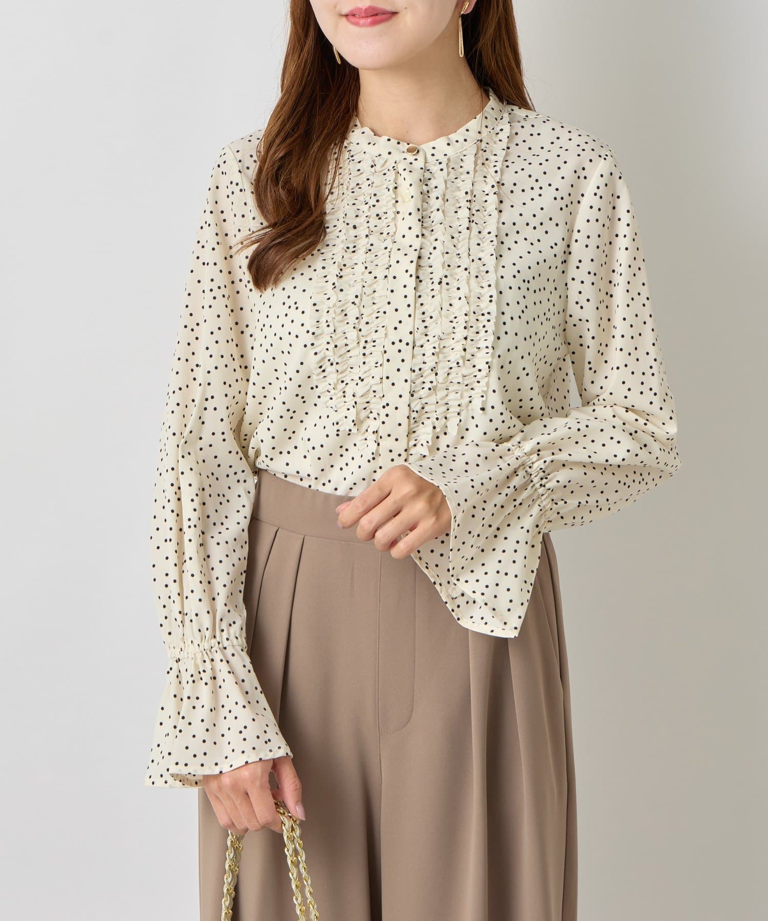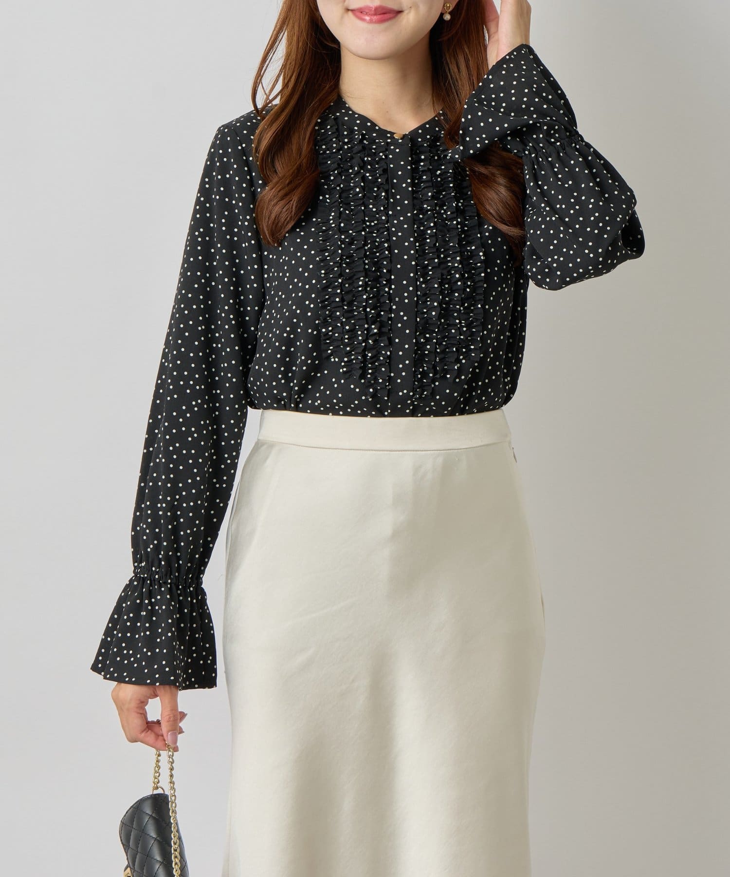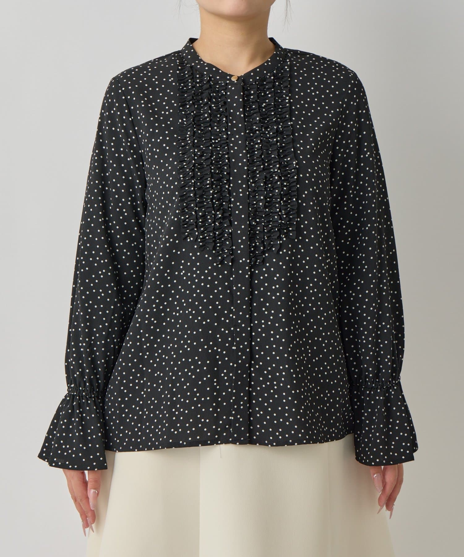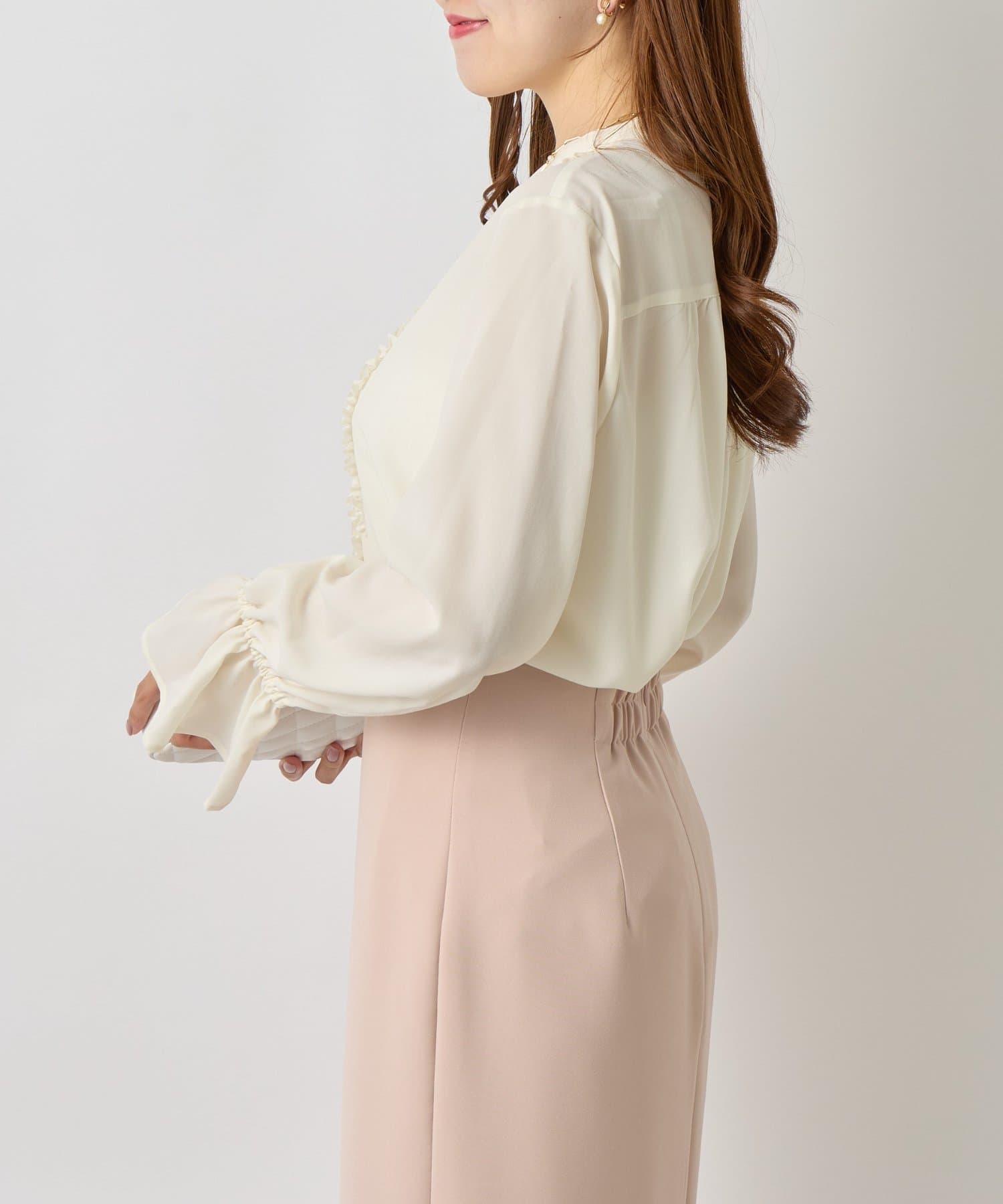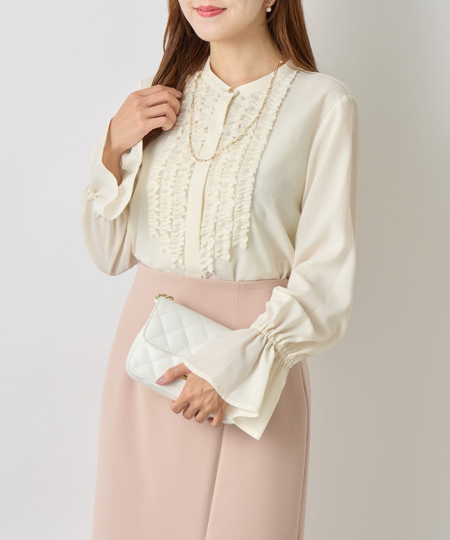 フロントにあしらわれた繊細なフリルが目を惹く、大人フェミニンなジョーゼットブラウス。