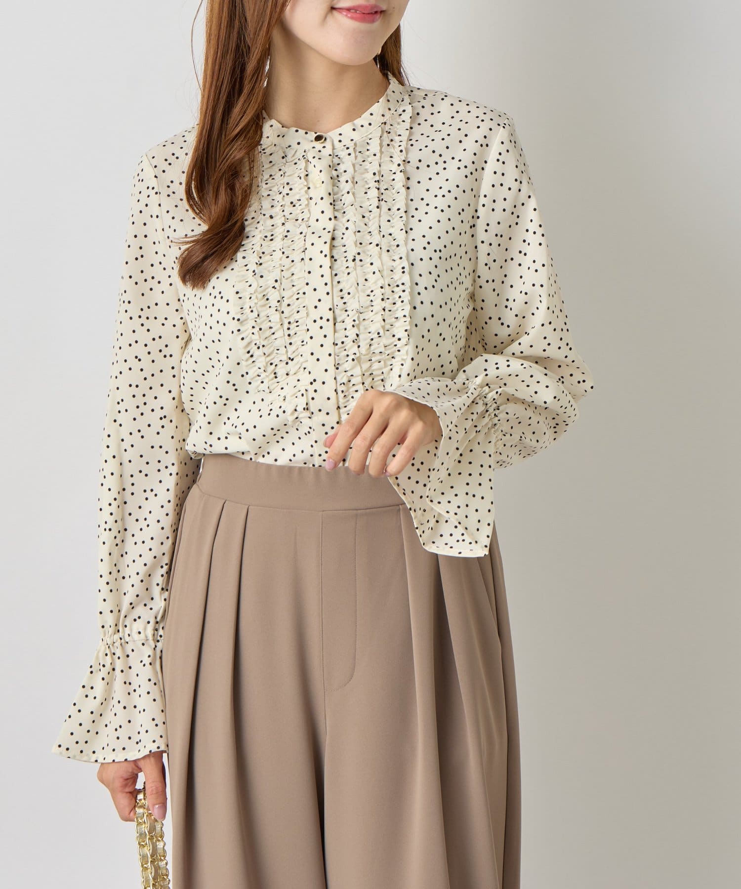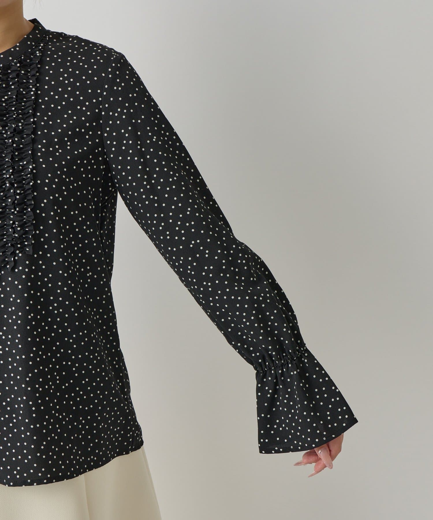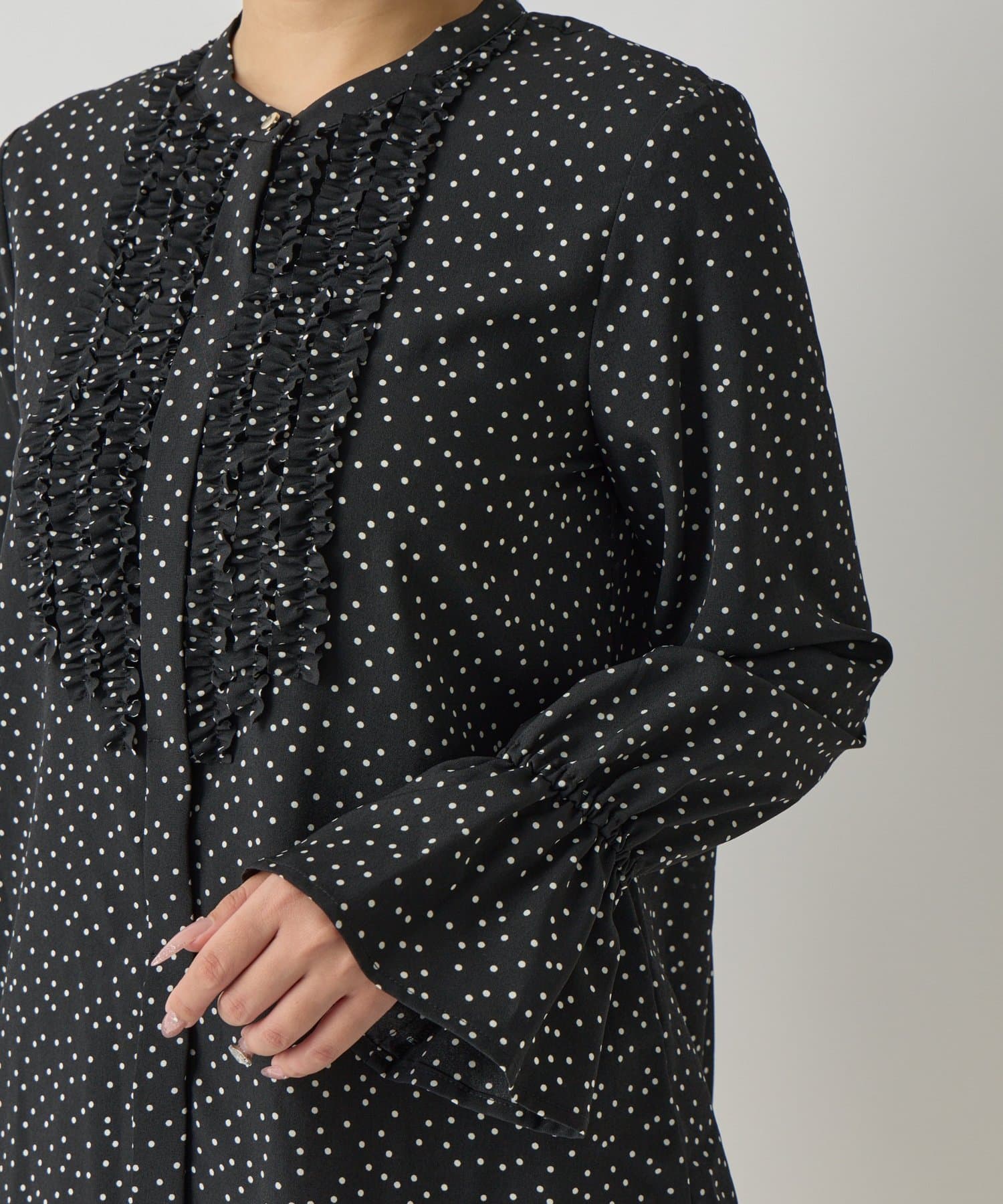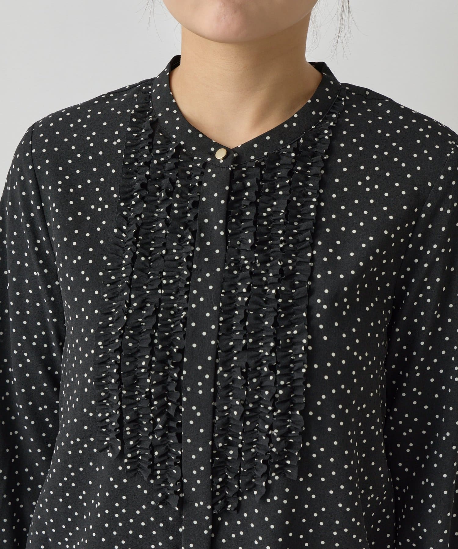 フロントにあしらわれた繊細なフリルが目を惹く、大人フェミニンなジョーゼットブラウス。