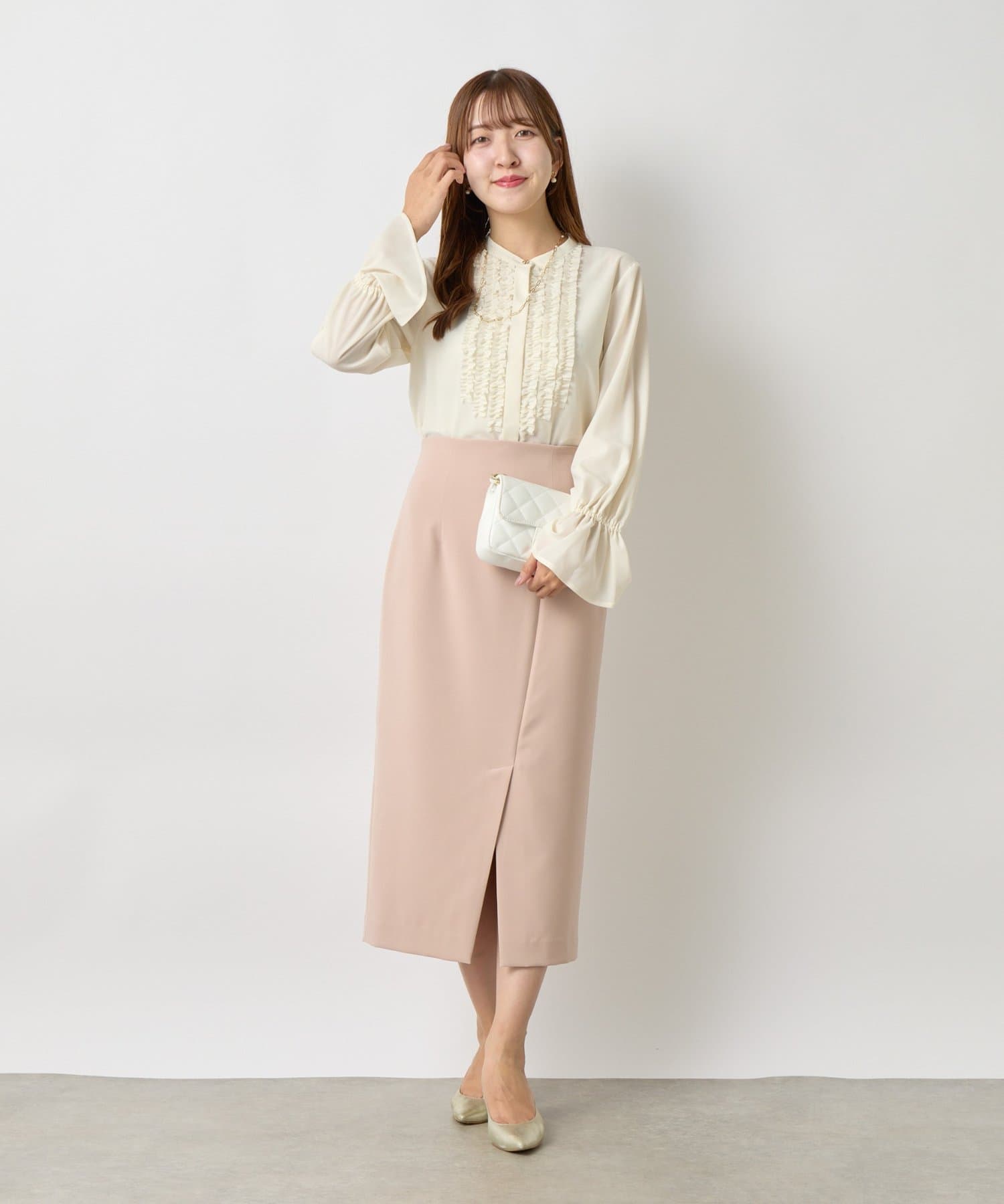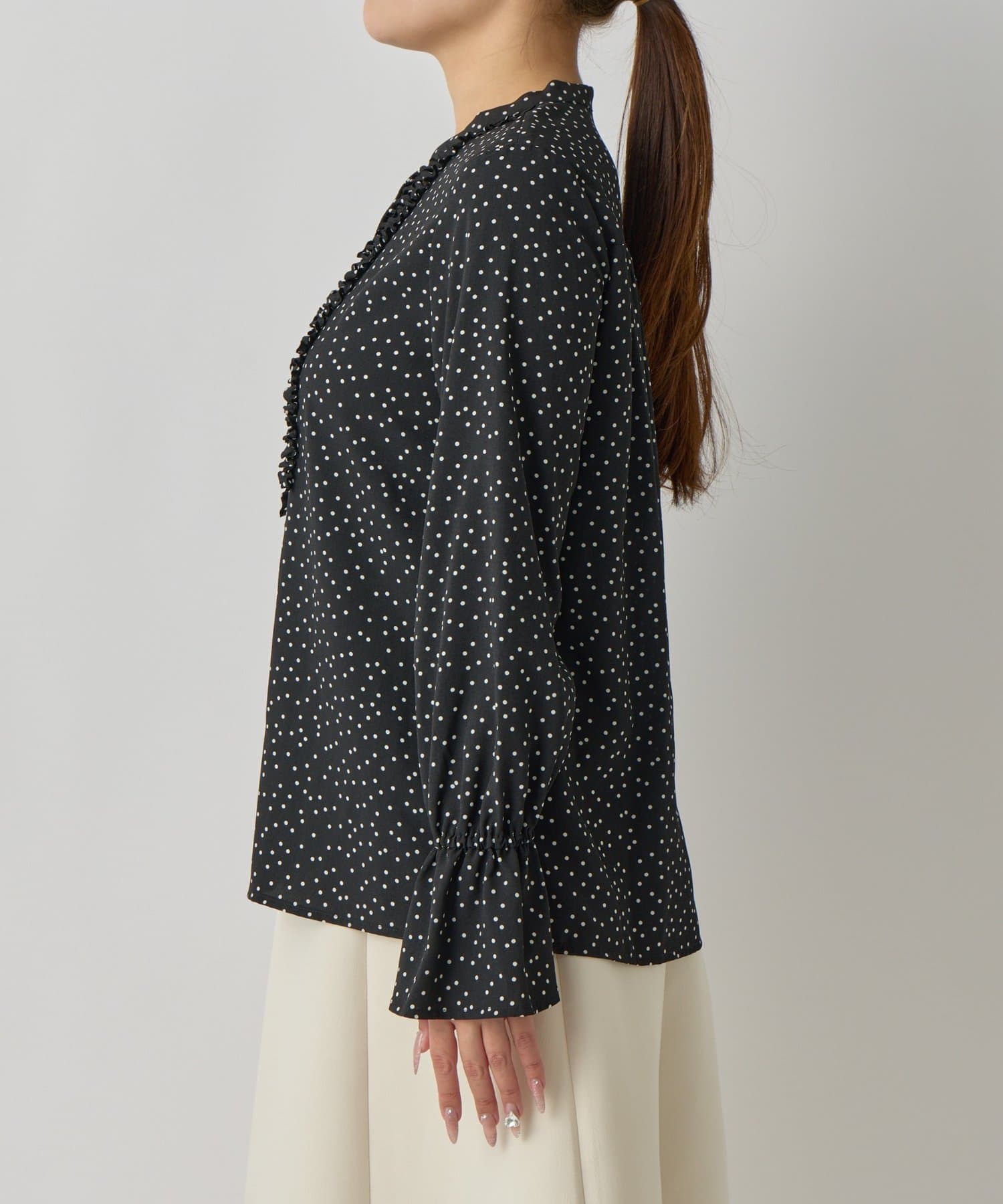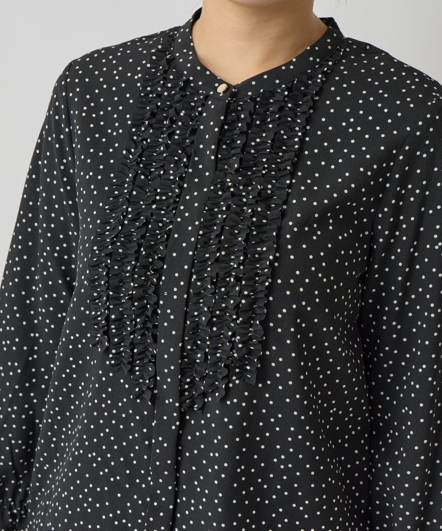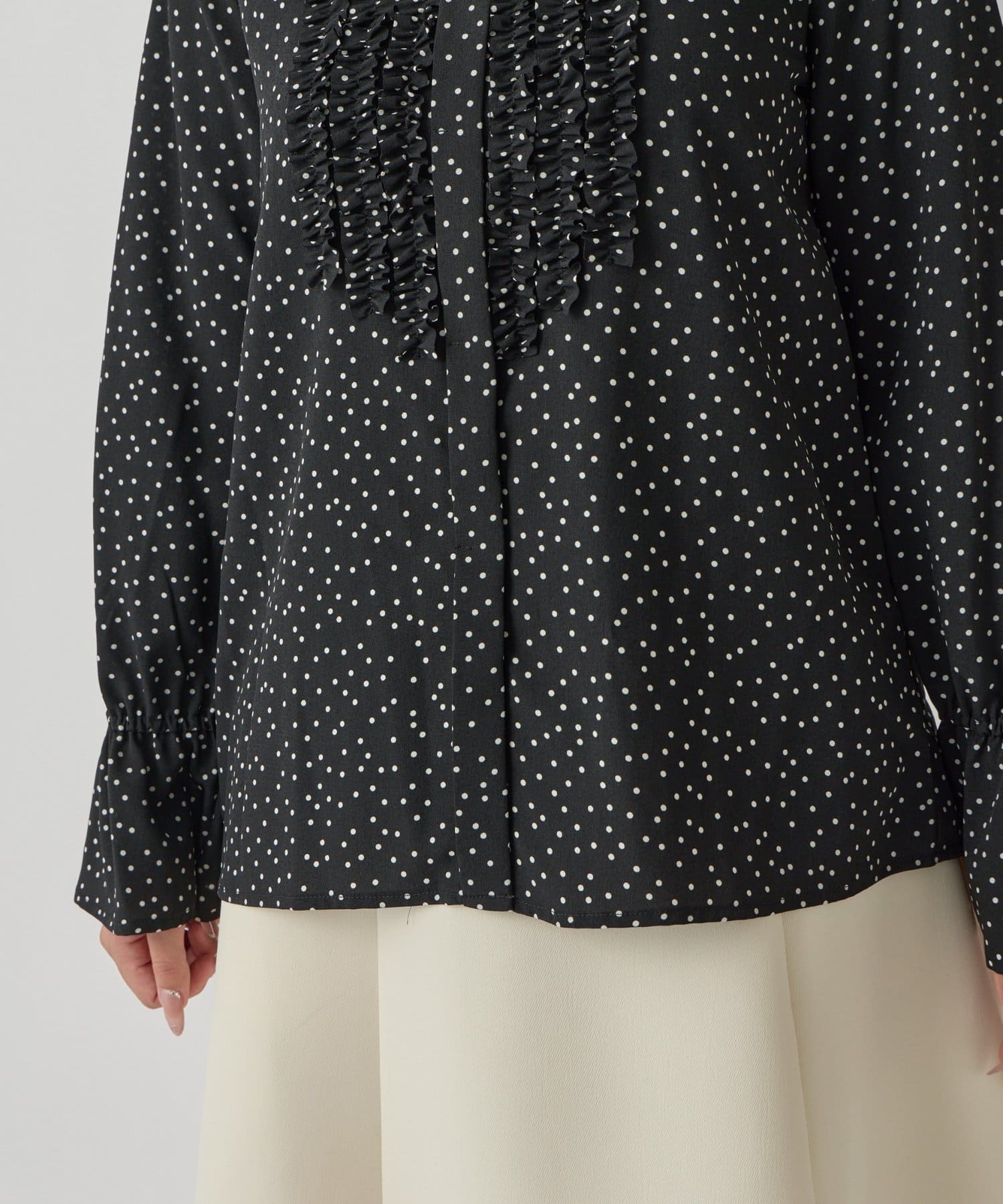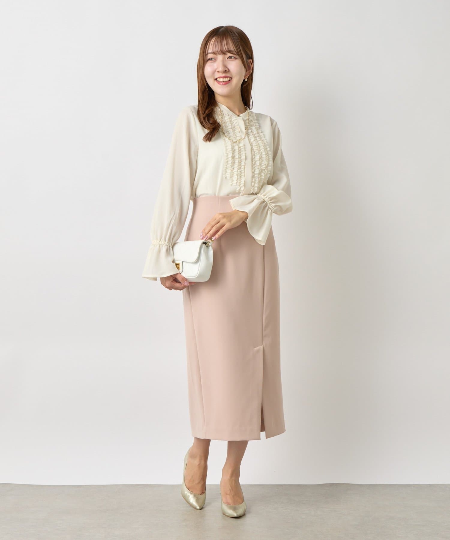 フロントにあしらわれた繊細なフリルが目を惹く、大人フェミニンなジョーゼットブラウス。