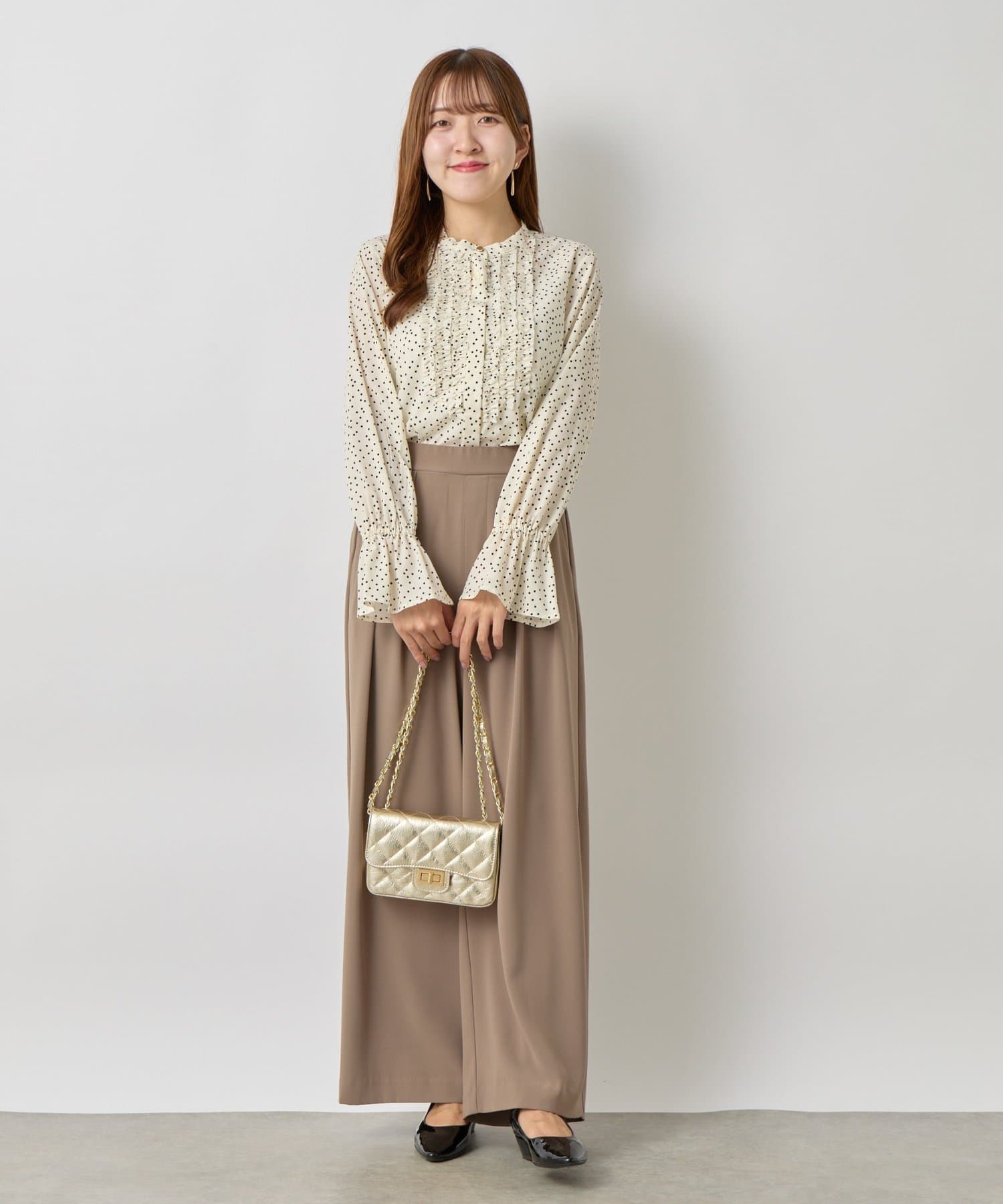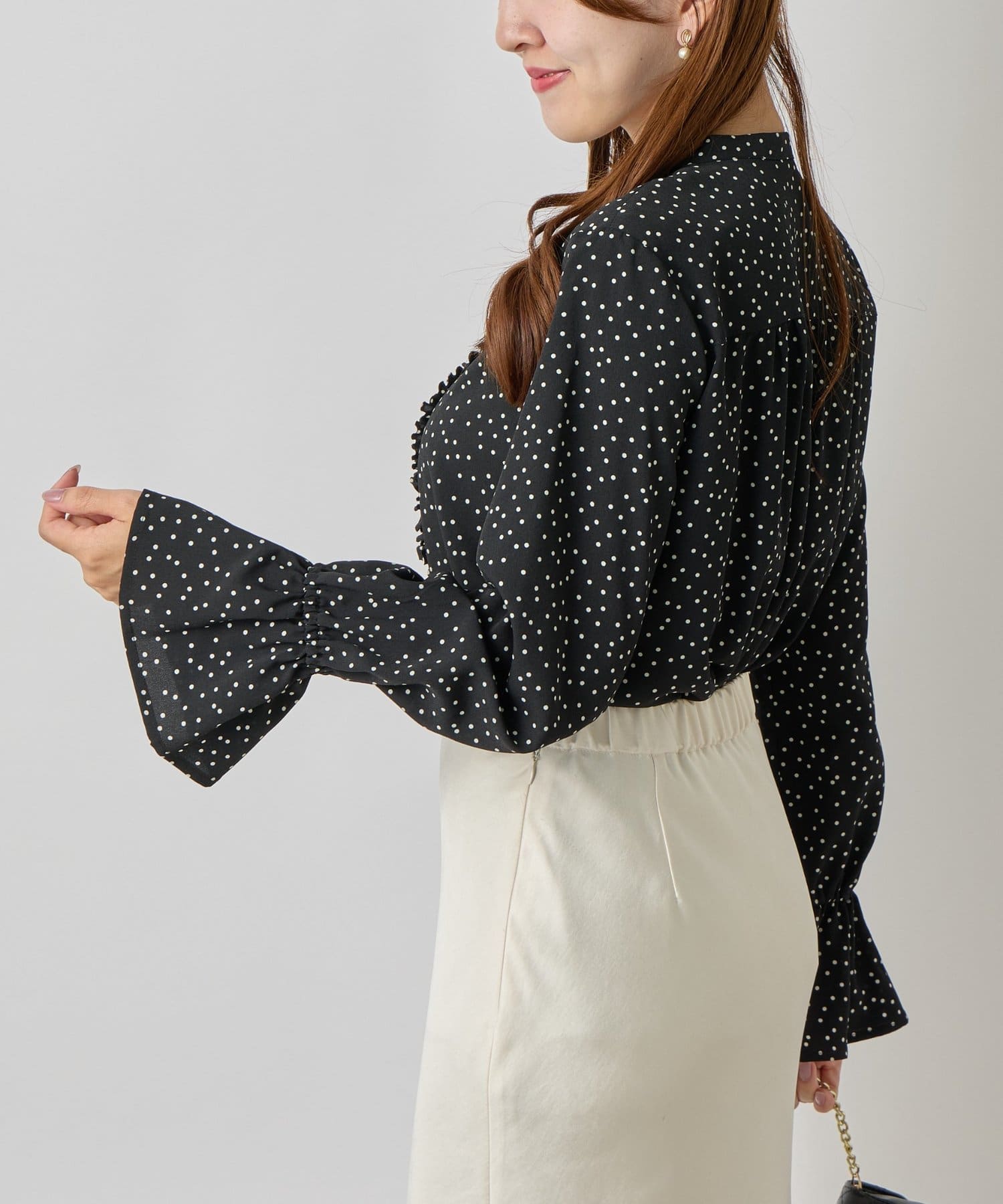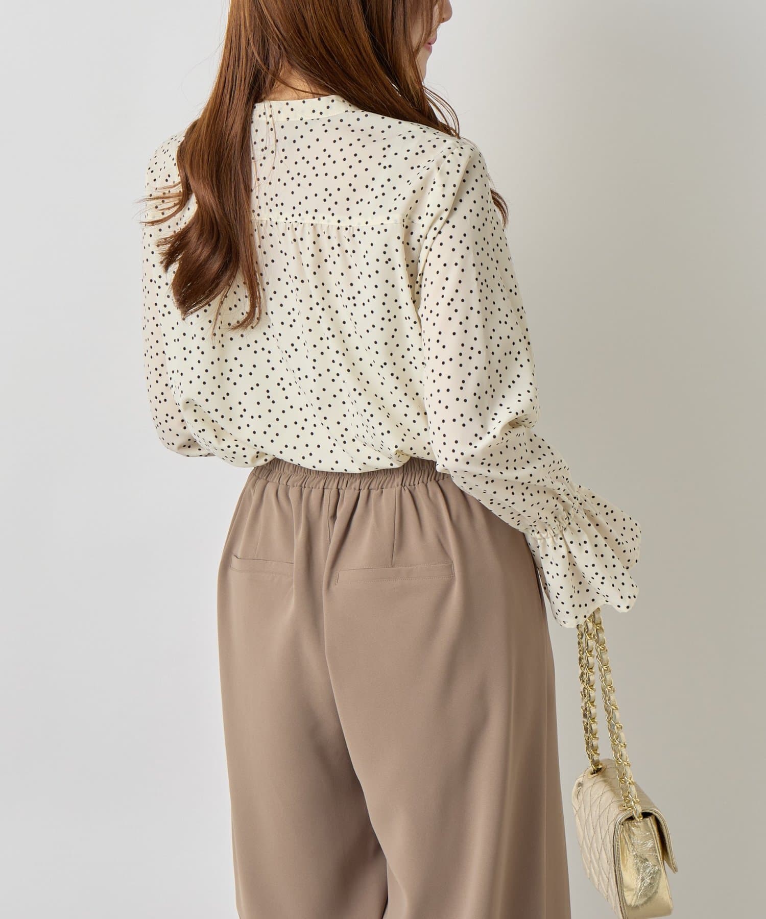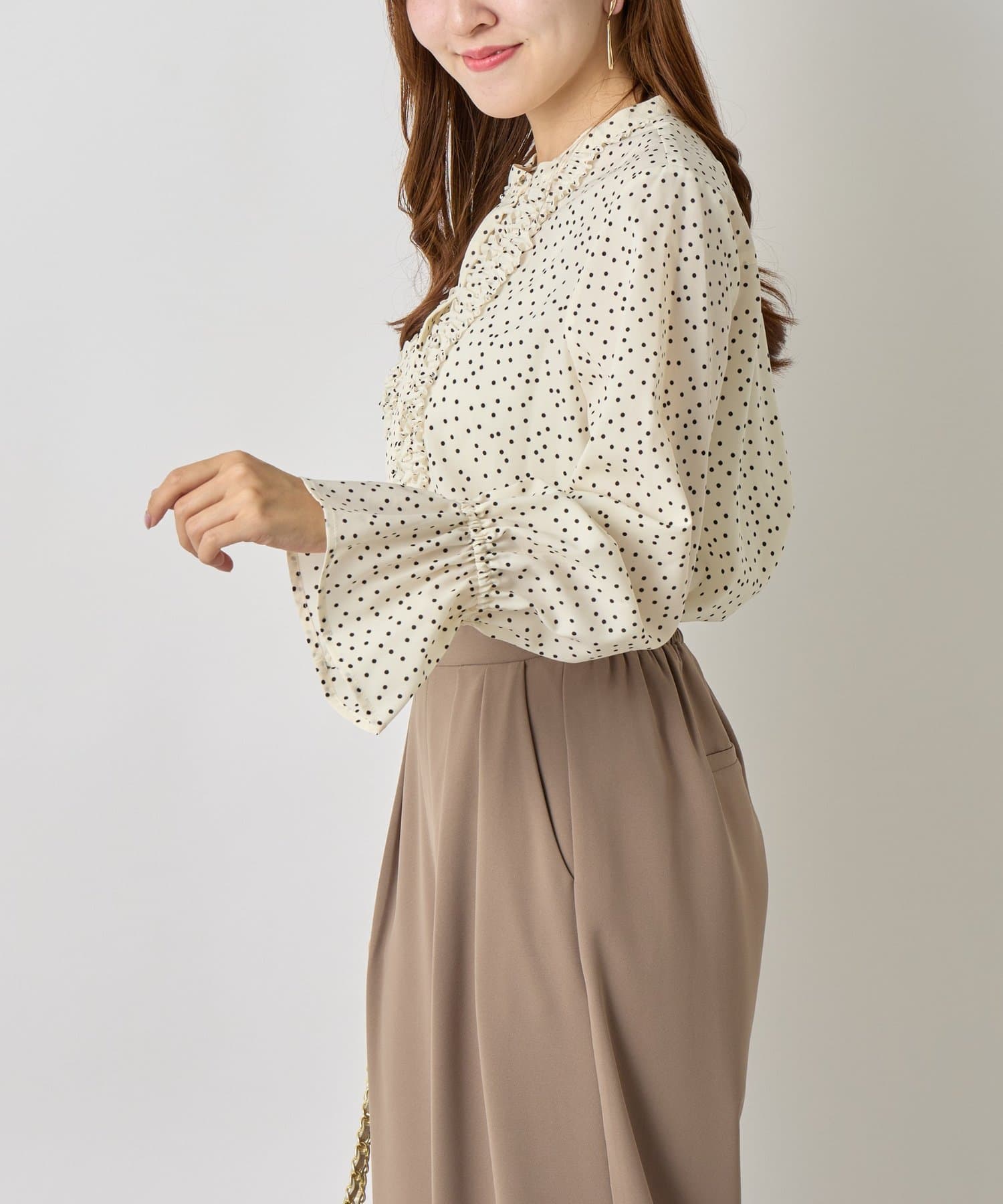 袖口のギャザーが手元まで女性らしさを引き立てます。