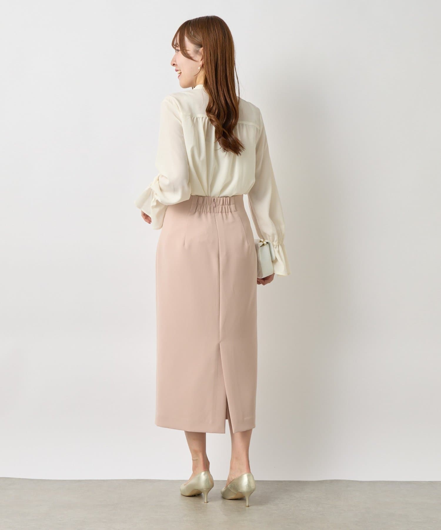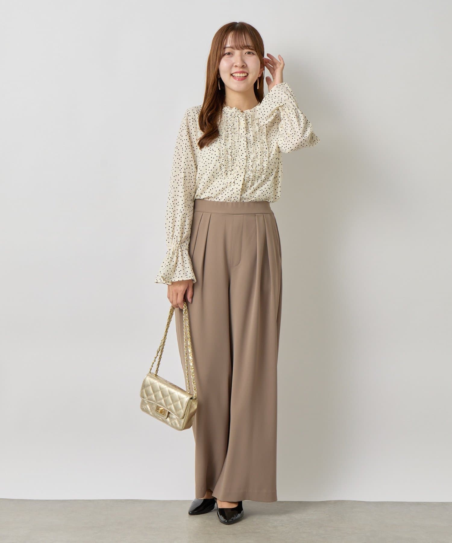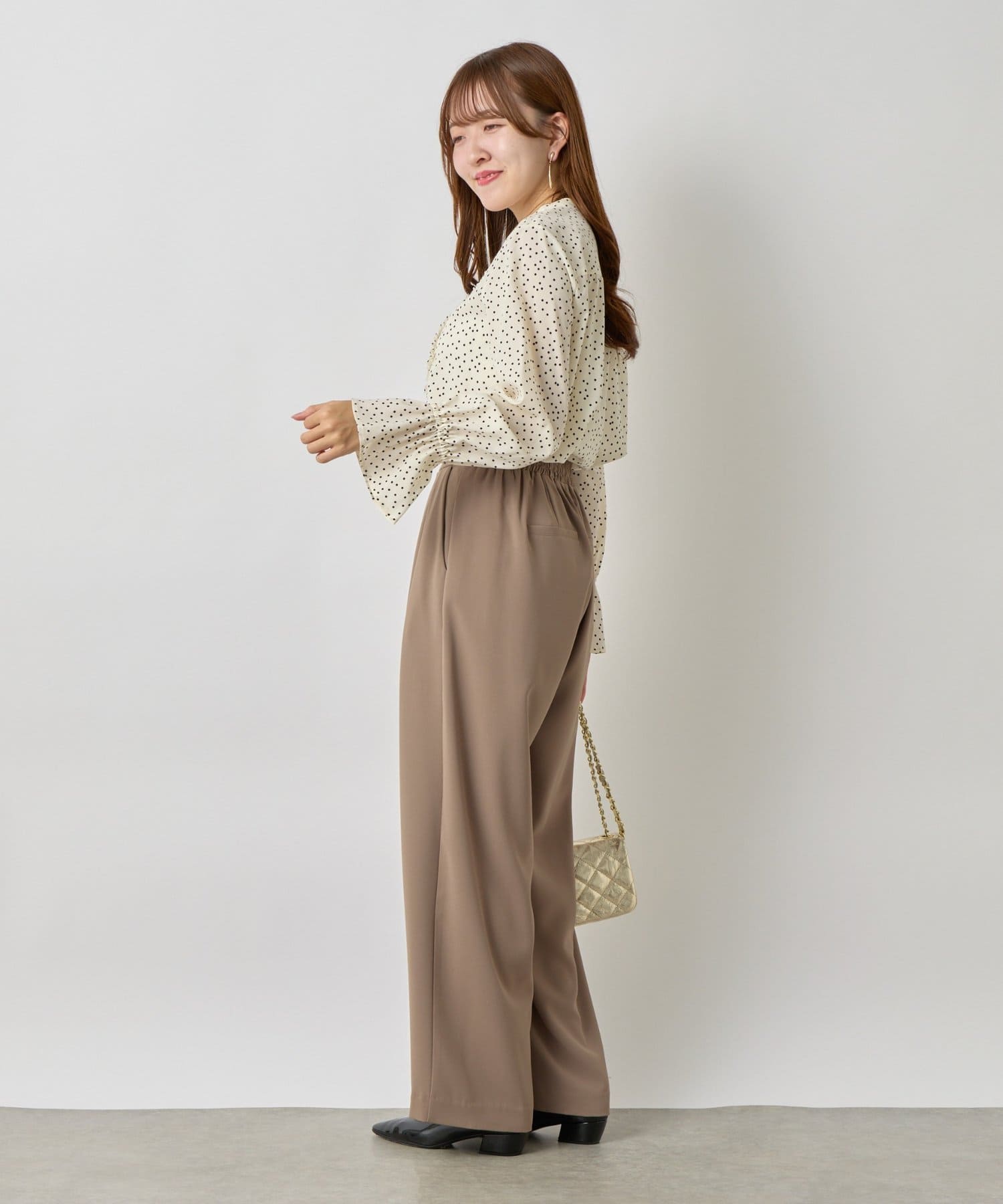 袖口のギャザーが手元まで女性らしさを引き立てます。