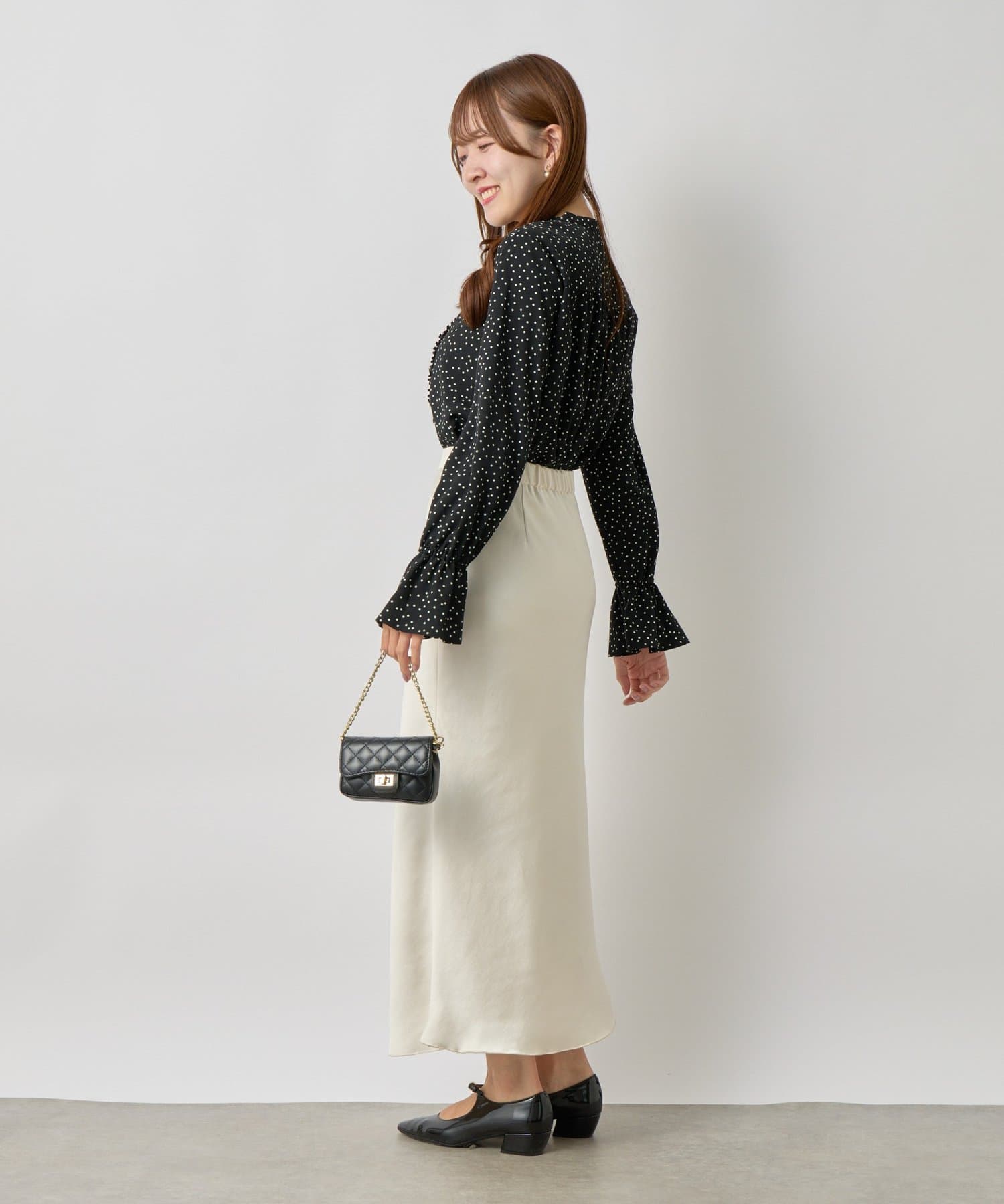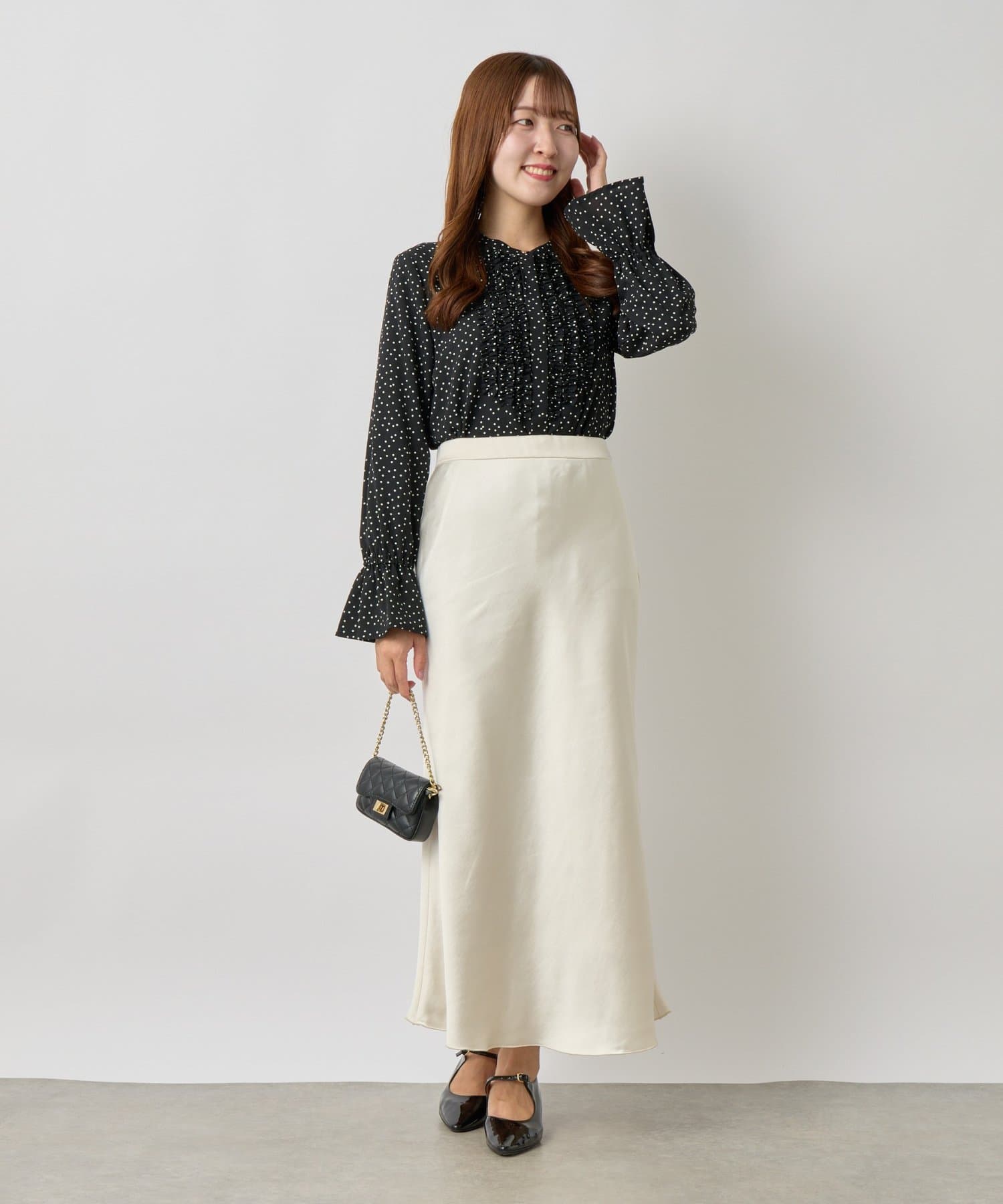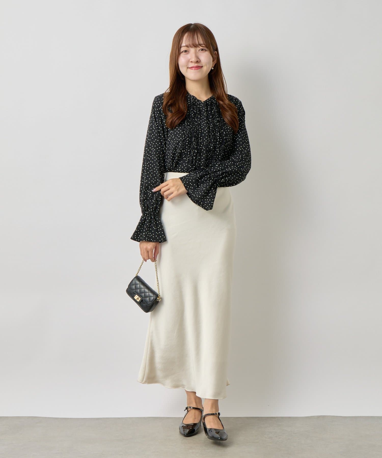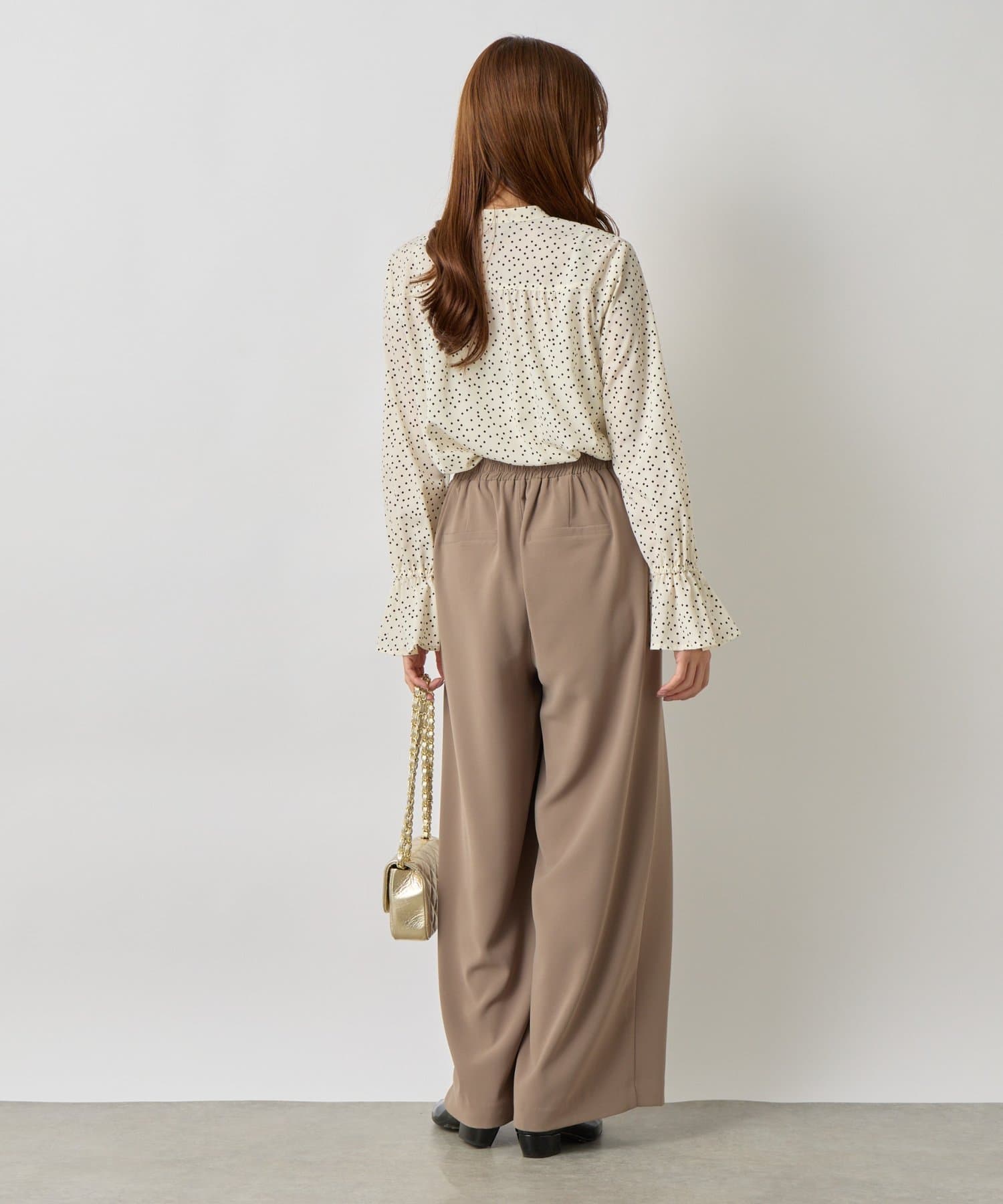 袖口のギャザーが手元まで女性らしさを引き立てます。