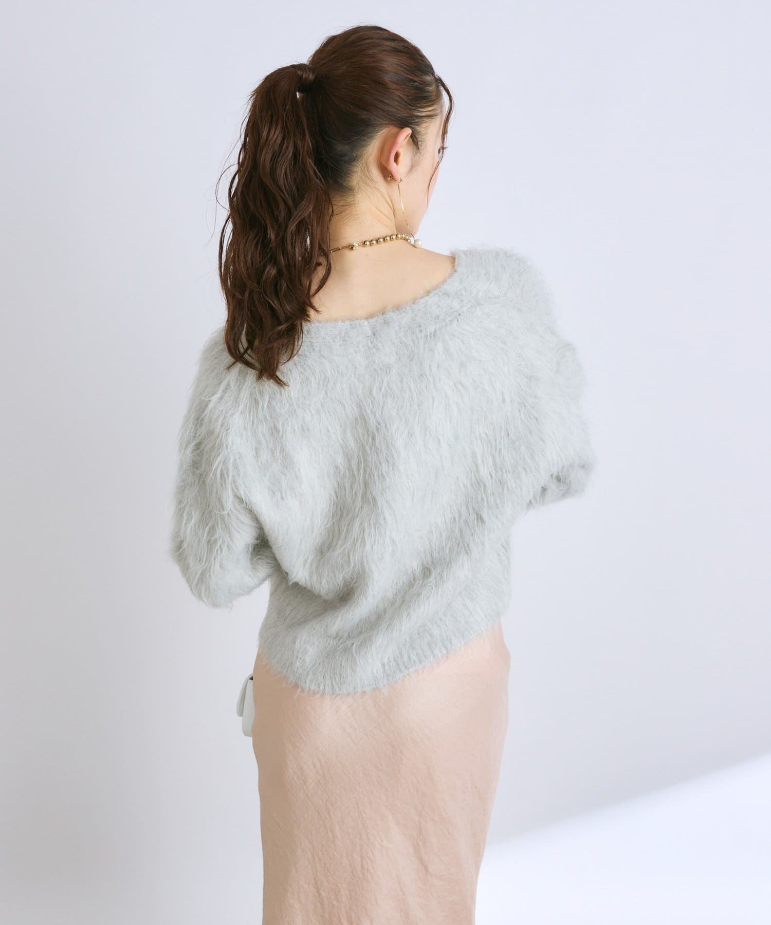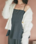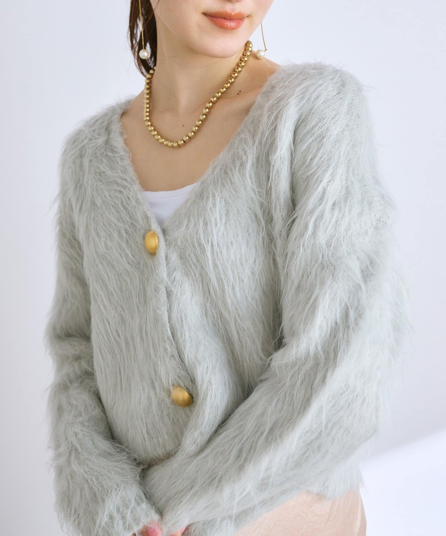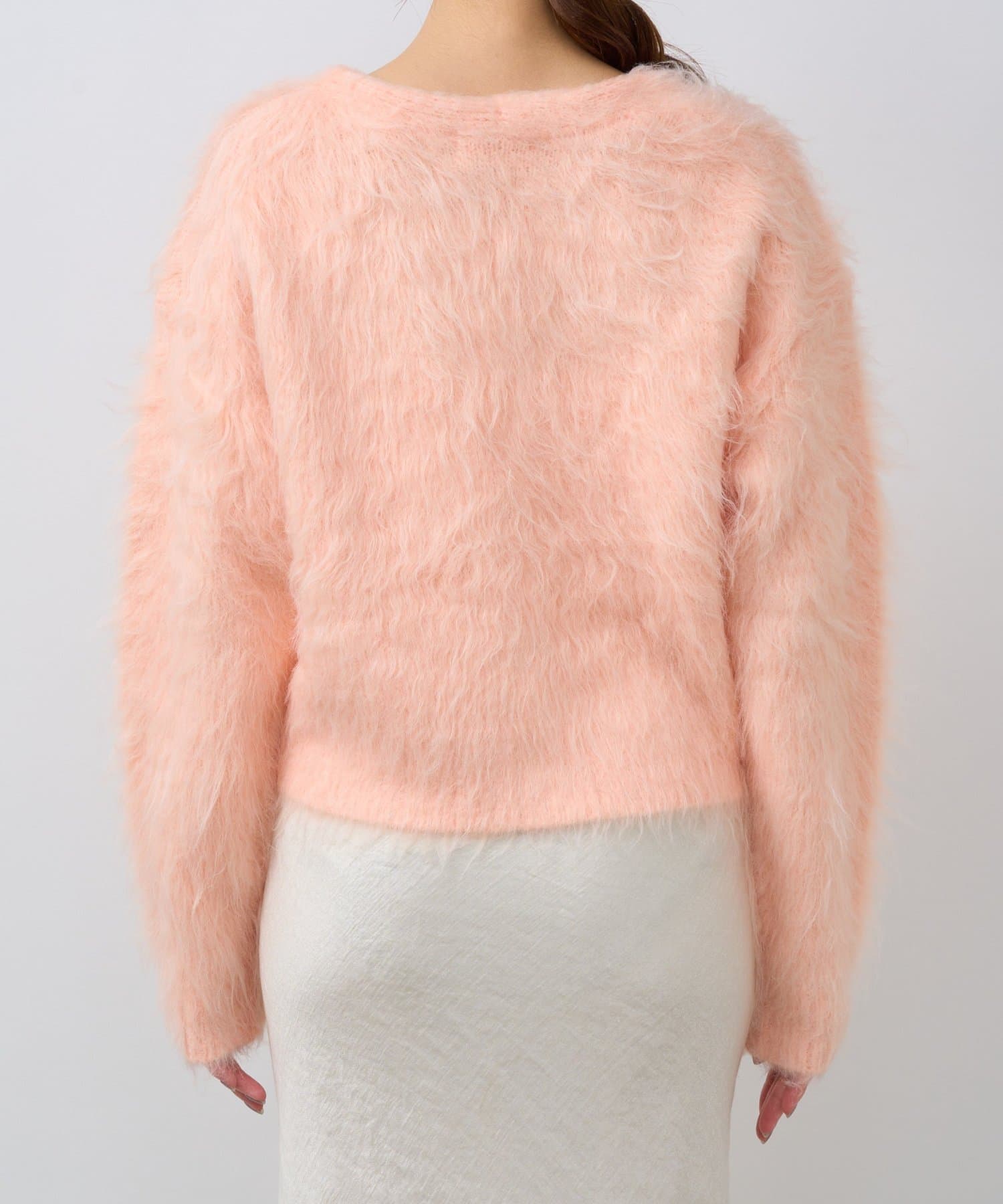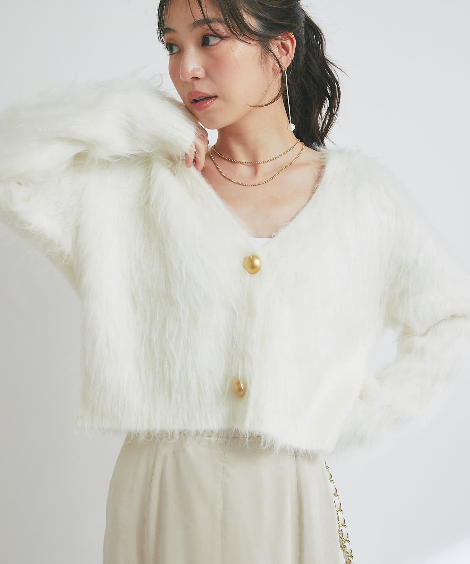 繊細でふわふわとした質感が魅力のロングフェザークロップドカーディガン。