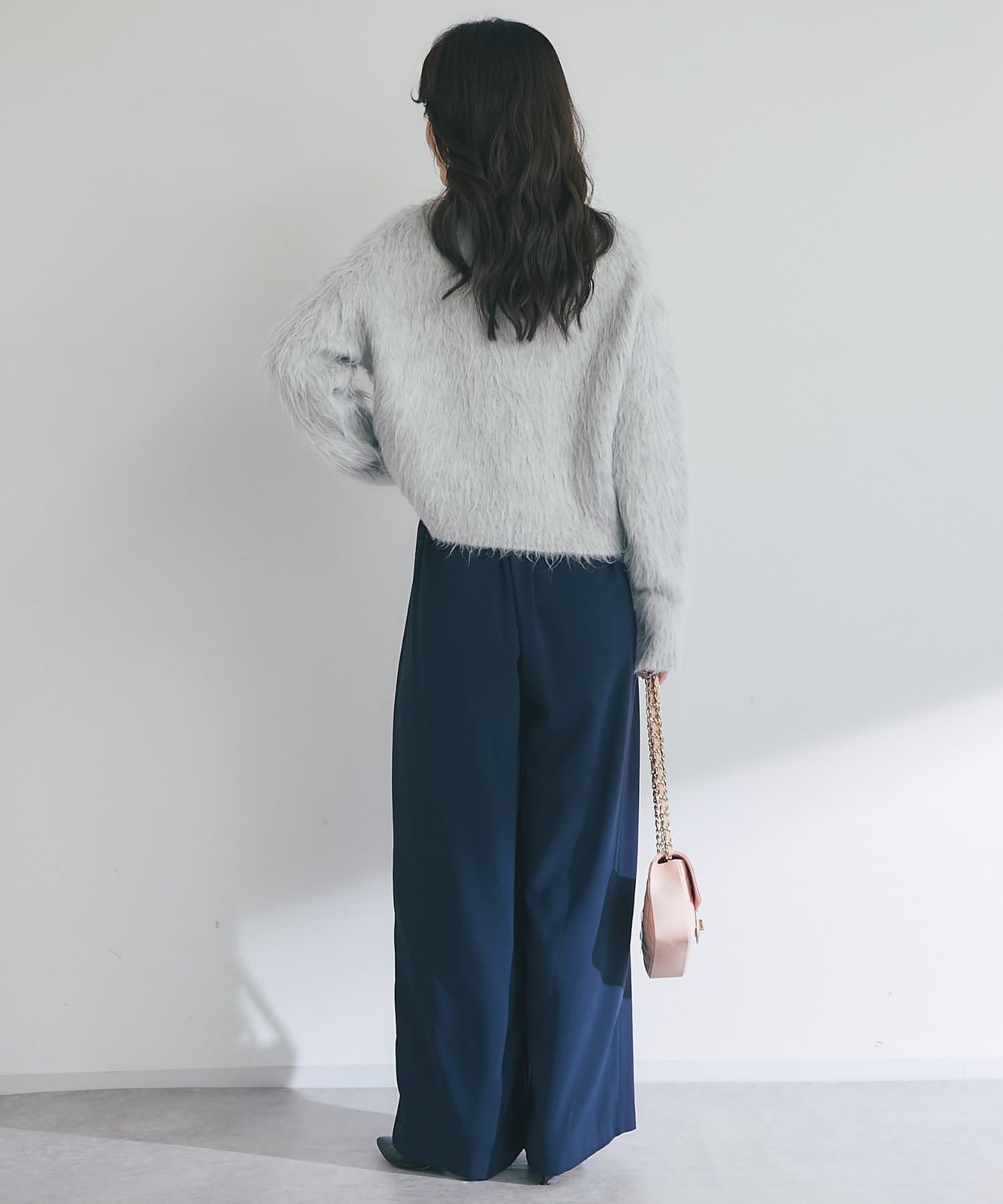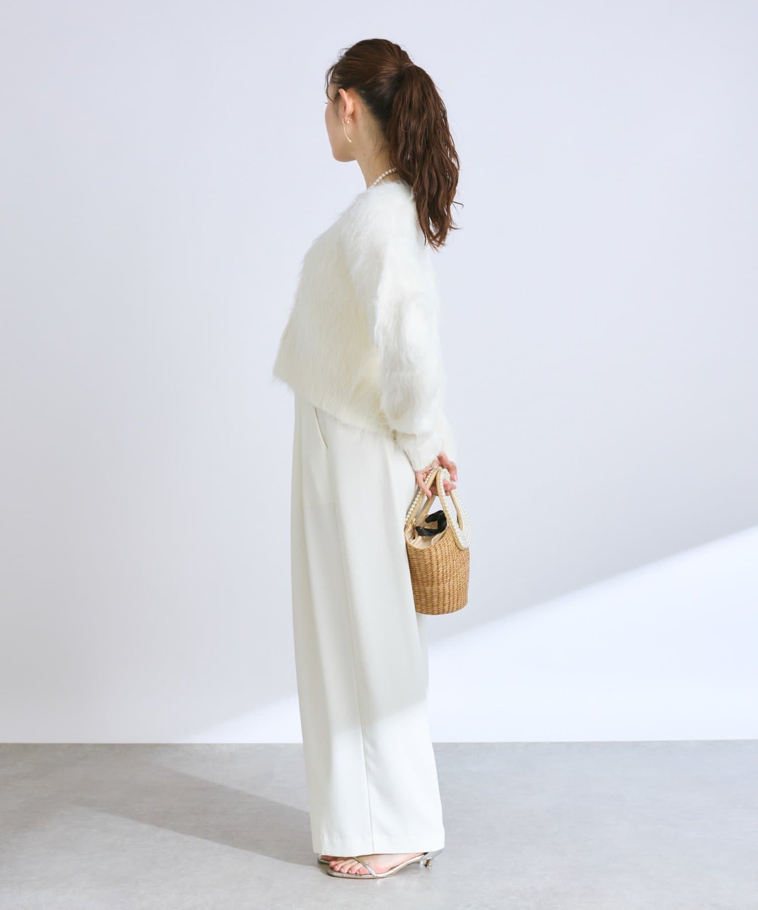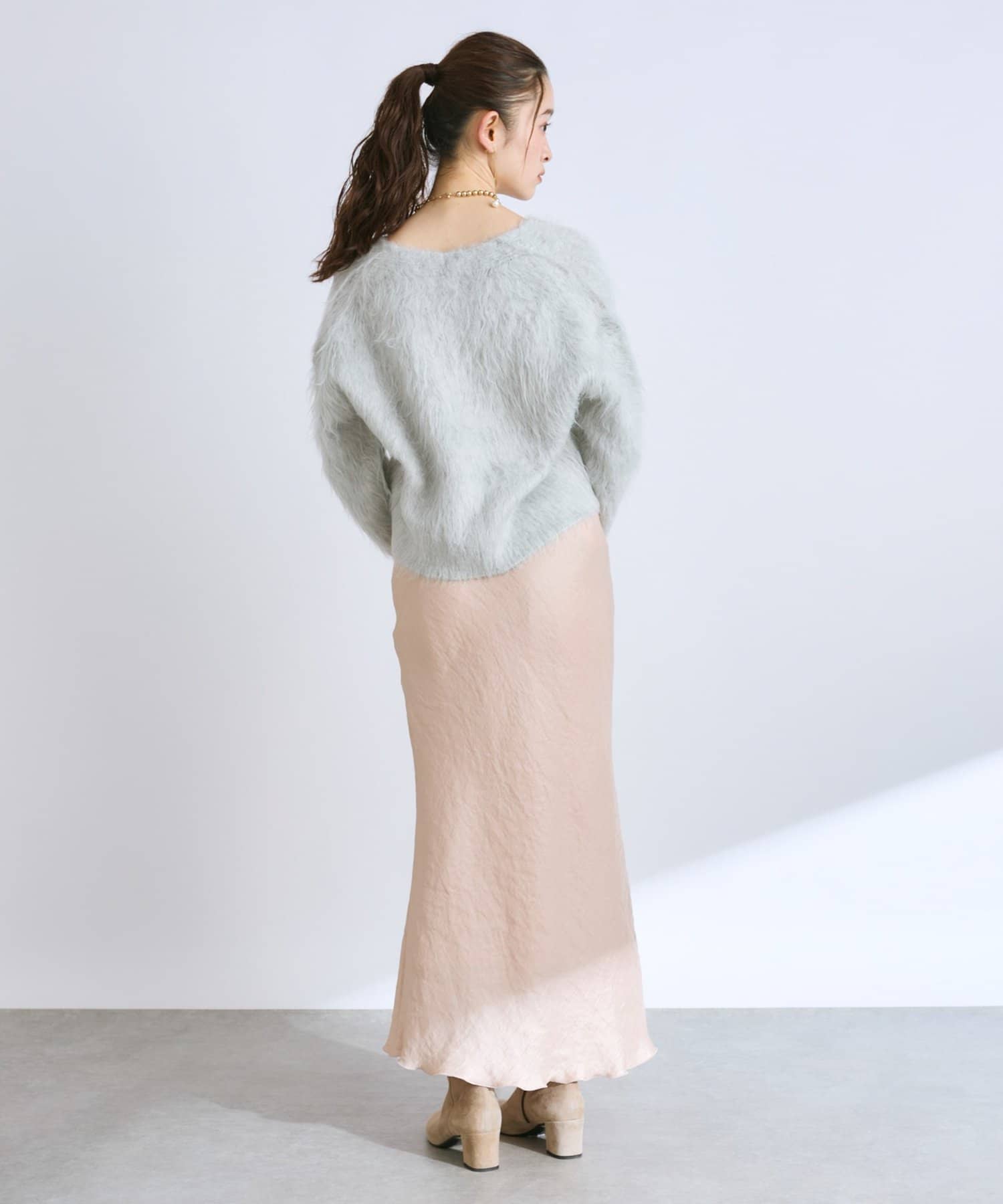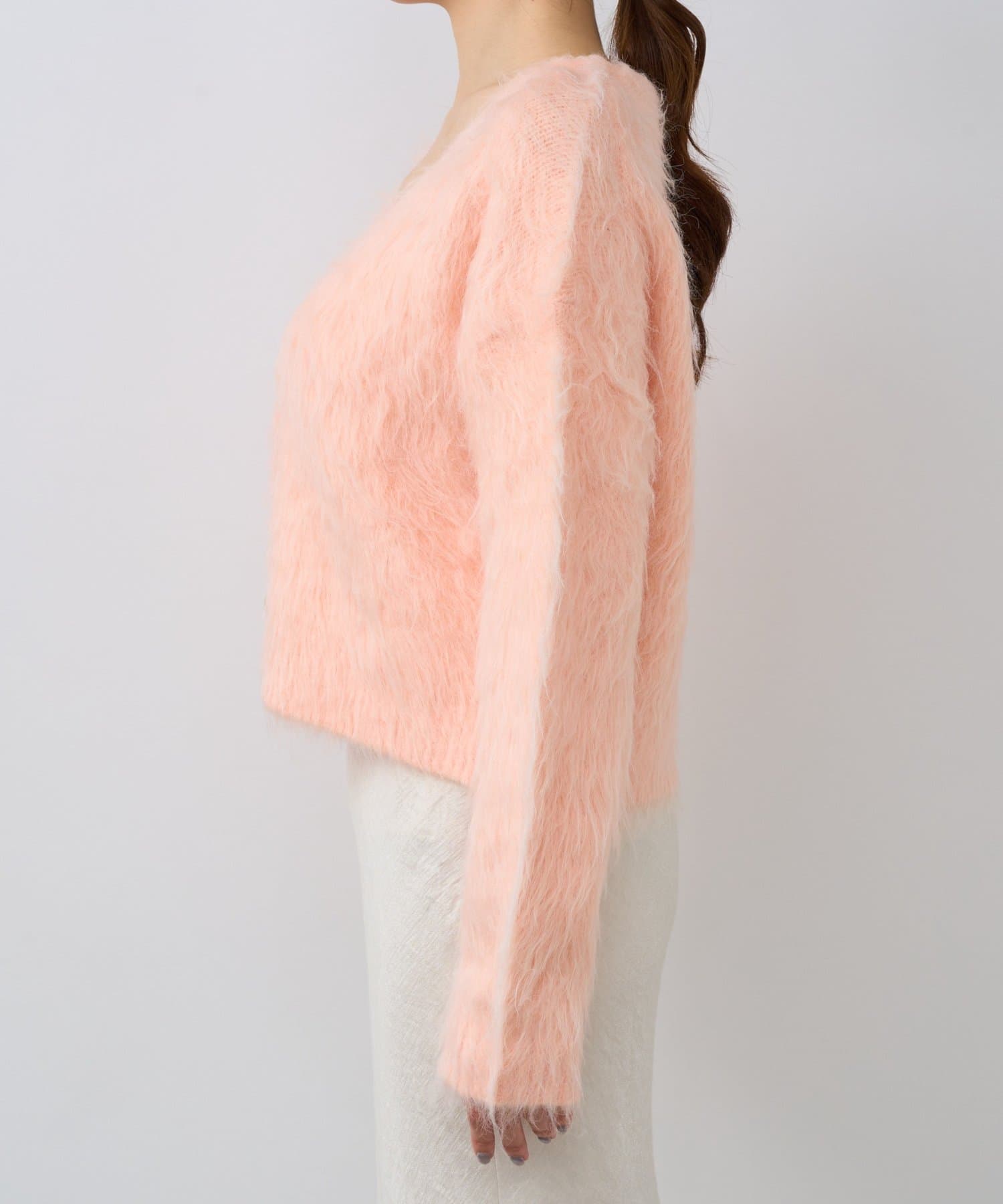 繊細でふわふわとした質感が魅力のロングフェザークロップドカーディガン。