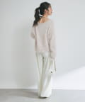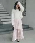 ゆるっとしたデザイン生かし、落ち感のあるスカートと合わせるのがおすすめ。