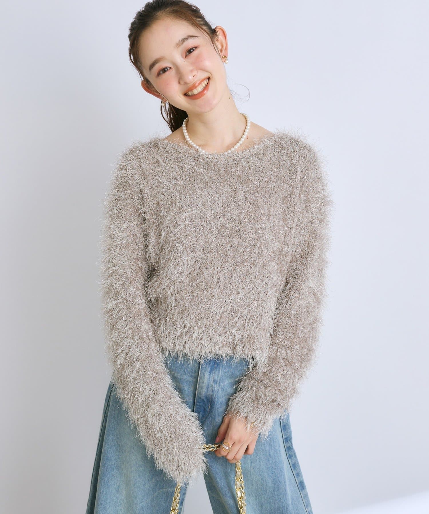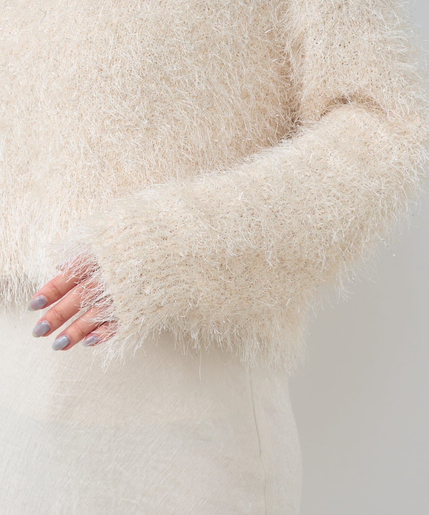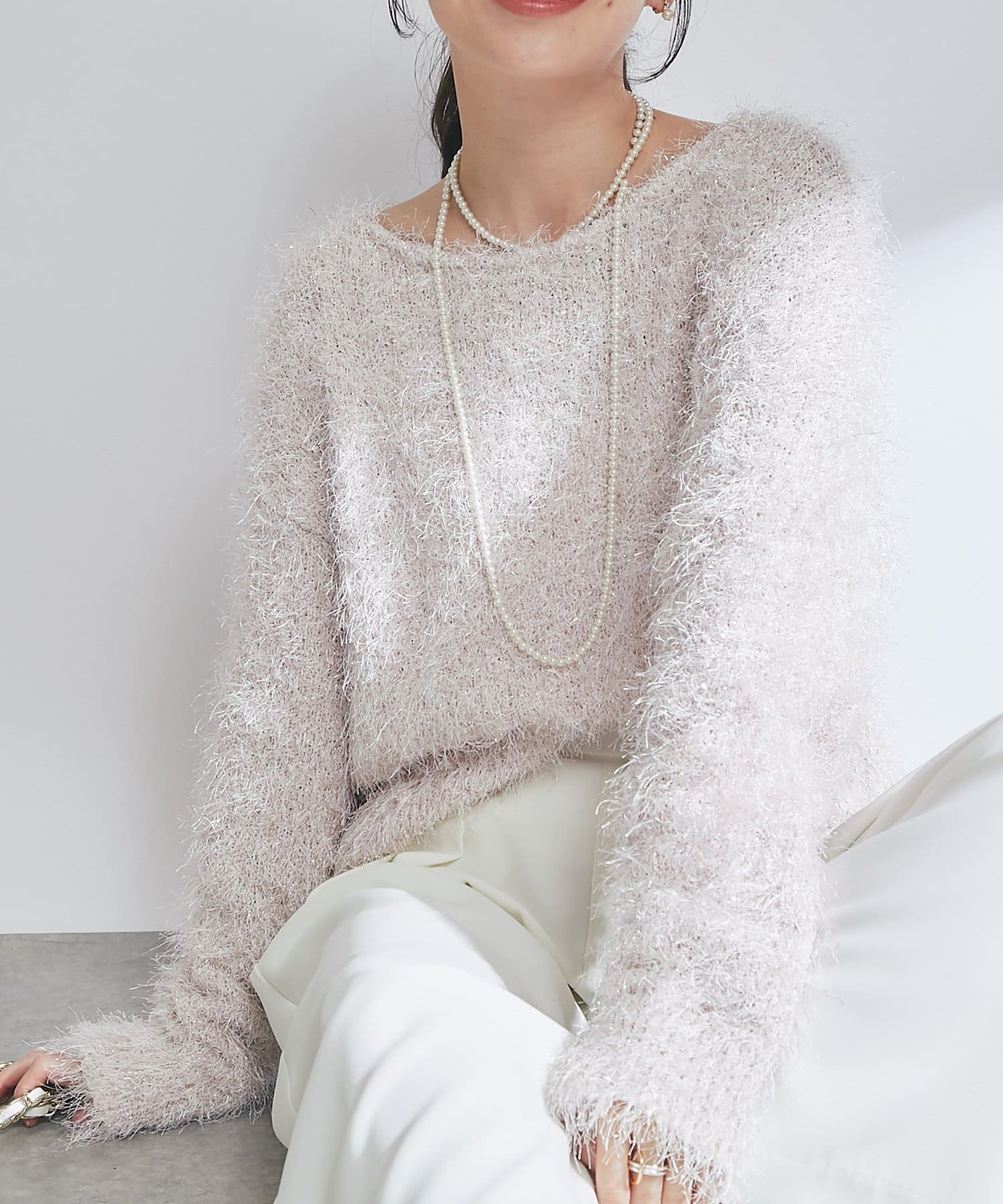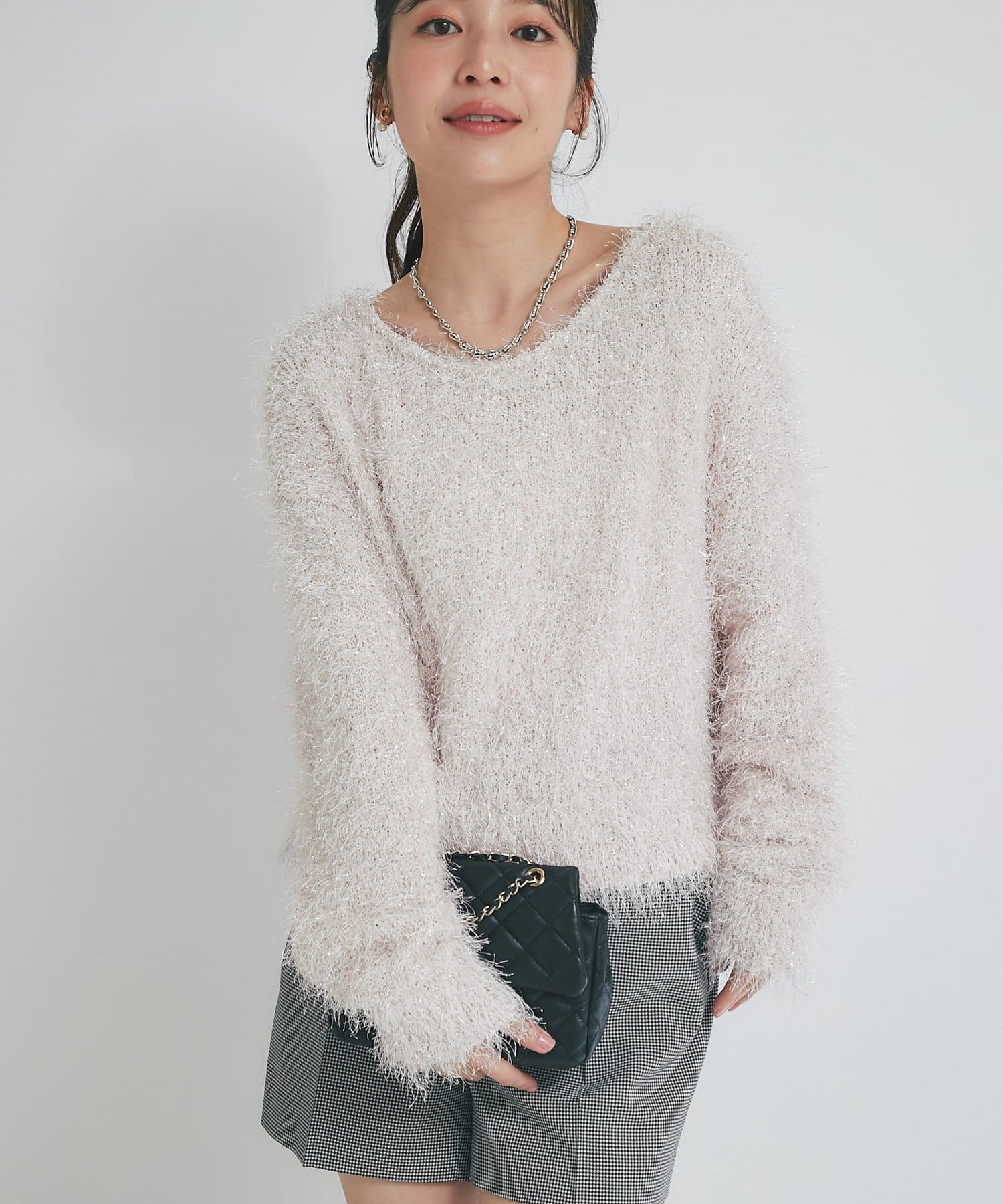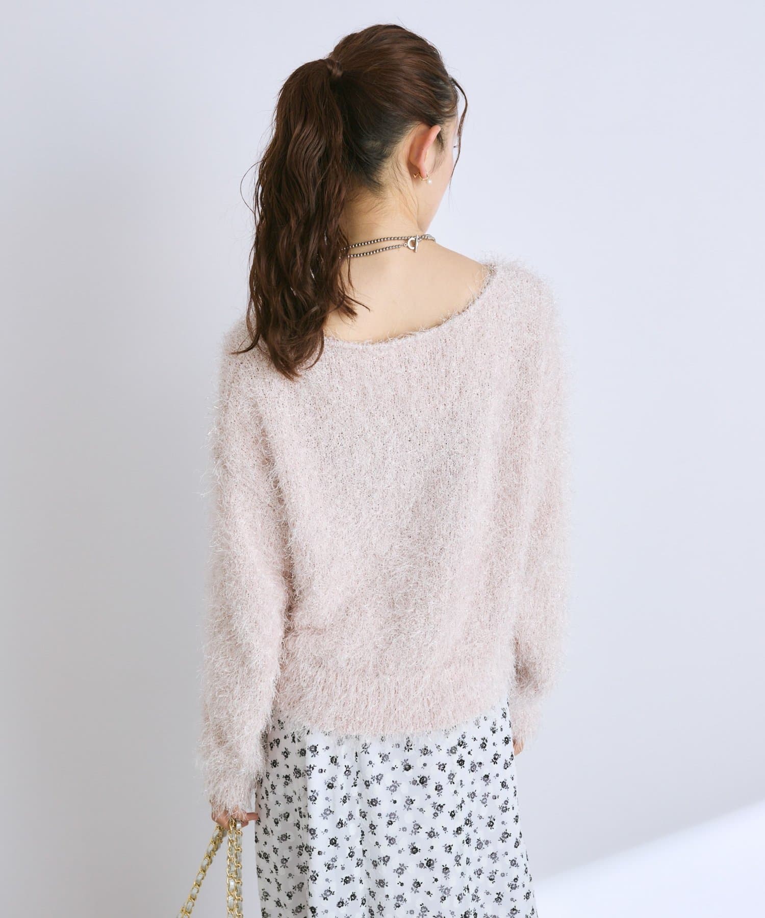 ラメが煌めく、ふわふわ素材の華やかニット。