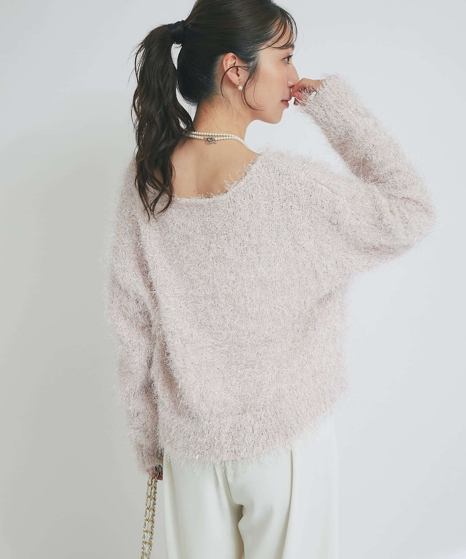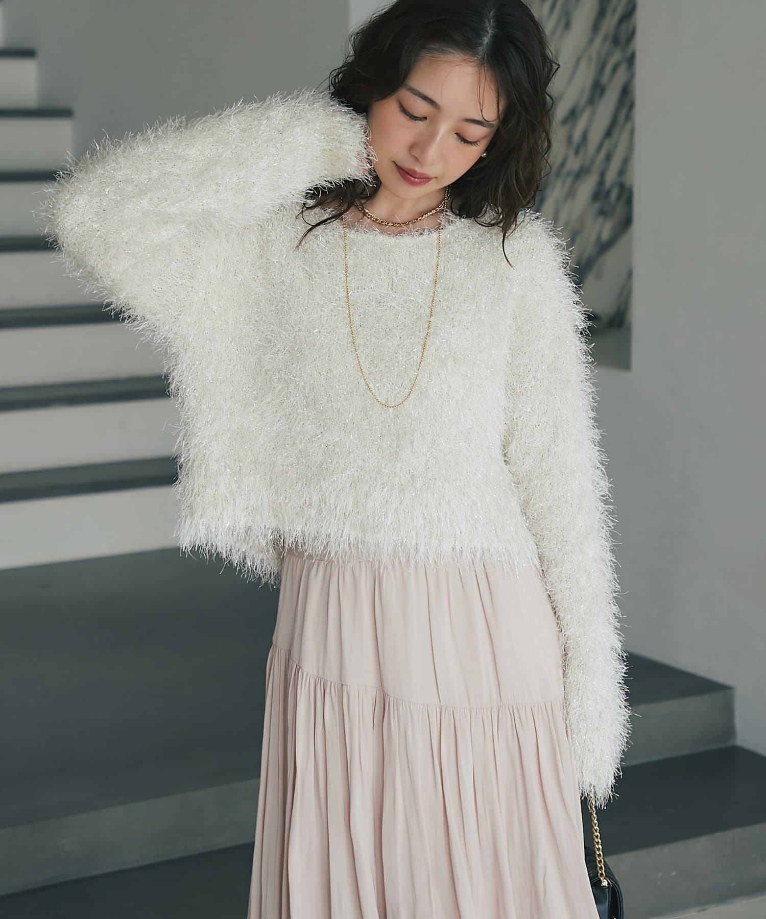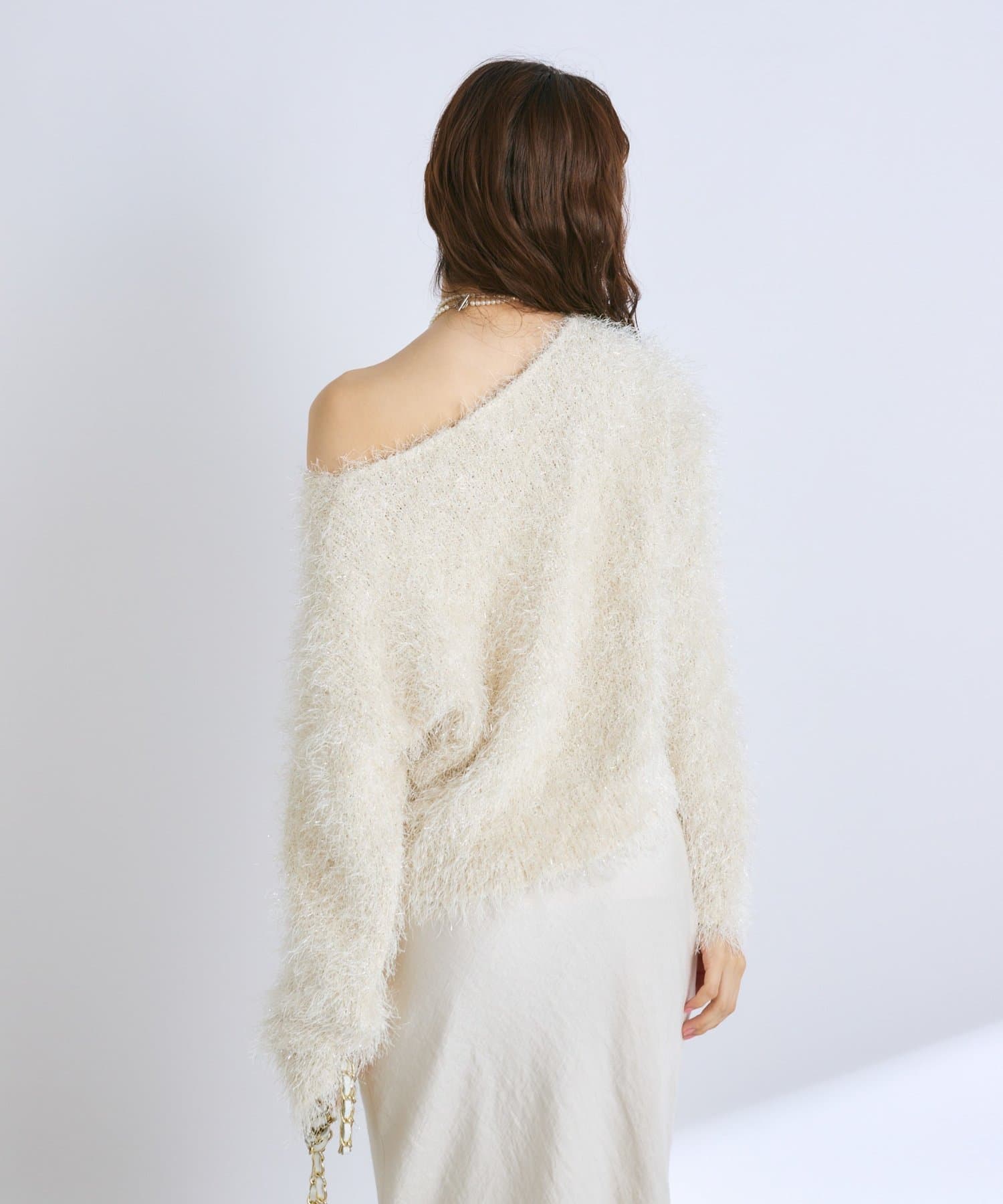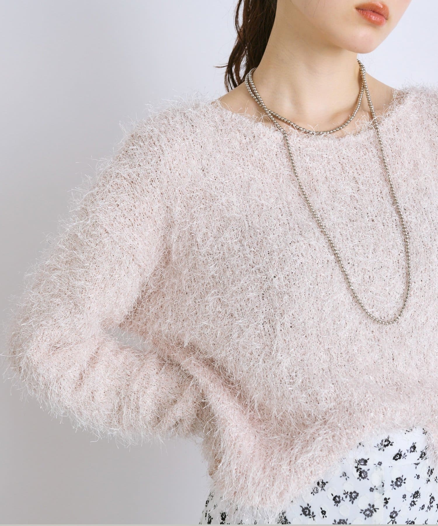 ラメが煌めく、ふわふわ素材の華やかニット。