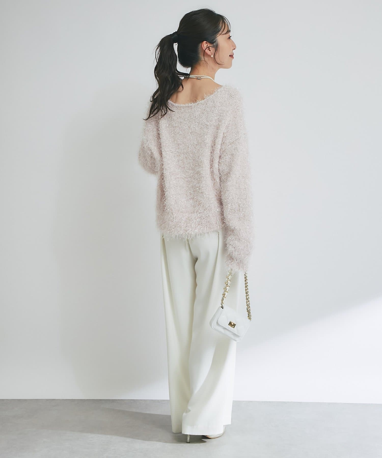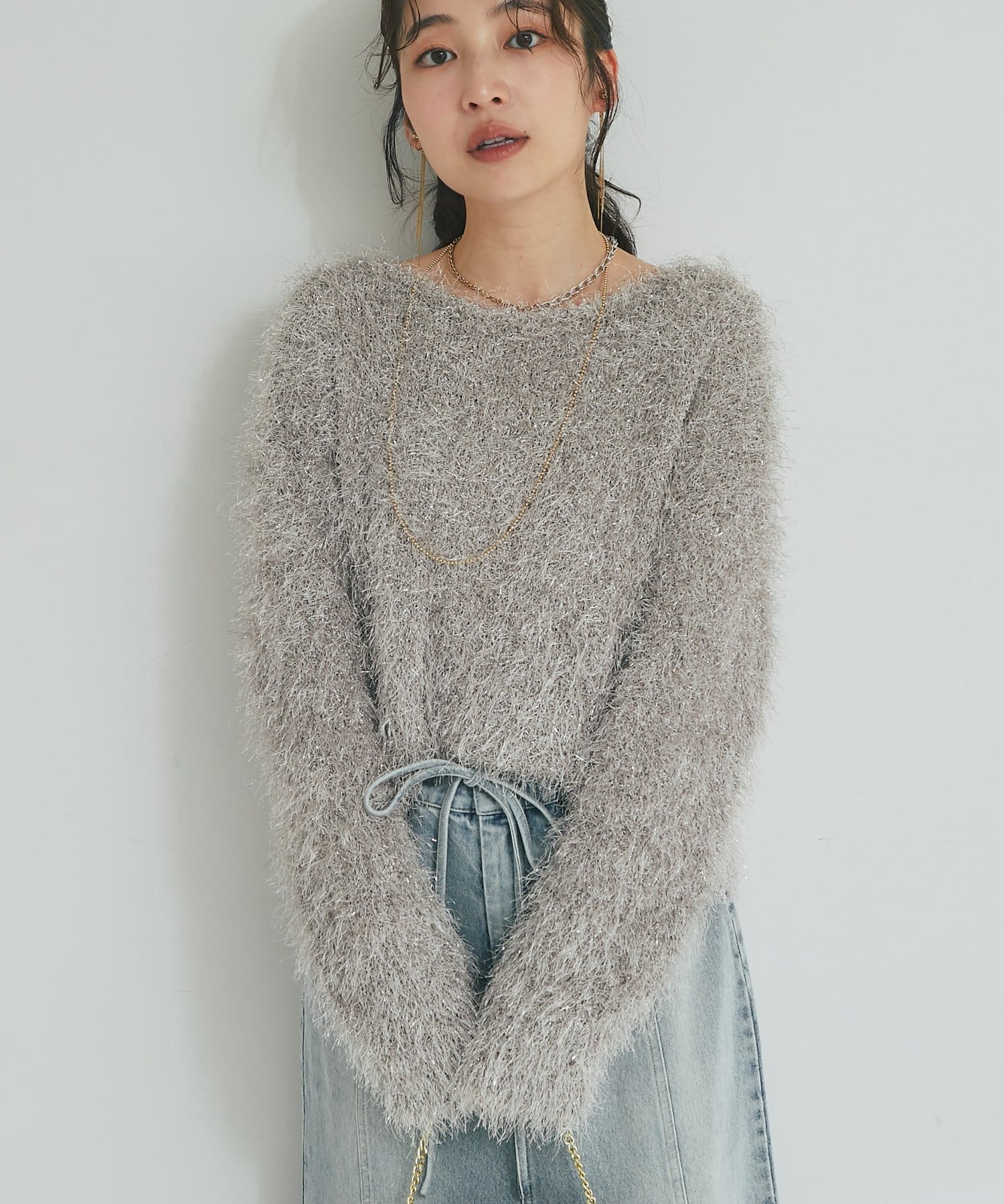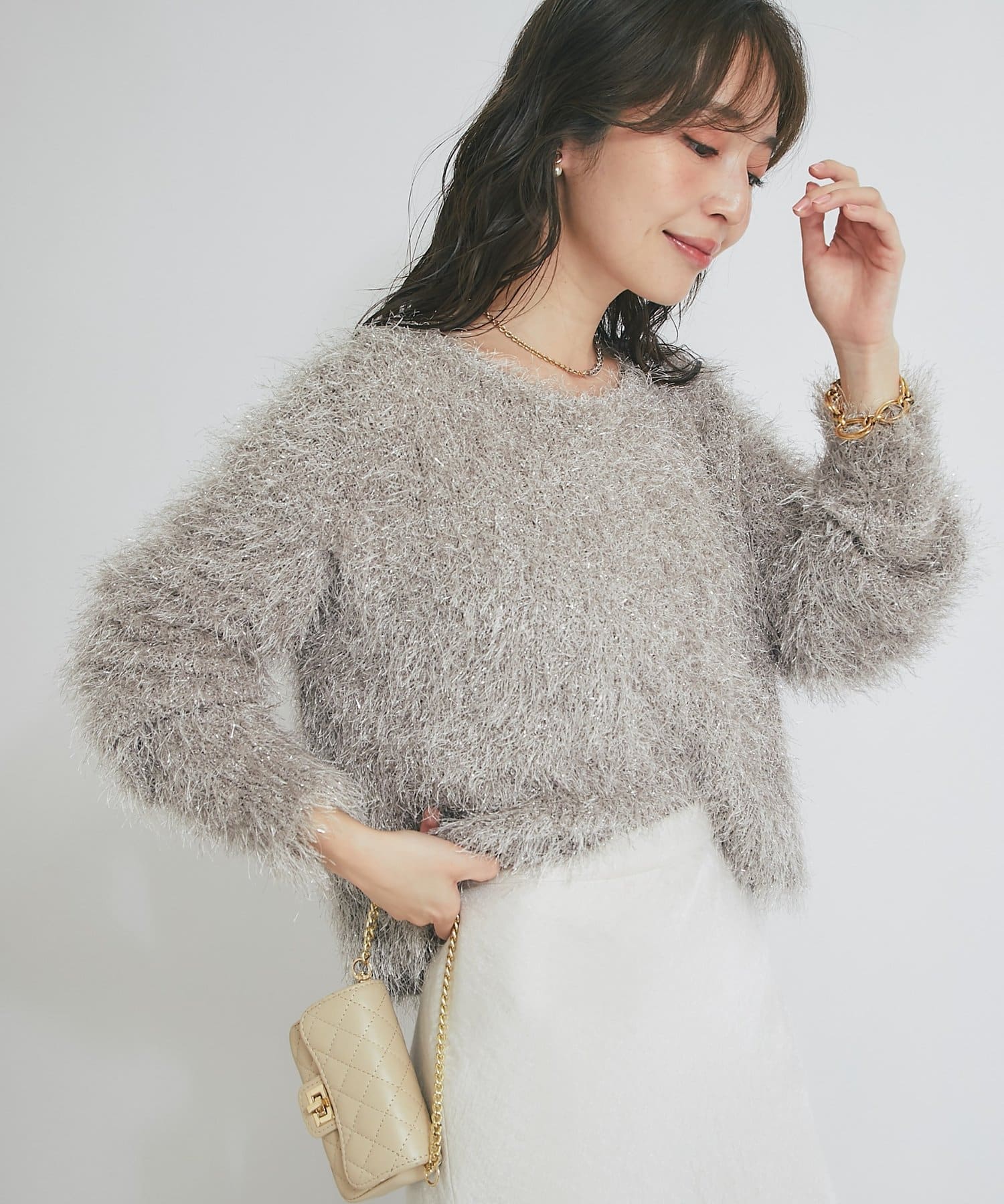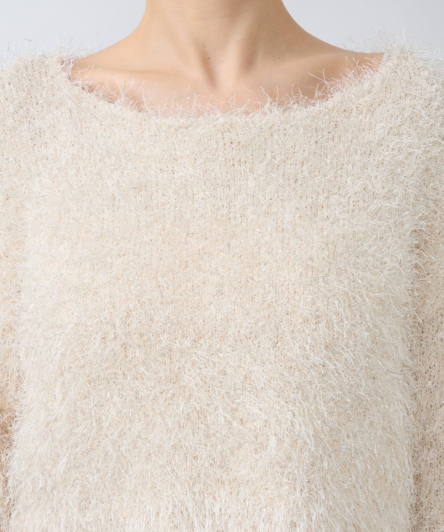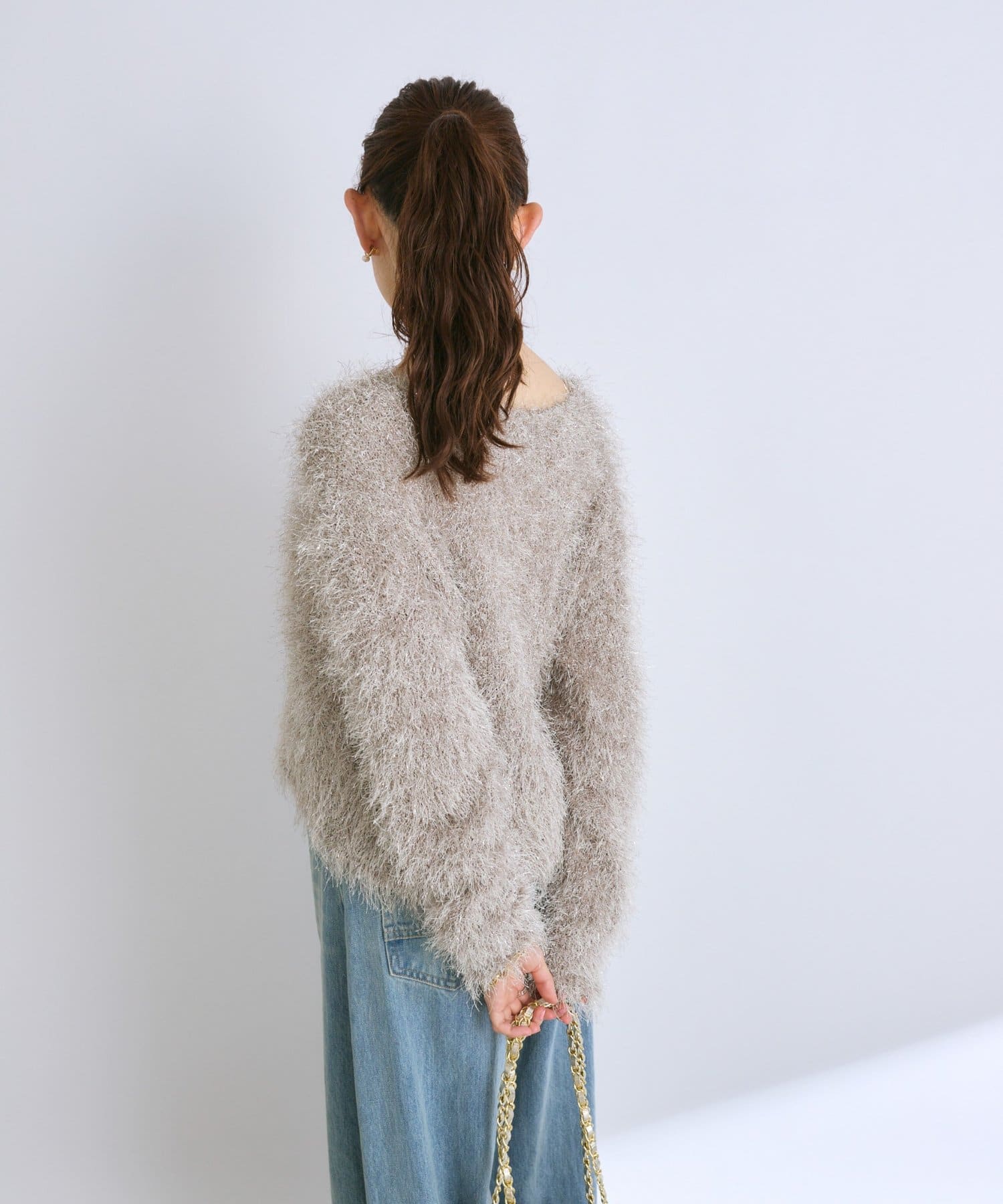 ラメが煌めく、ふわふわ素材の華やかニット。