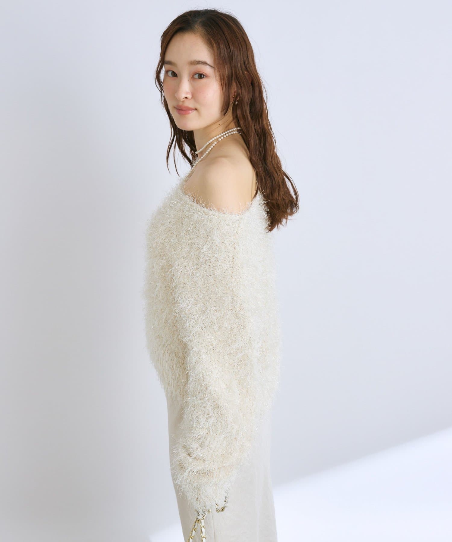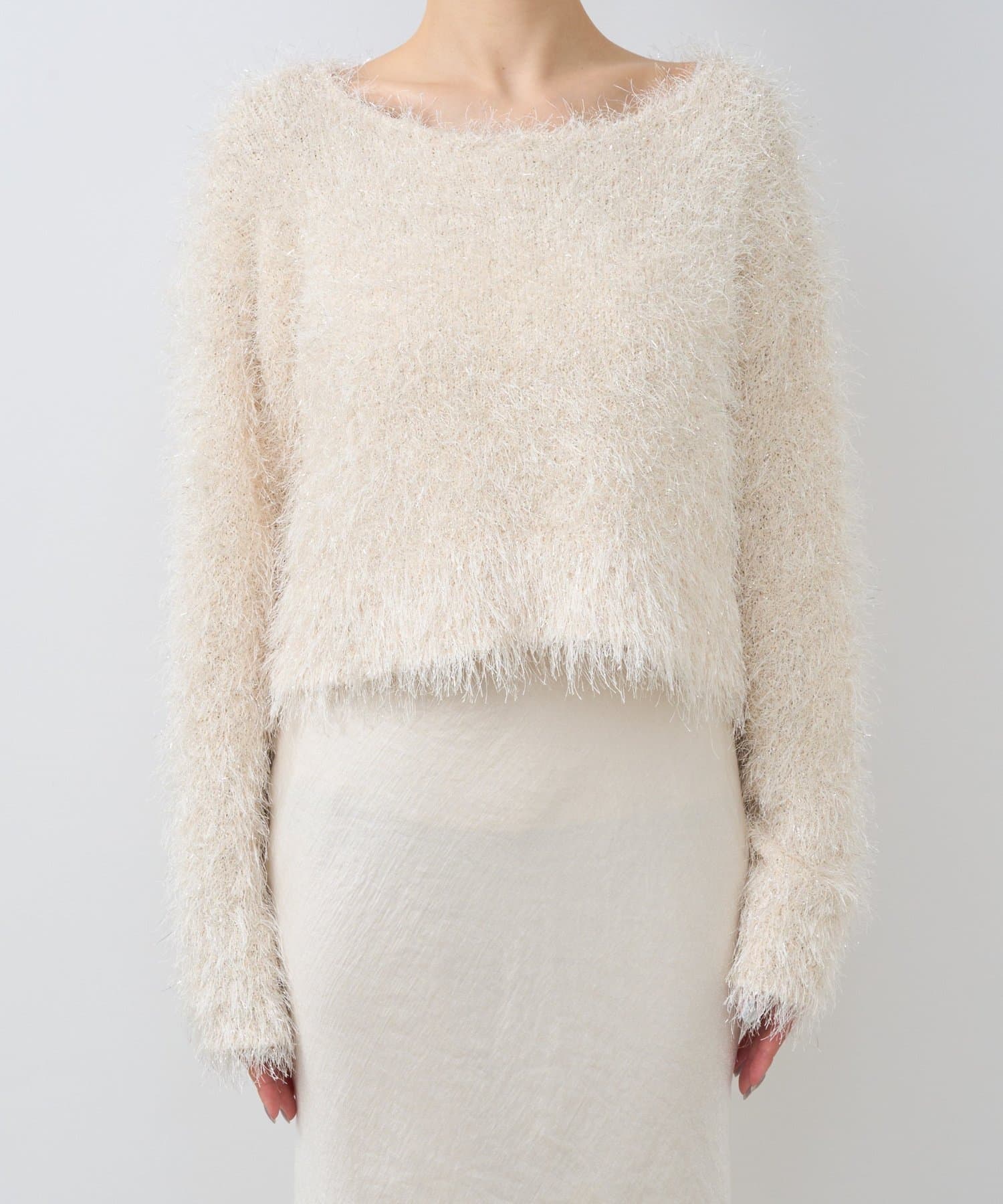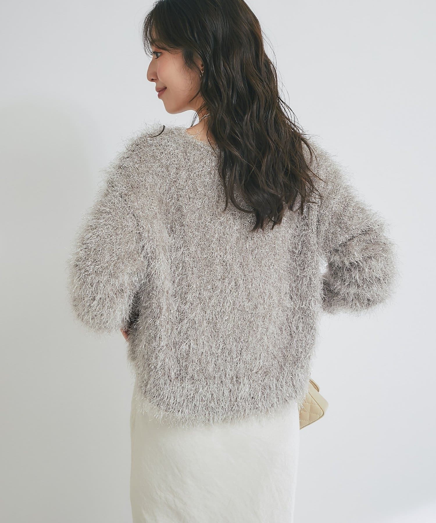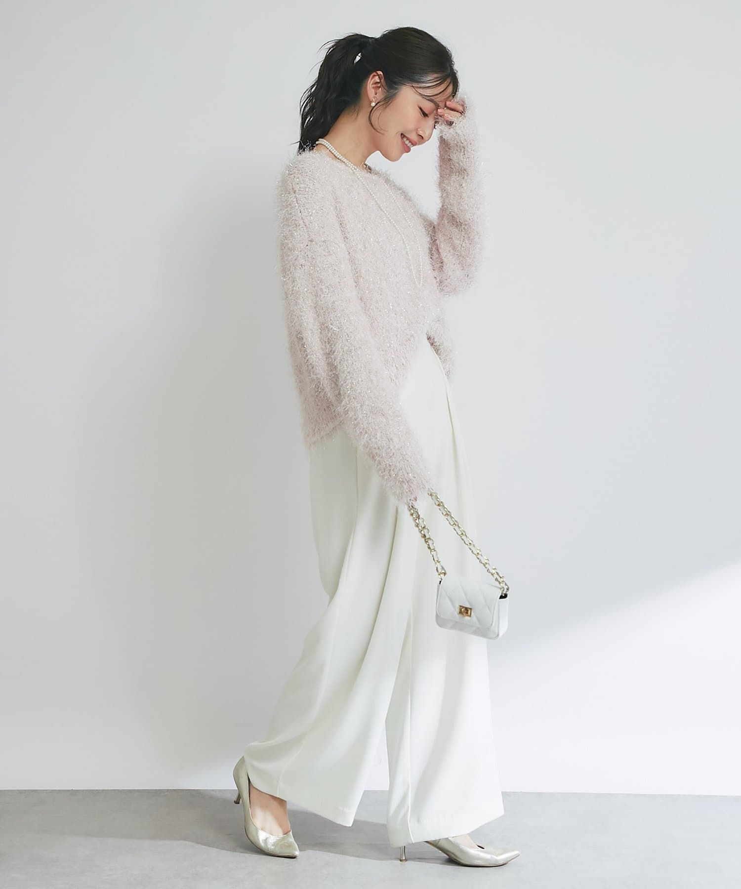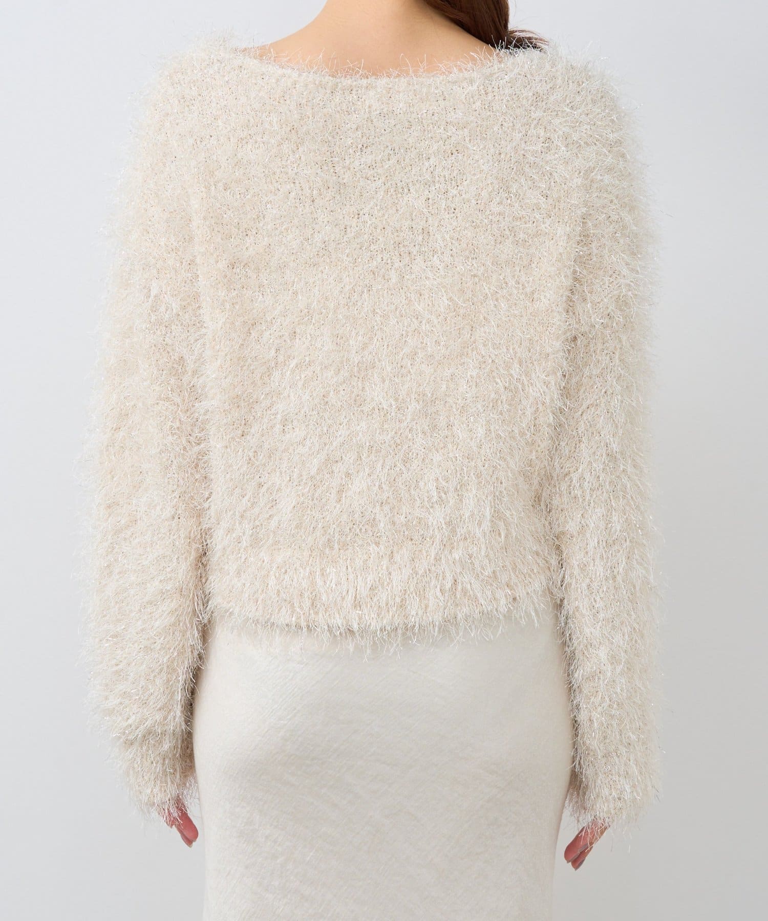 ラメが煌めく、ふわふわ素材の華やかニット。