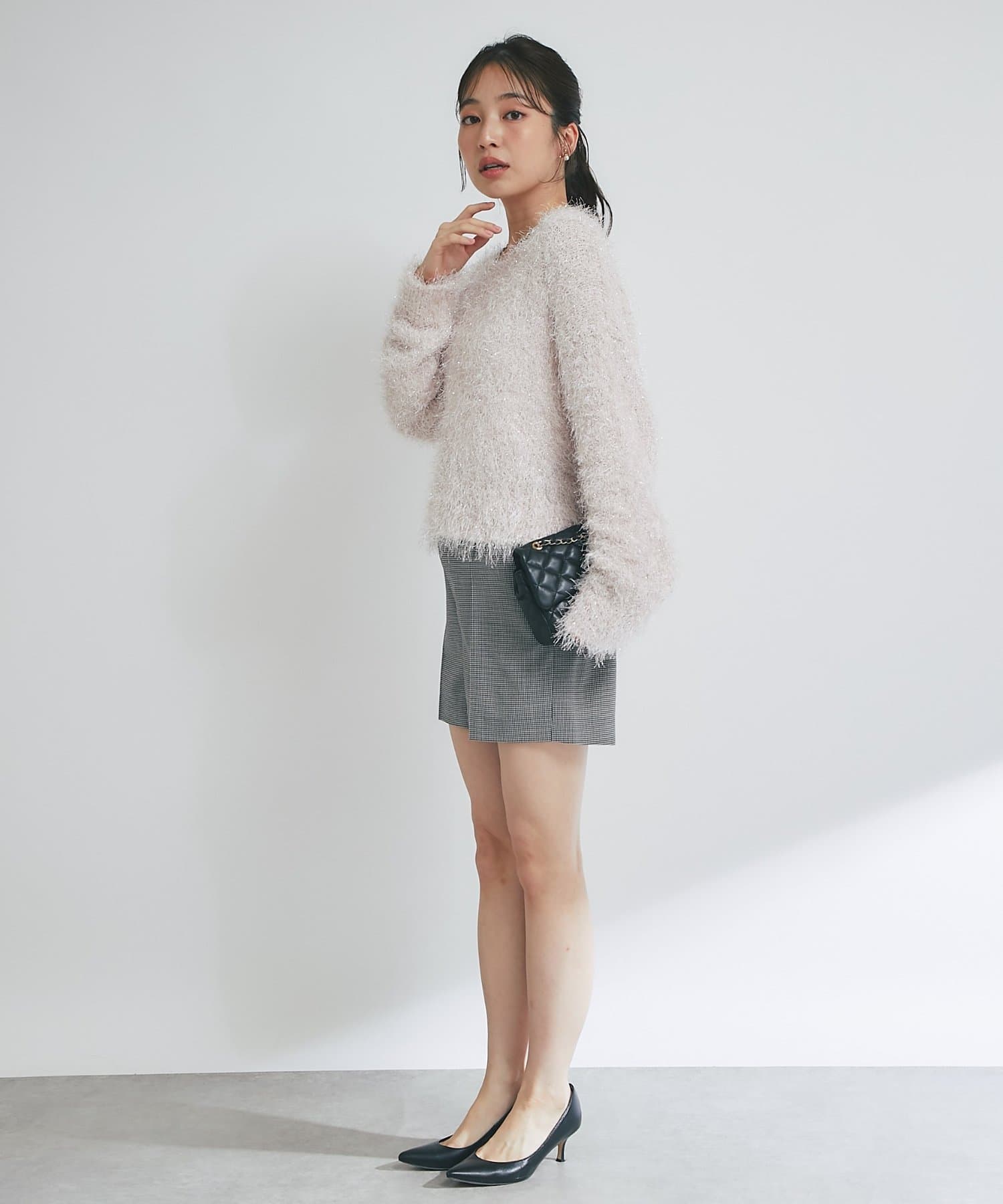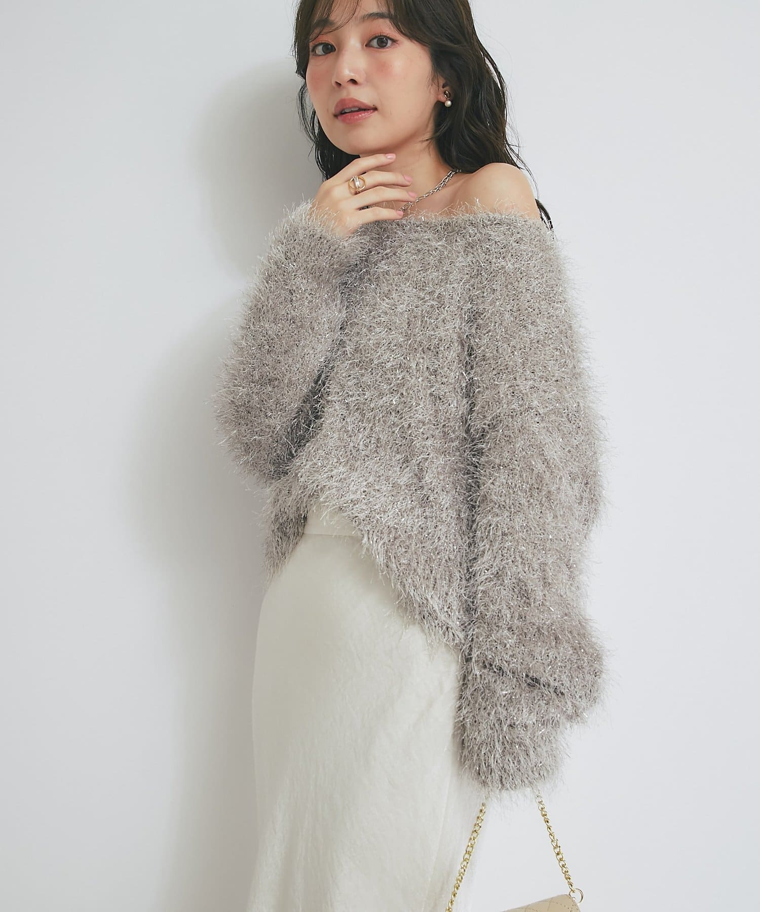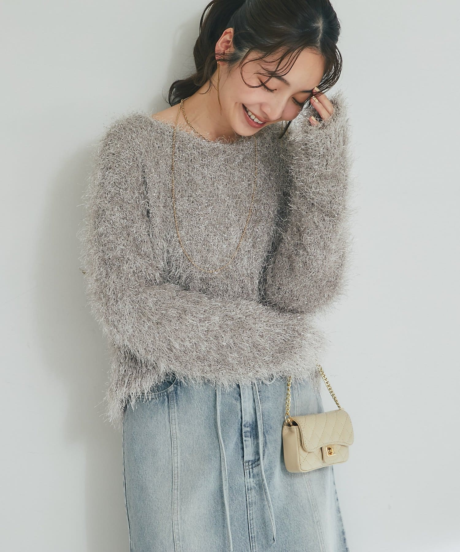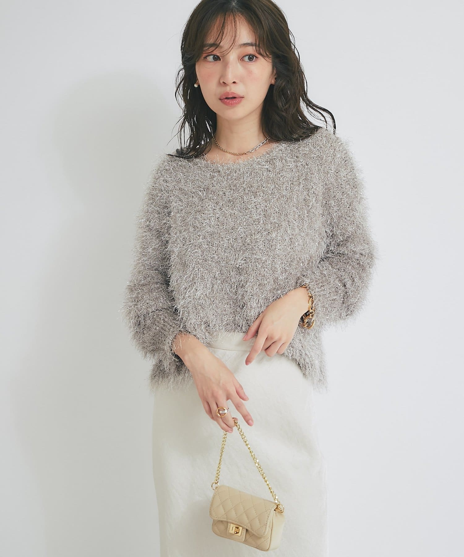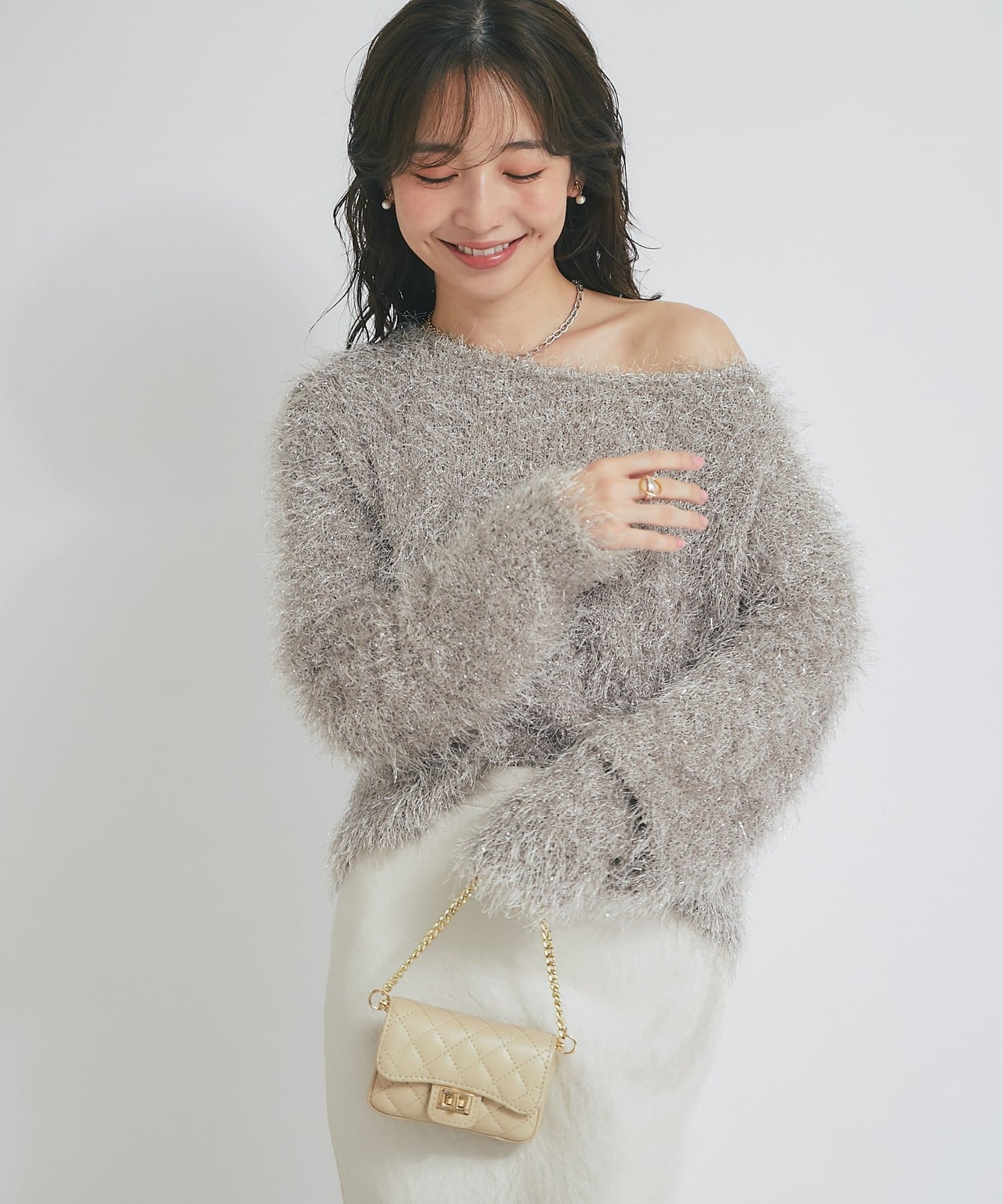 ラメが煌めく、ふわふわ素材の華やかニット。