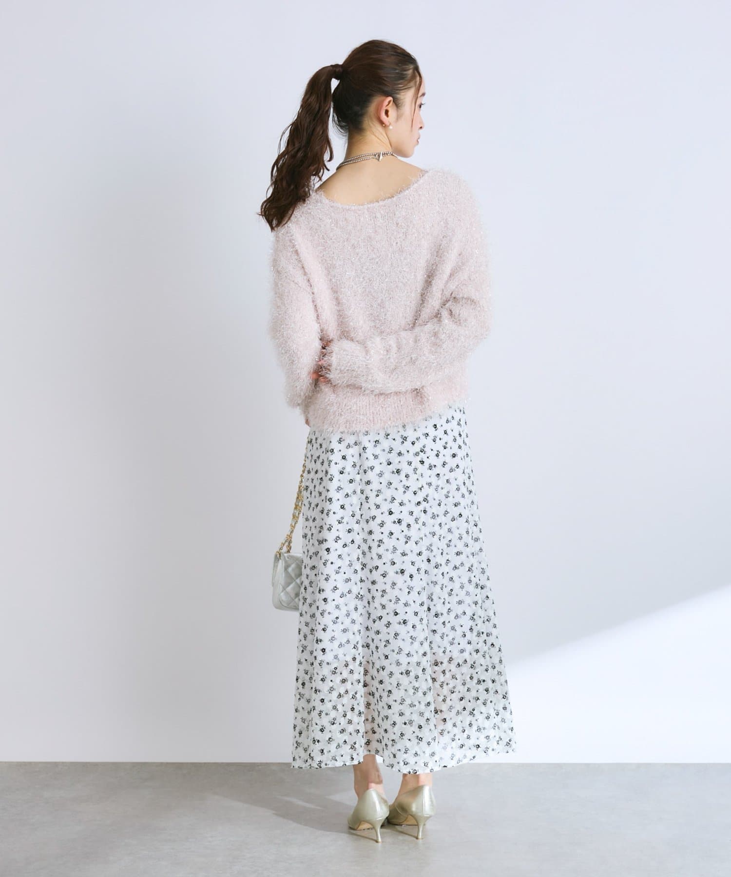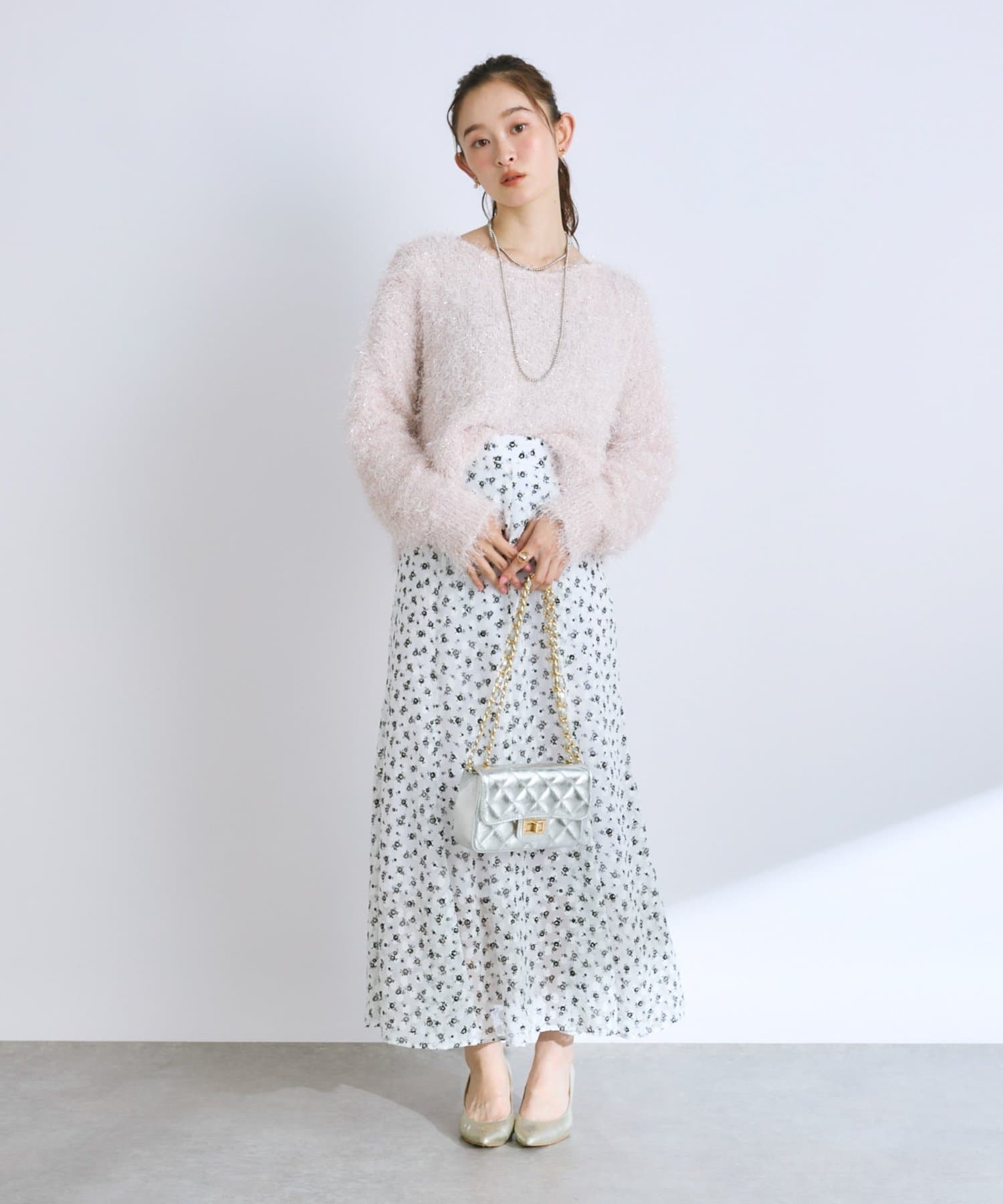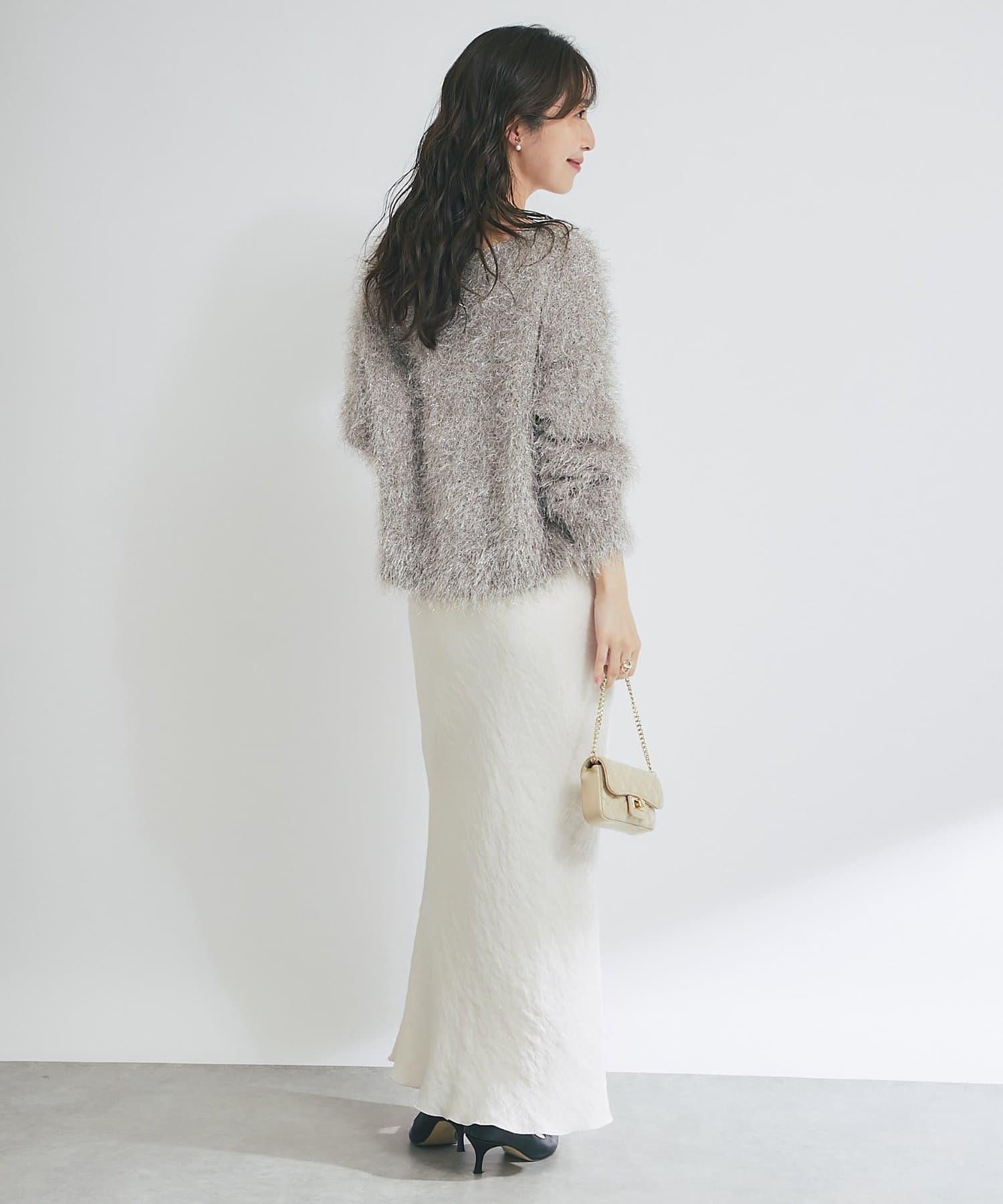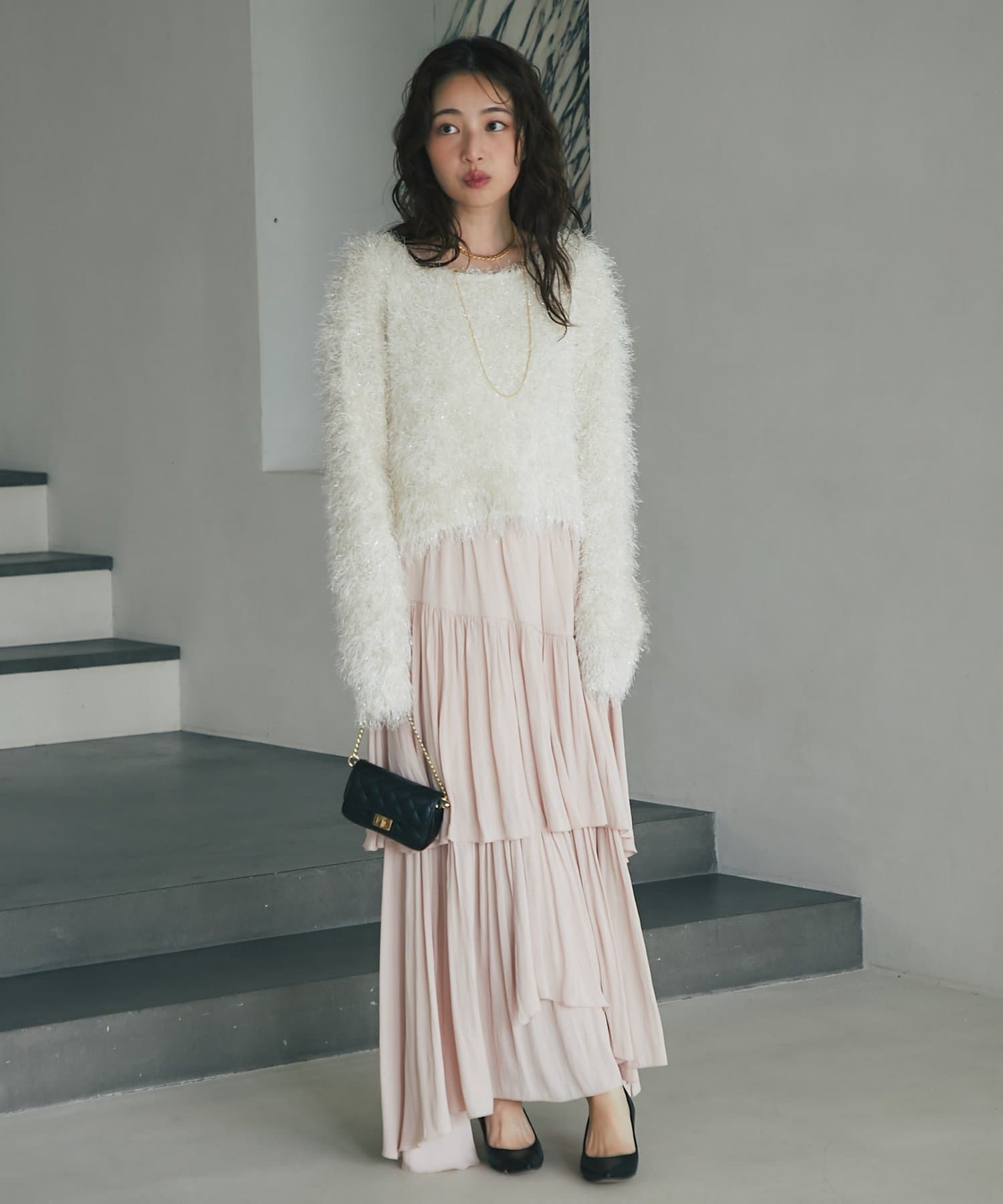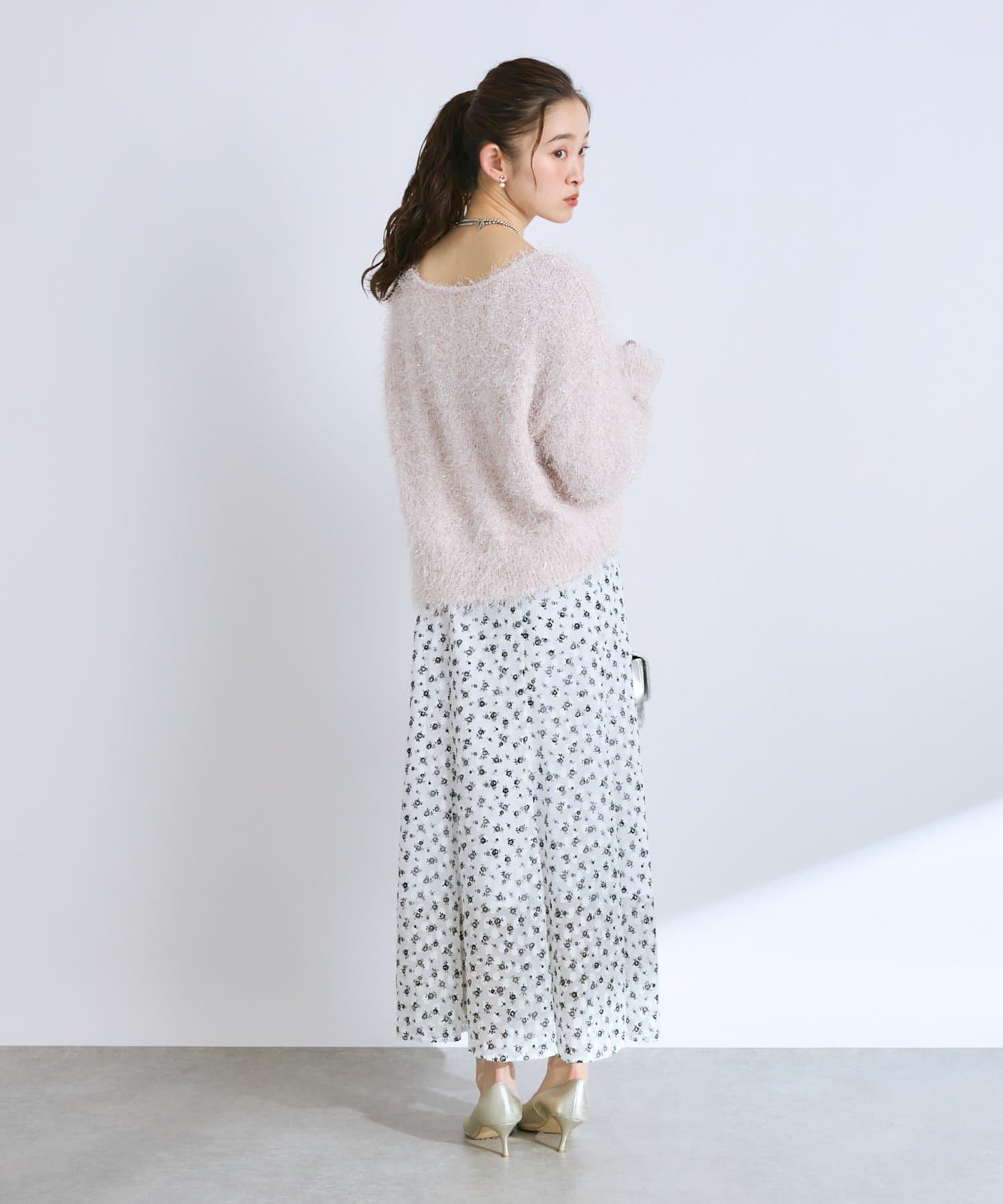 ラメが煌めく、ふわふわ素材の華やかニット。