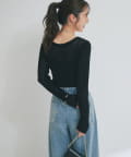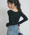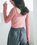 ボディに優しくフィットするリブ編みで、すっきりと見せつつも締めつけ感のない快適な着心地。