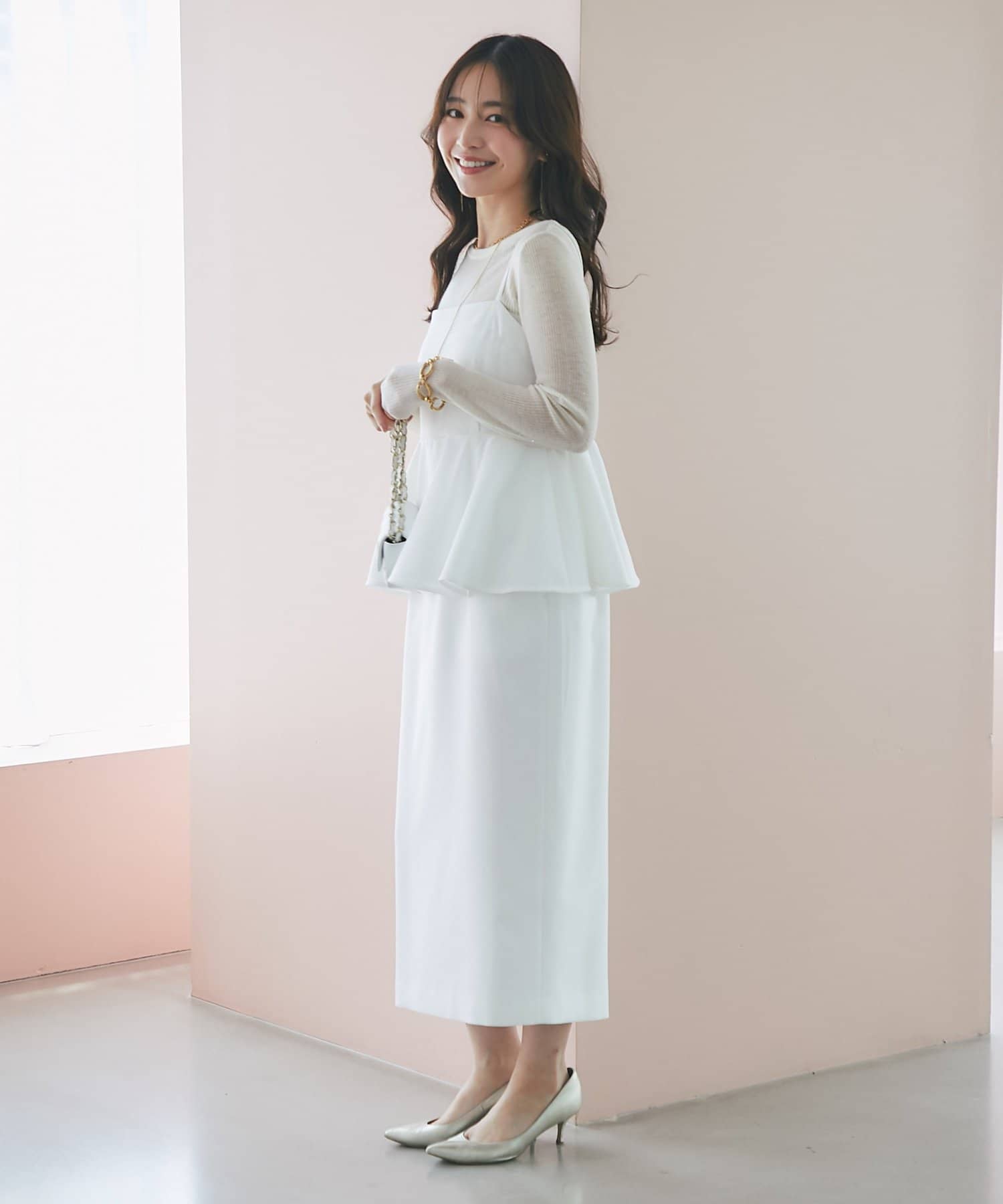 ジャケットやカーディガンを羽織れば、オフィスにも対応できるきちんと感を演出できます。
