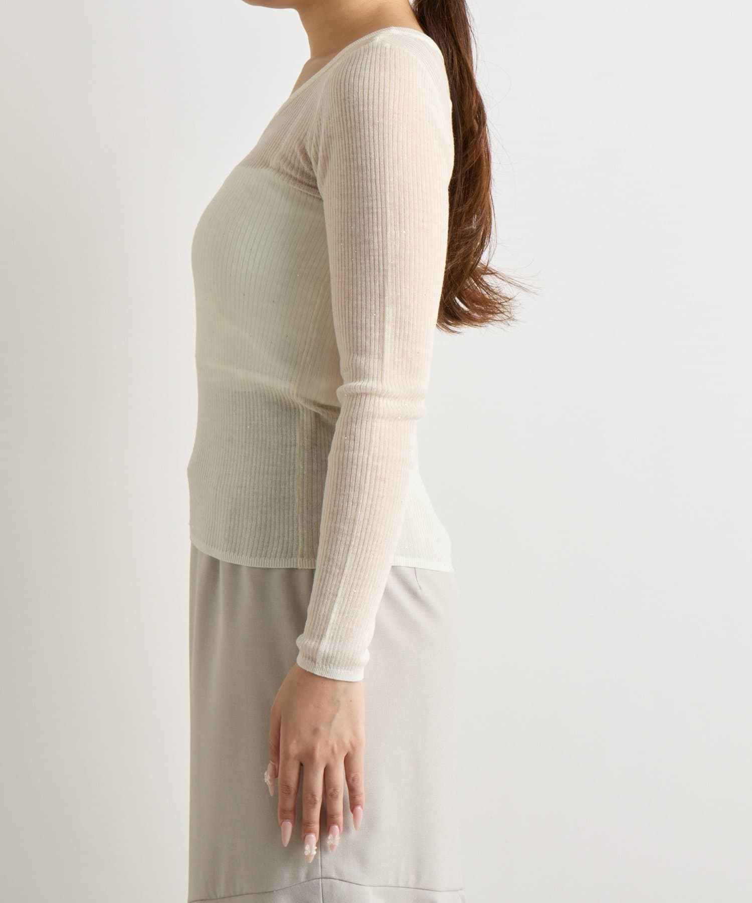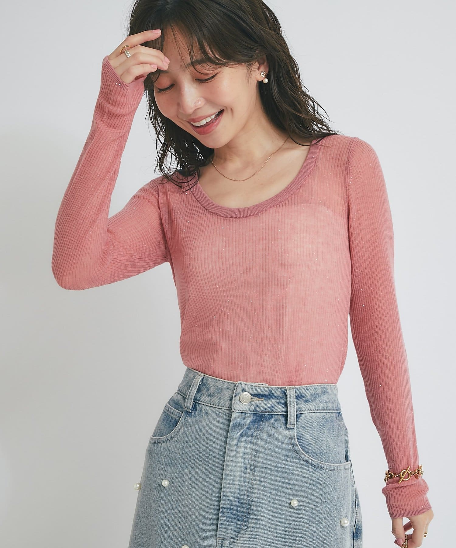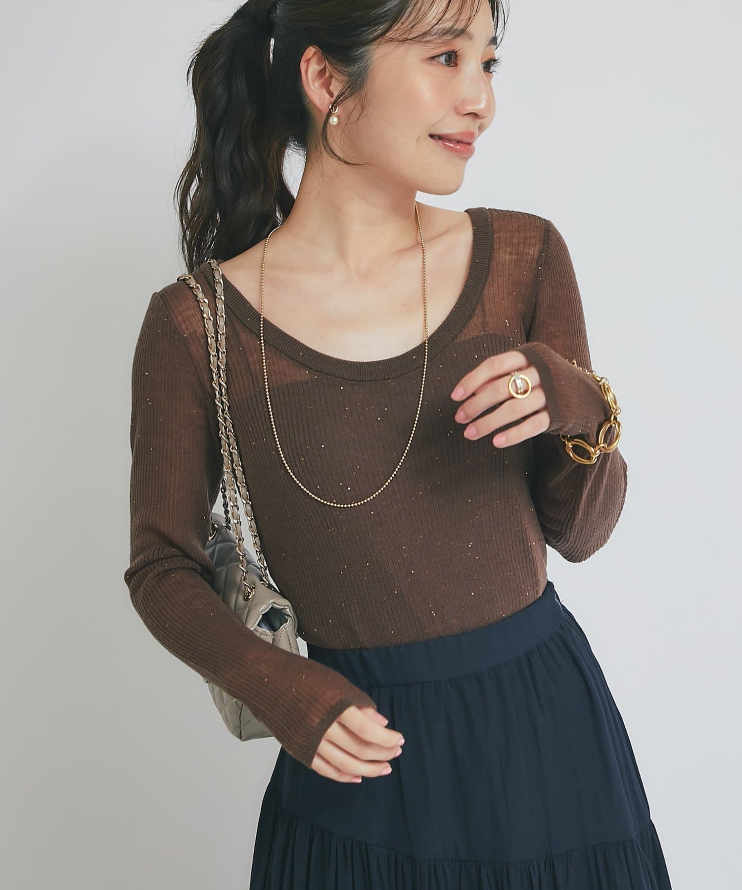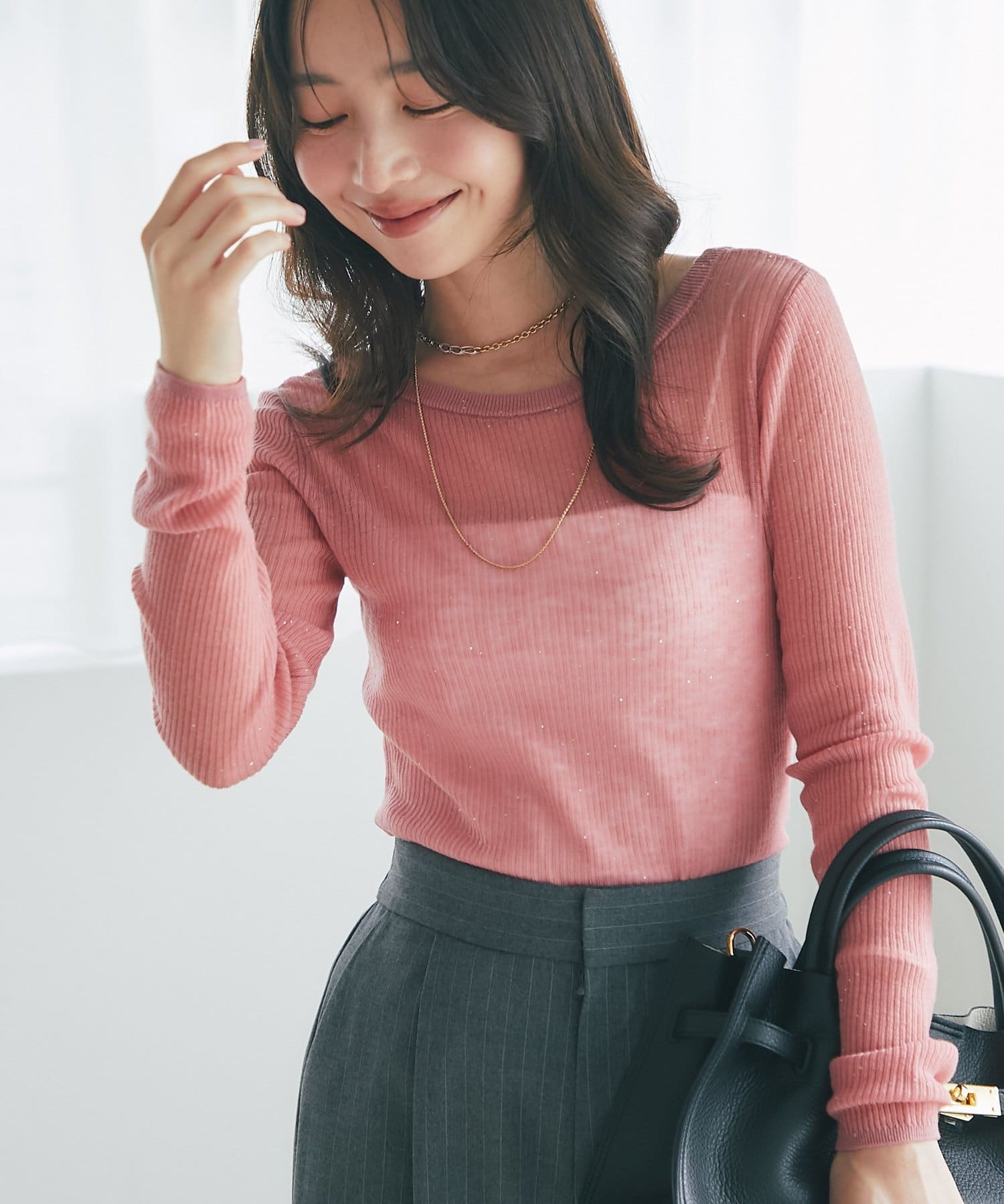 きらめくシアー感。大人のためのリラックスフィットリブトップス