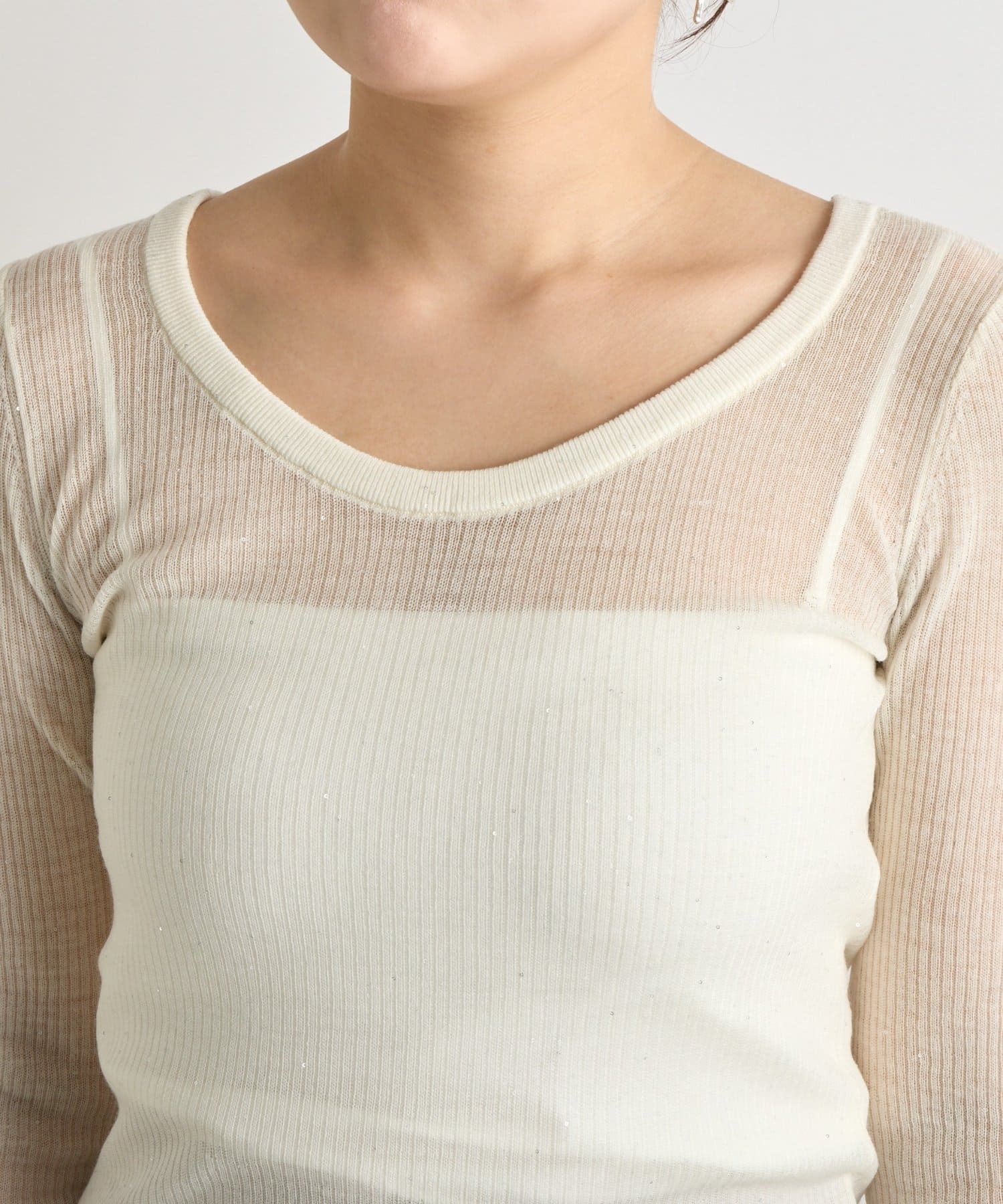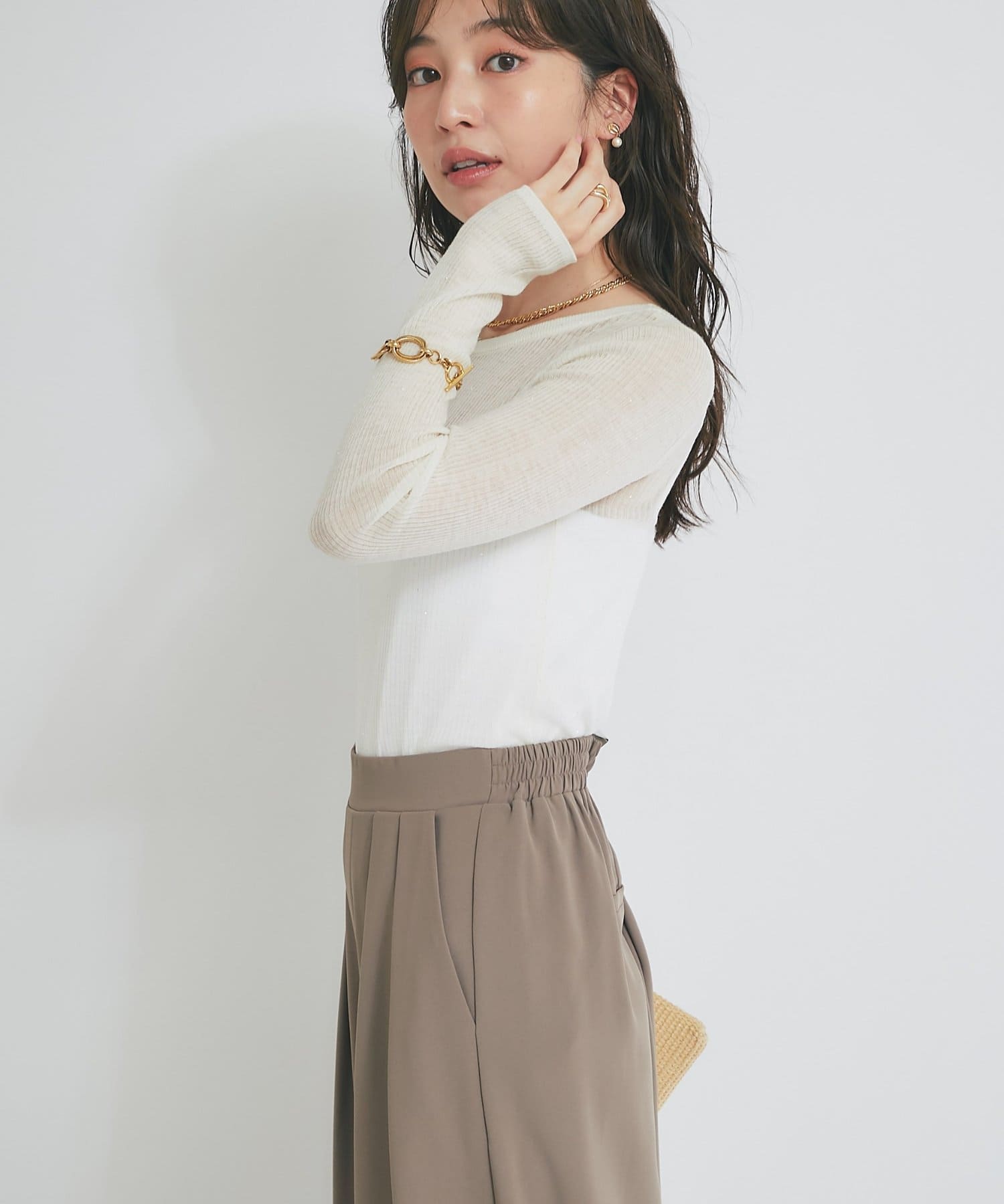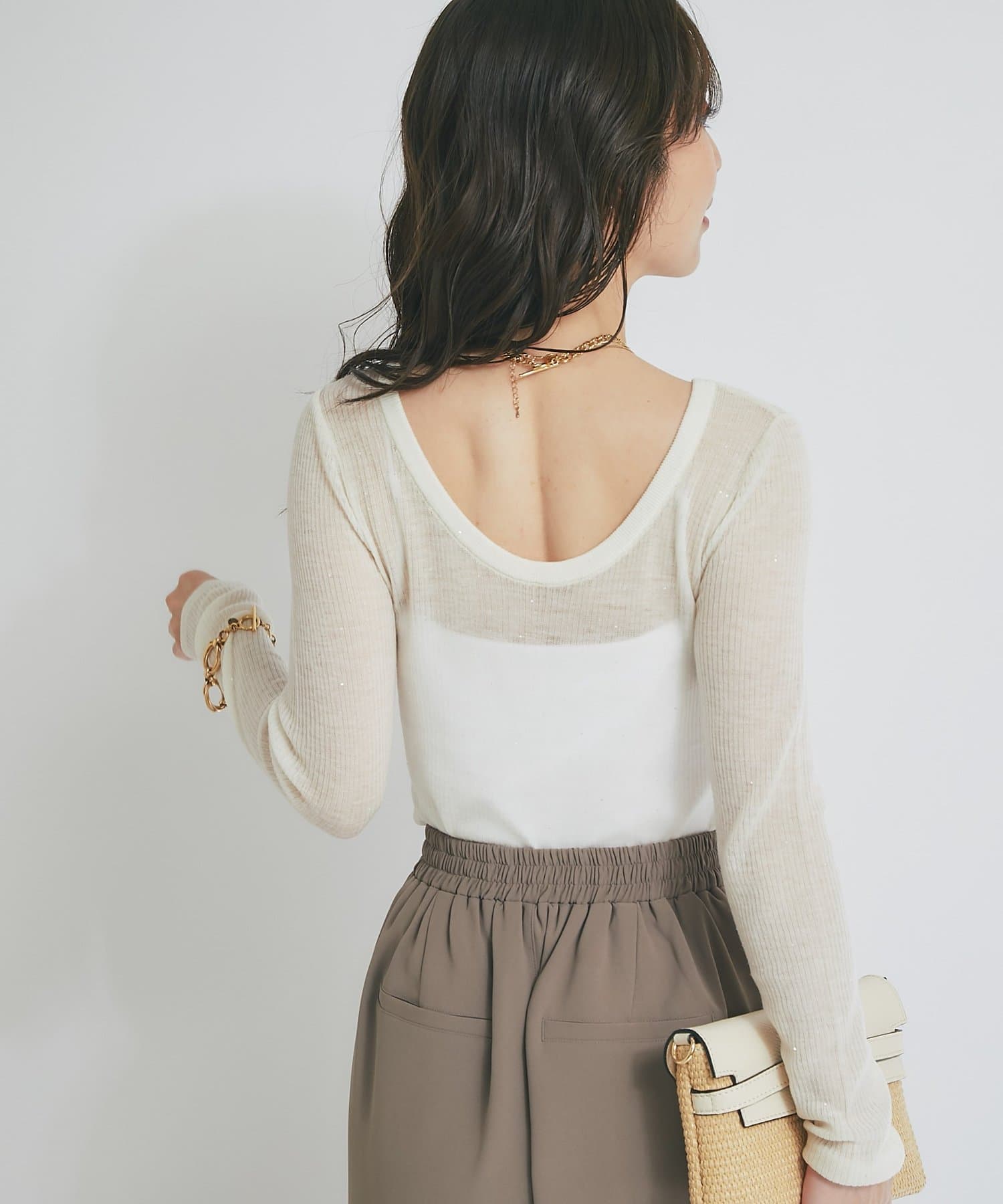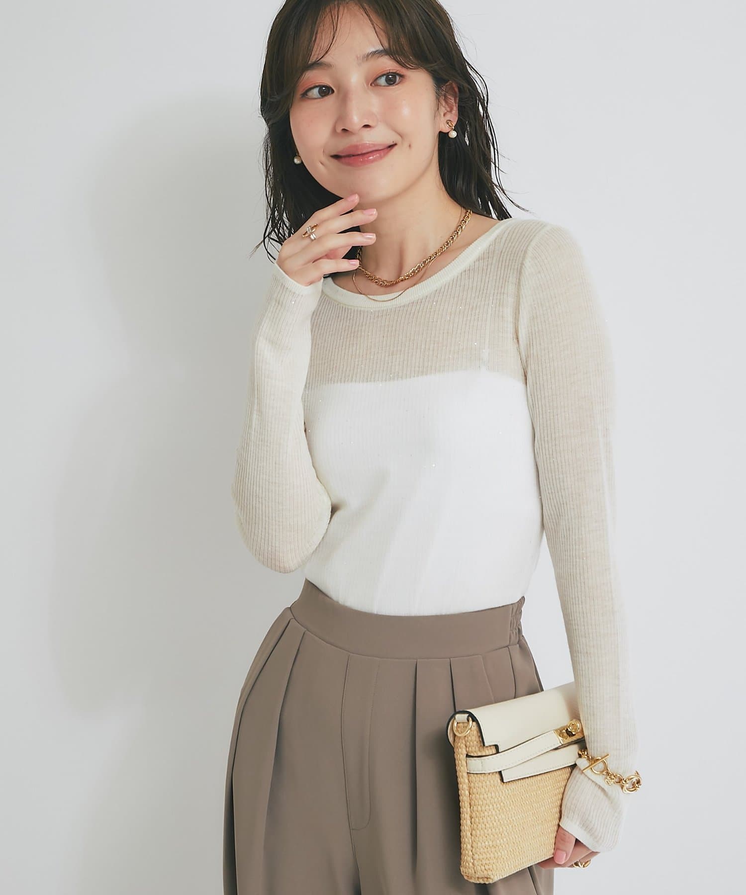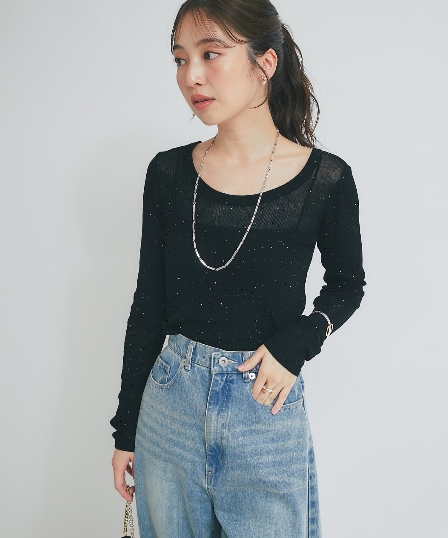 きらめくシアー感。大人のためのリラックスフィットリブトップス