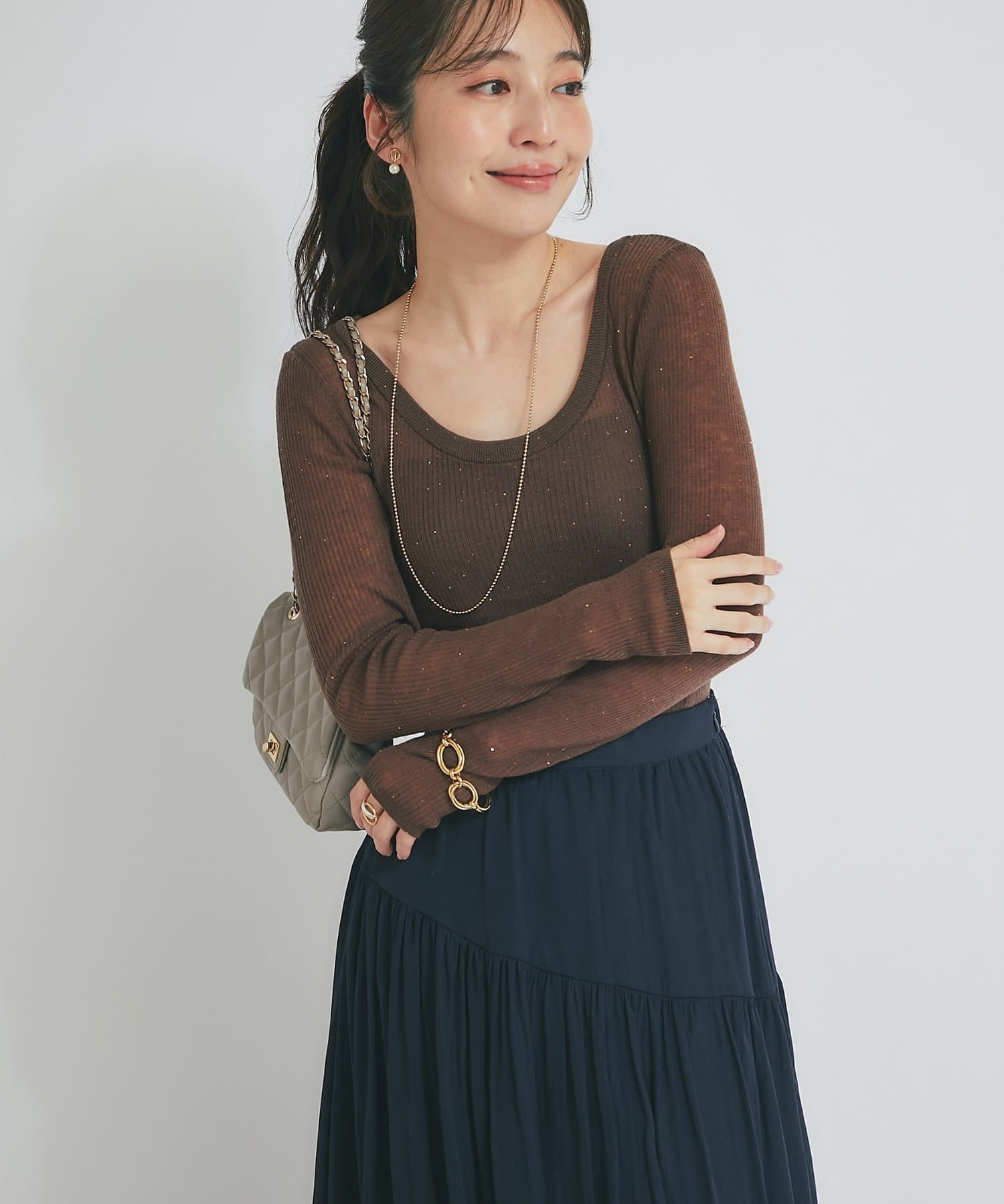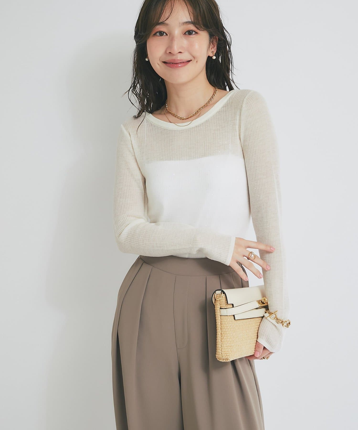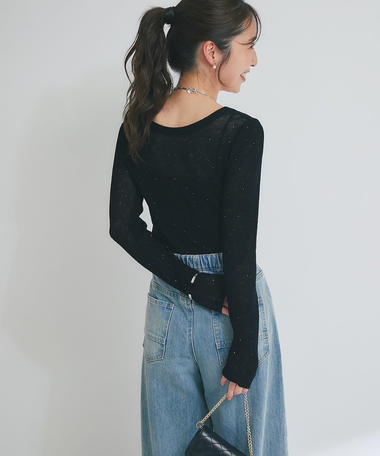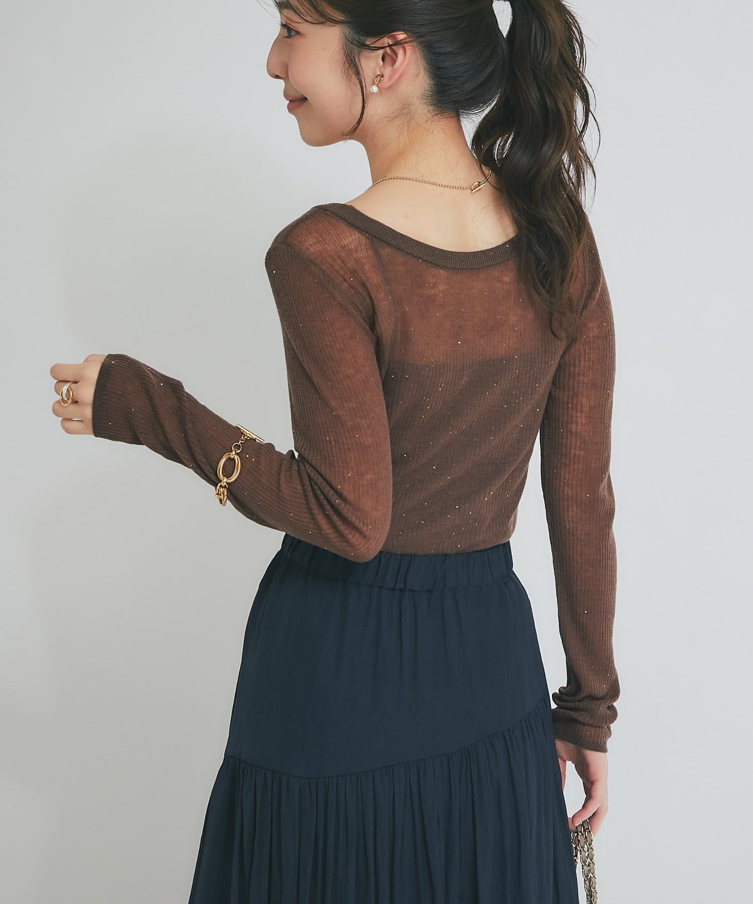きらめくシアー感。大人のためのリラックスフィットリブトップス