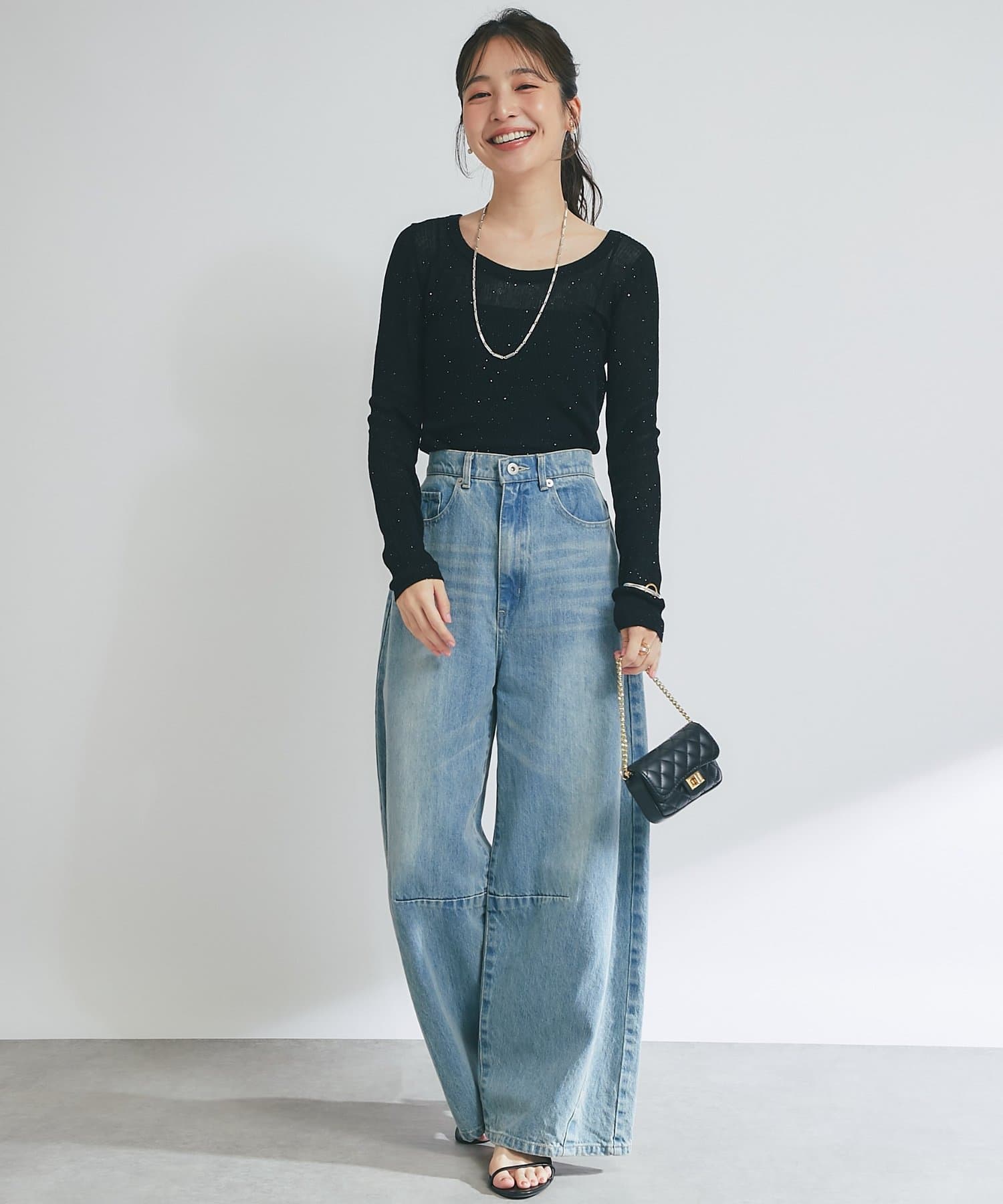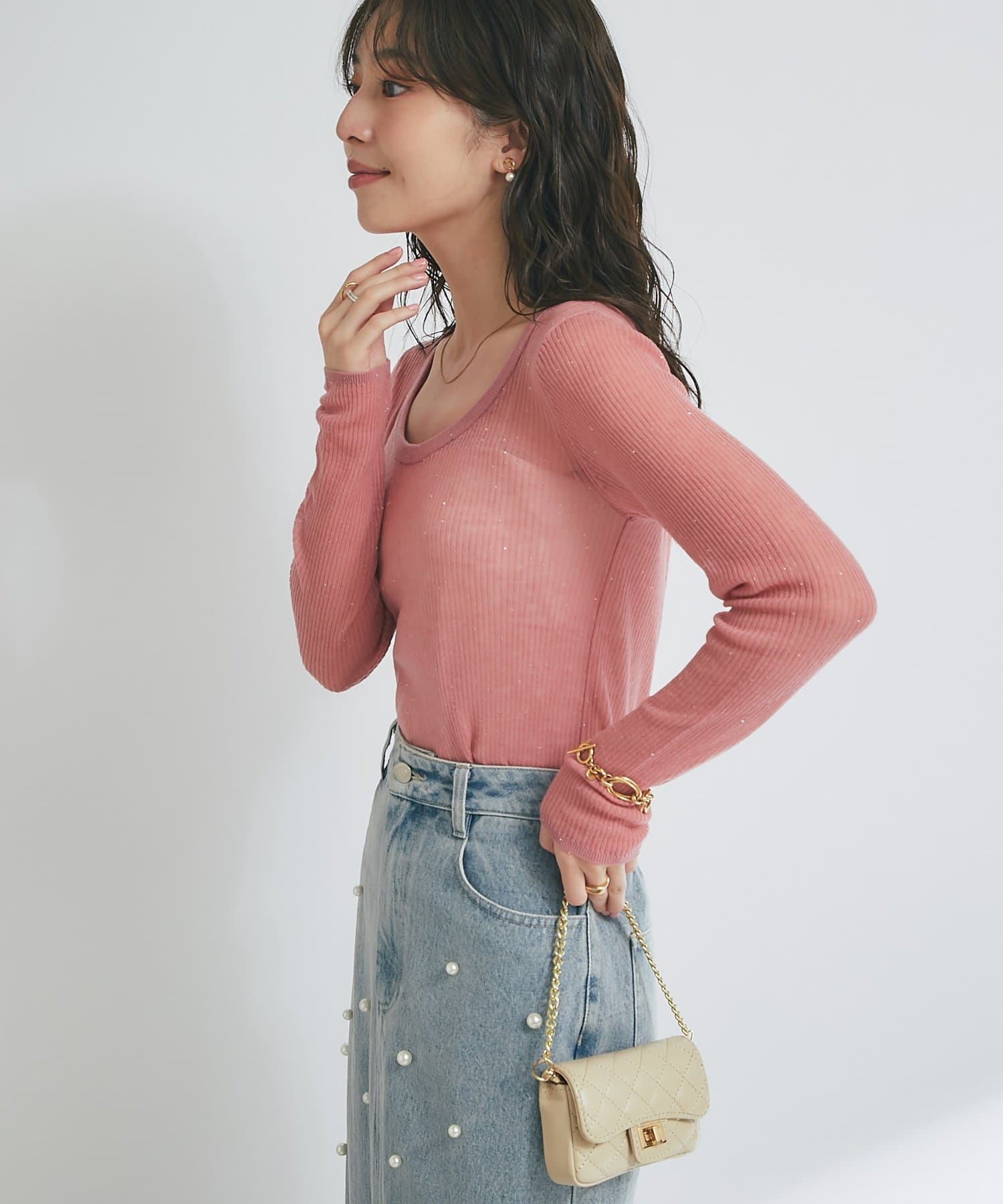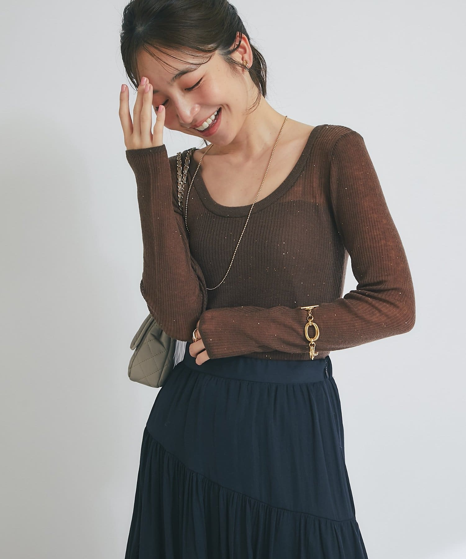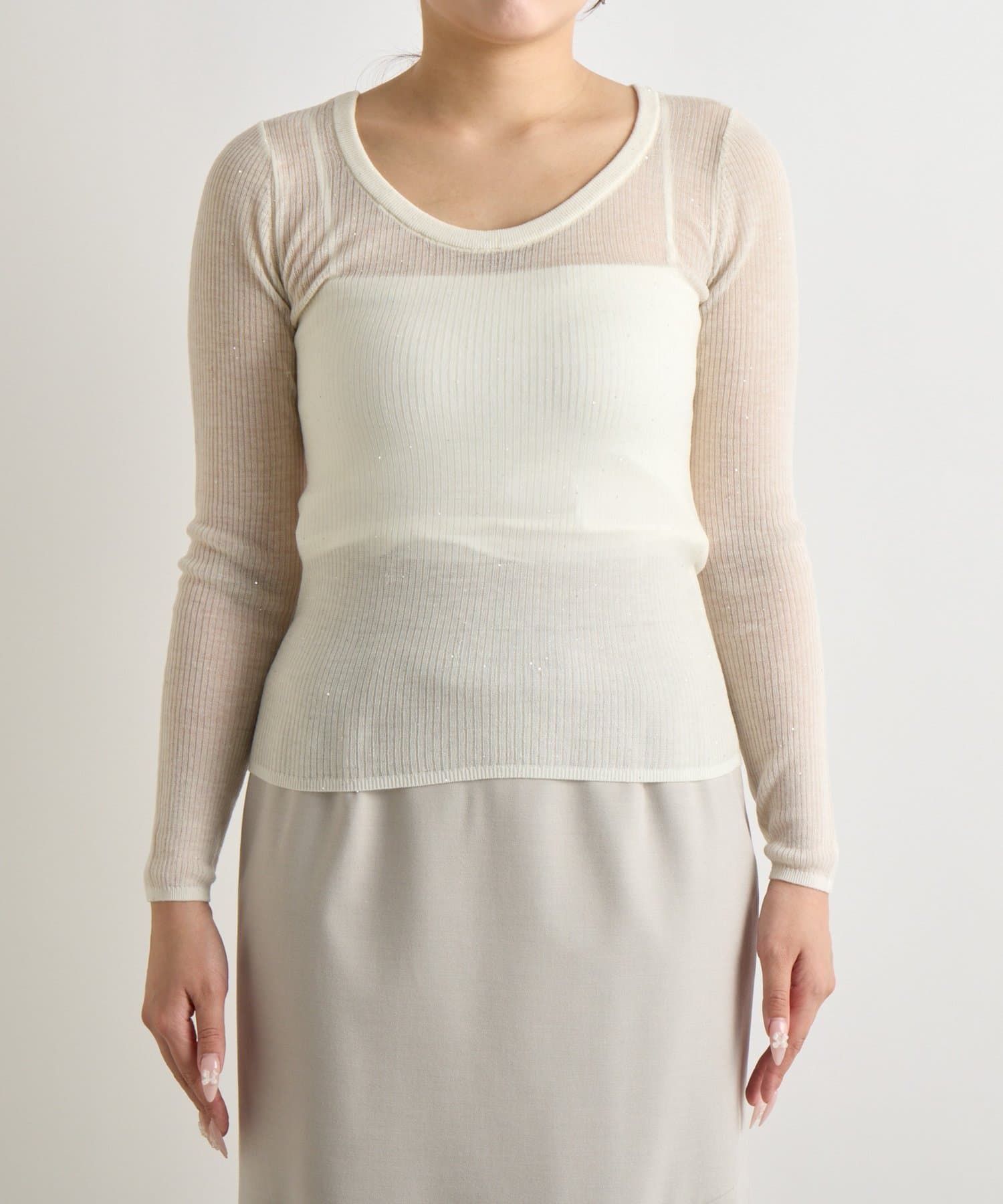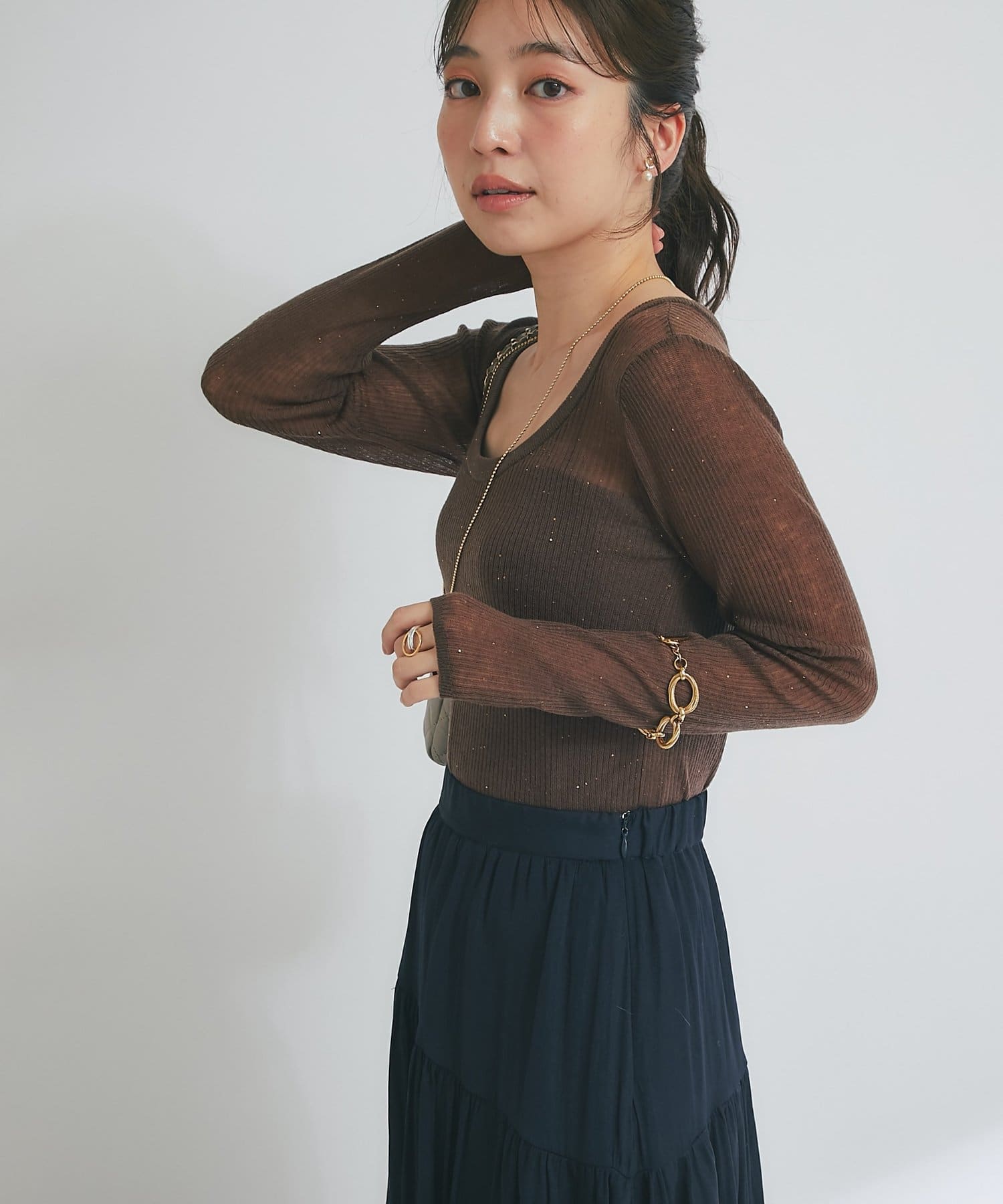 きらめくシアー感。大人のためのリラックスフィットリブトップス