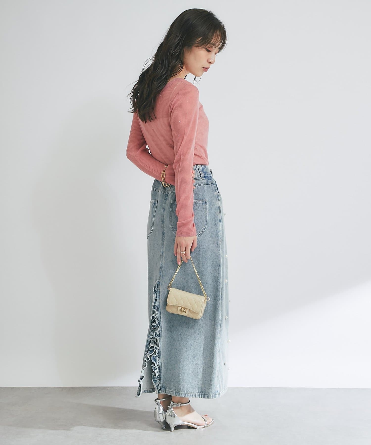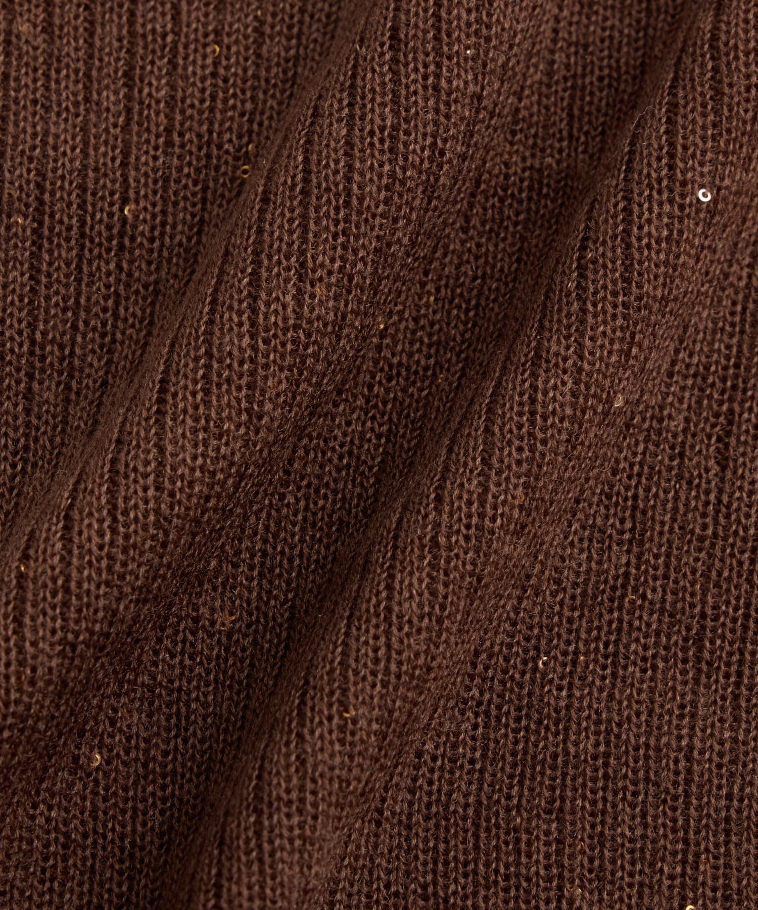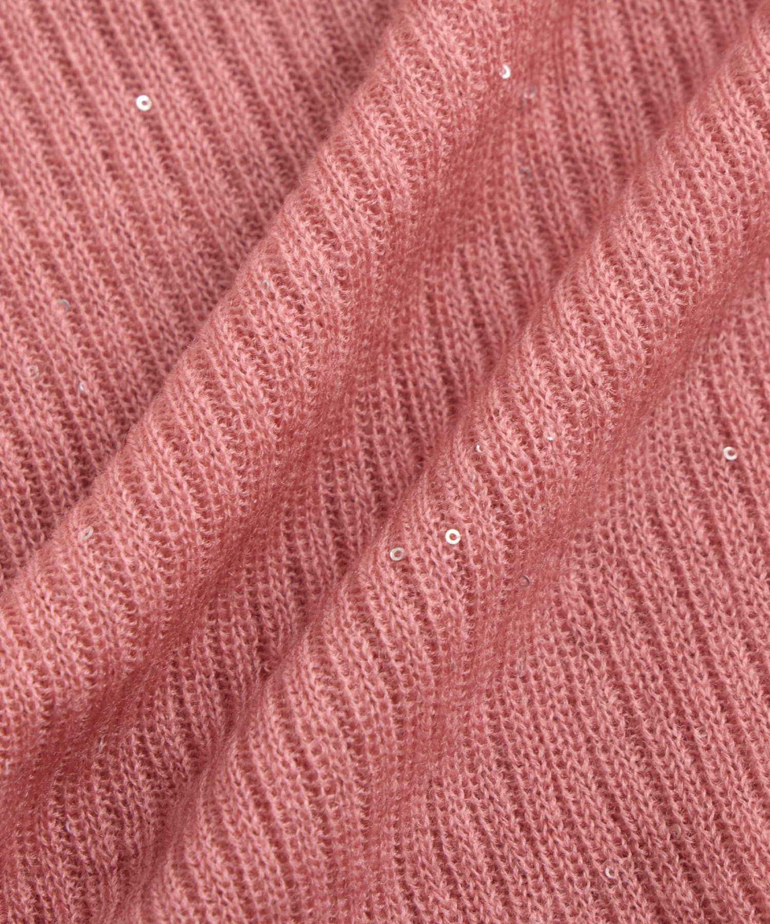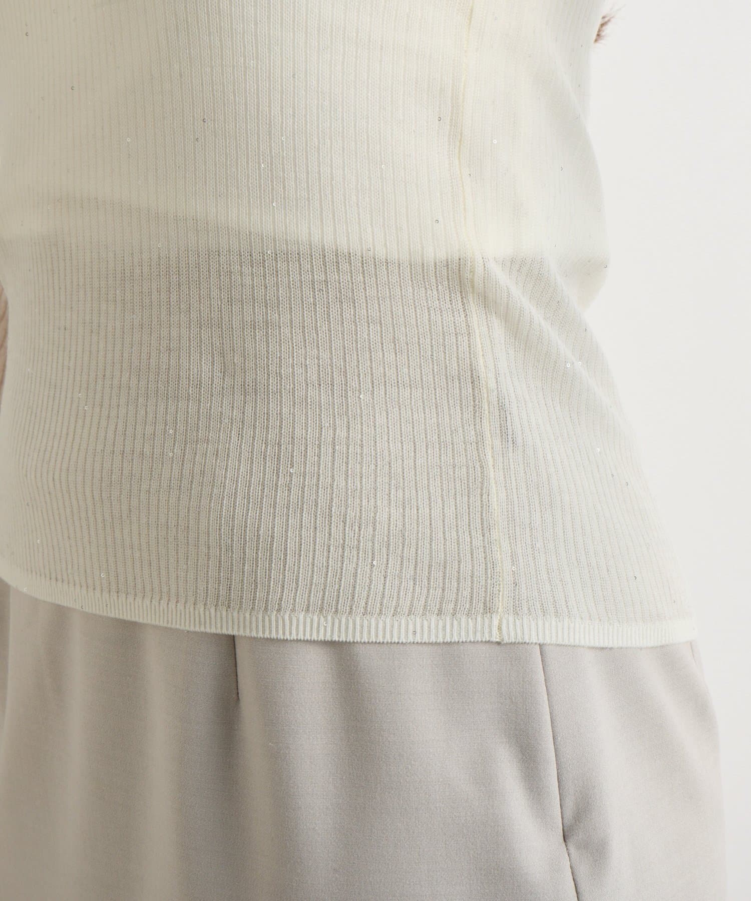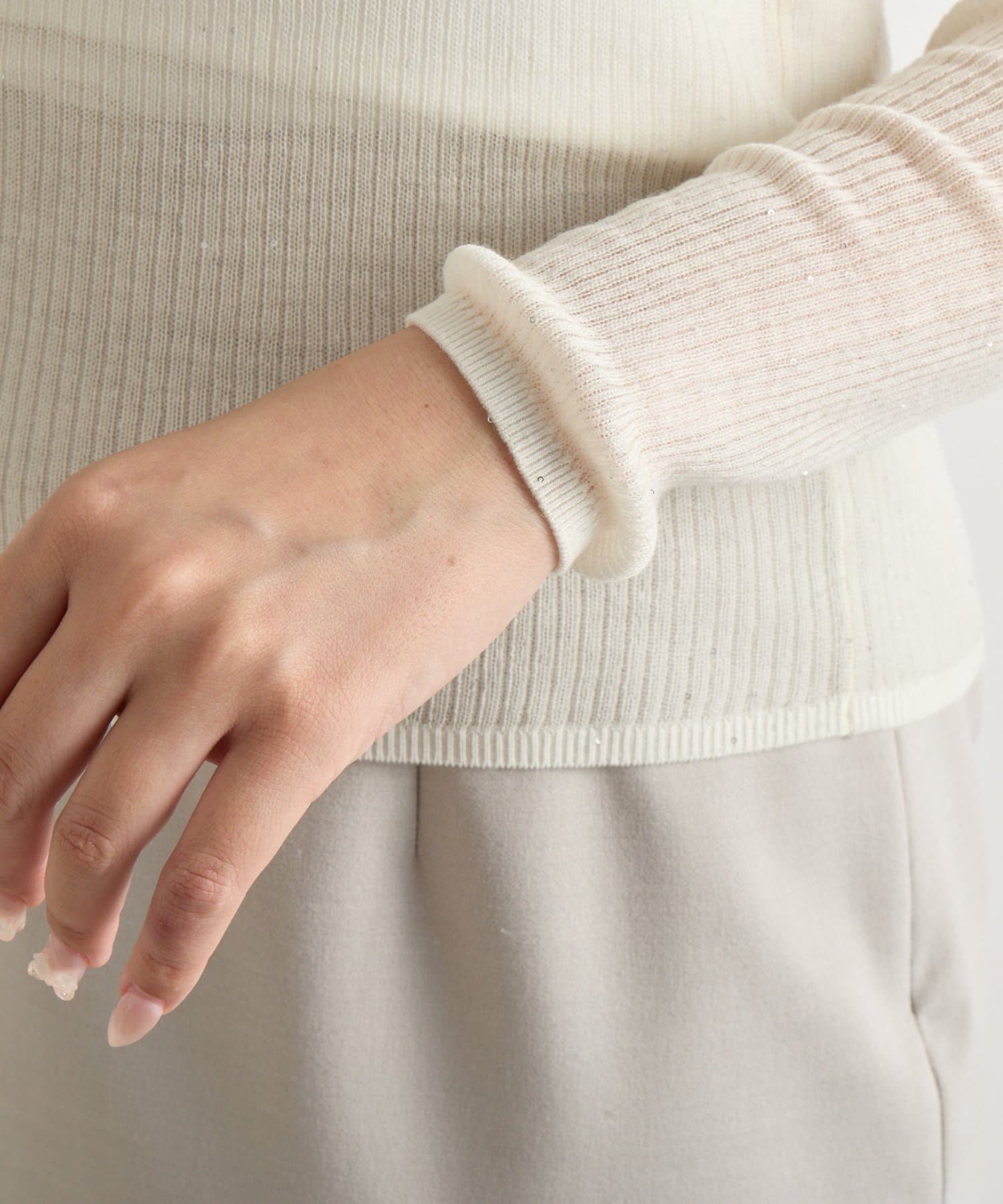 繊細なスパンコールが上品にきらめく、大人の女性のためのリブニットトップス。