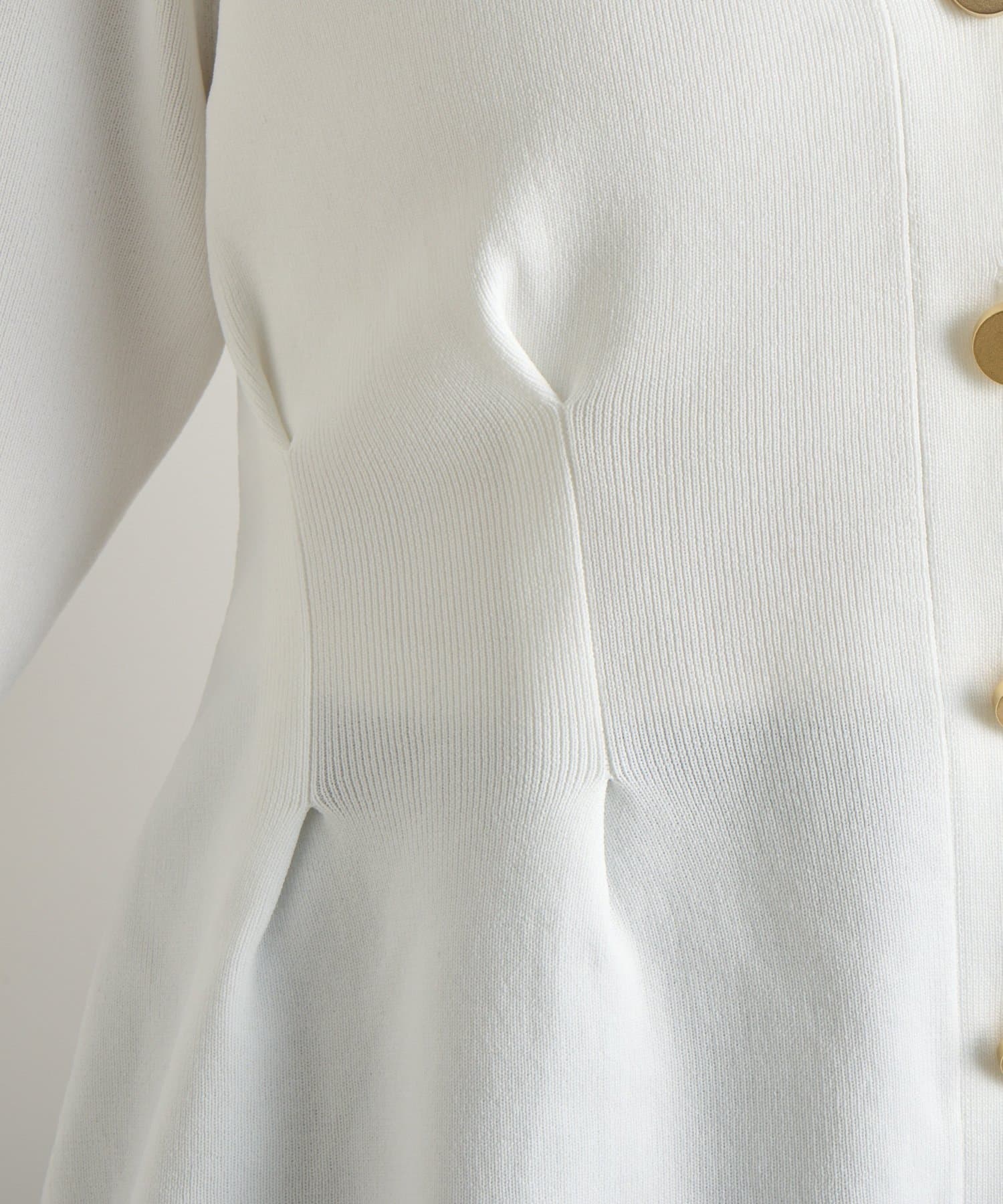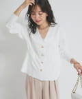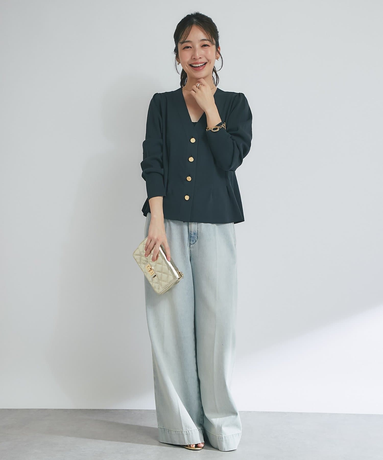ゴールドの釦がアクセントになり、コーデを上品にまとめてくれます。