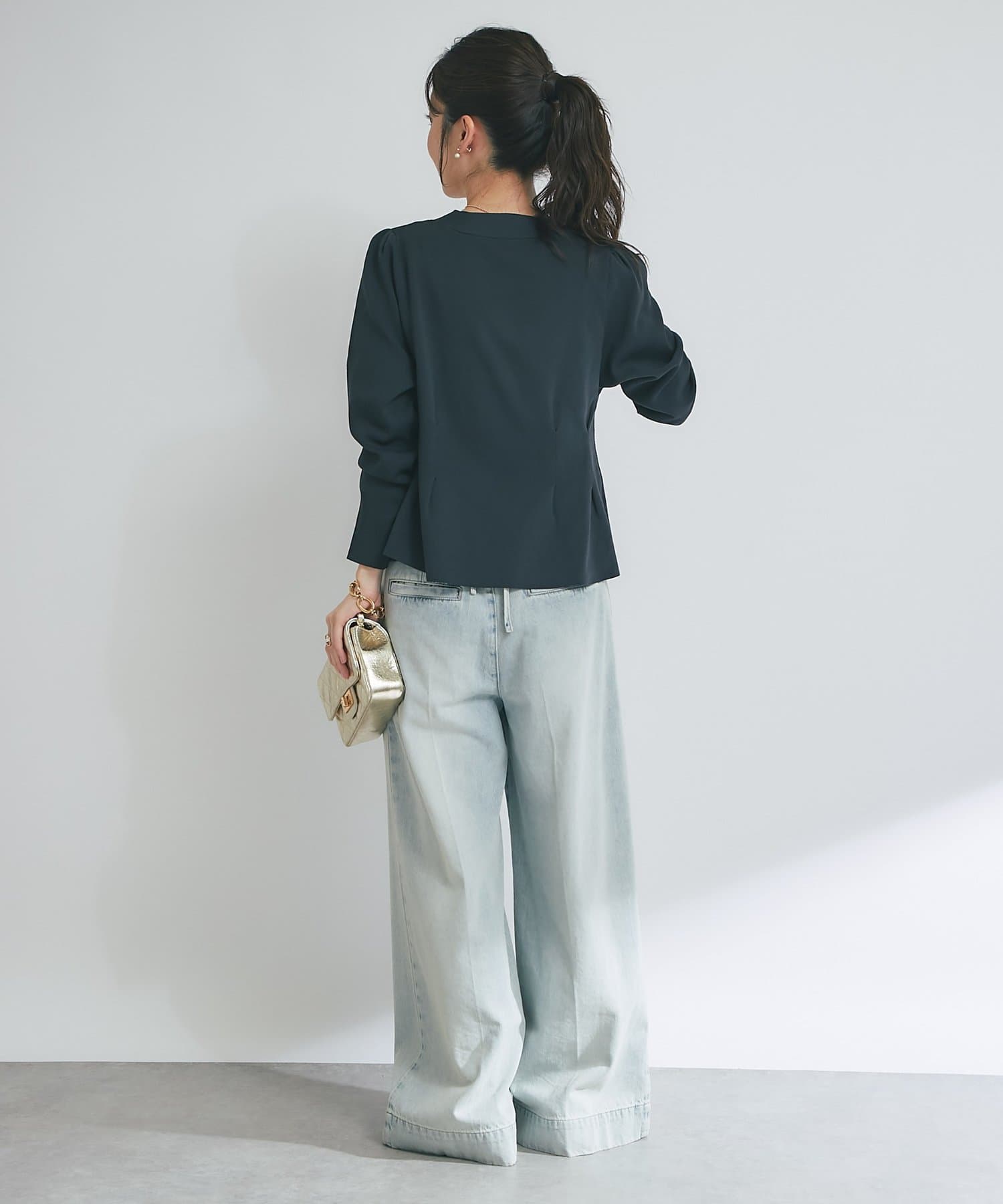 特徴的なシルエットなので、シンプルなボトムと合わせるだけでワンランク上のコーデに。