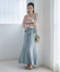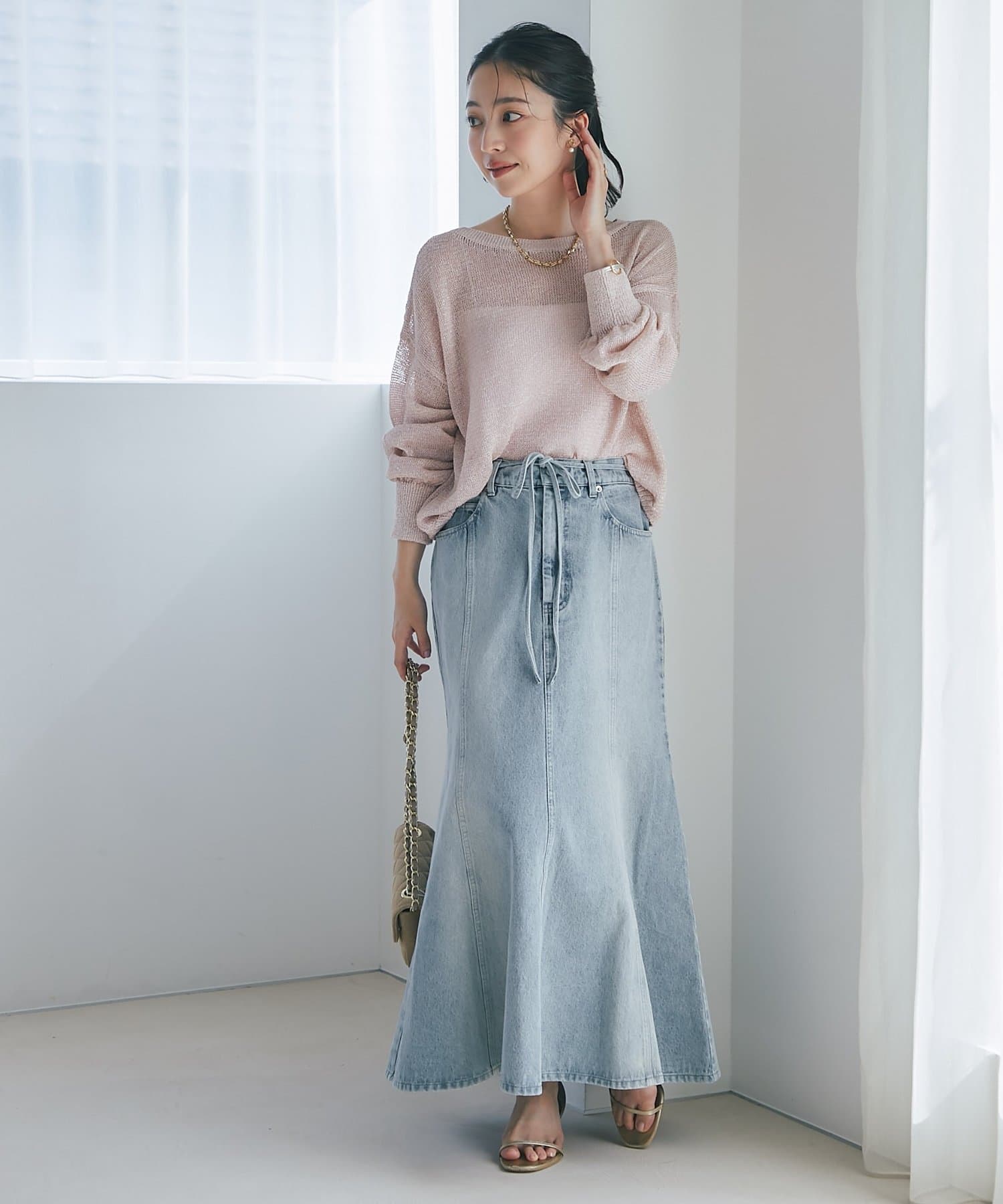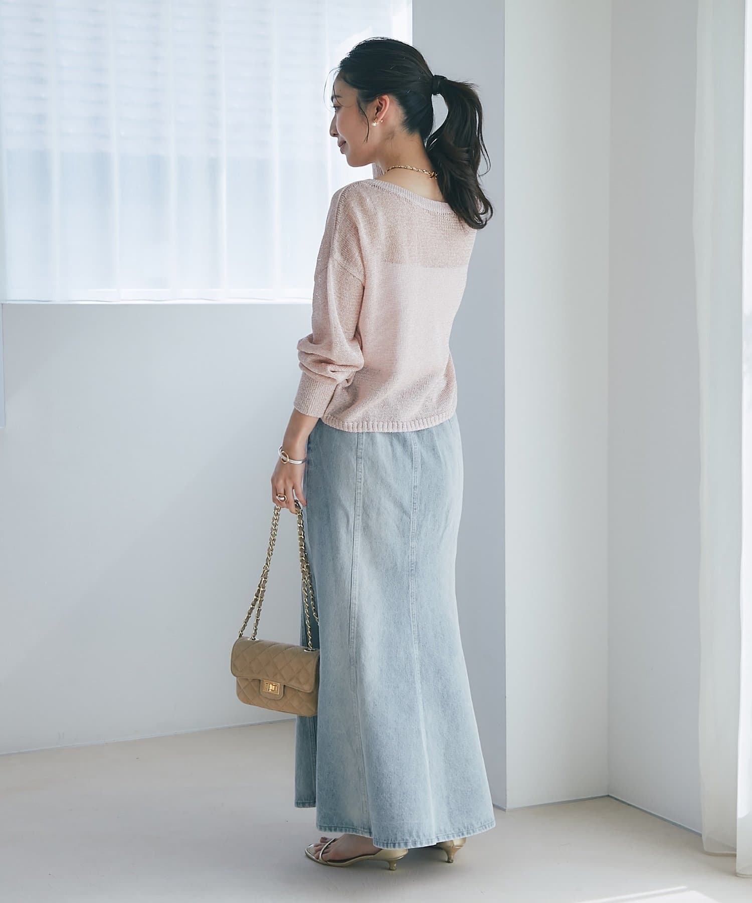 ゆるっとしたデザイン生かし、落ち感のあるスカートと合わせるのがおすすめ。