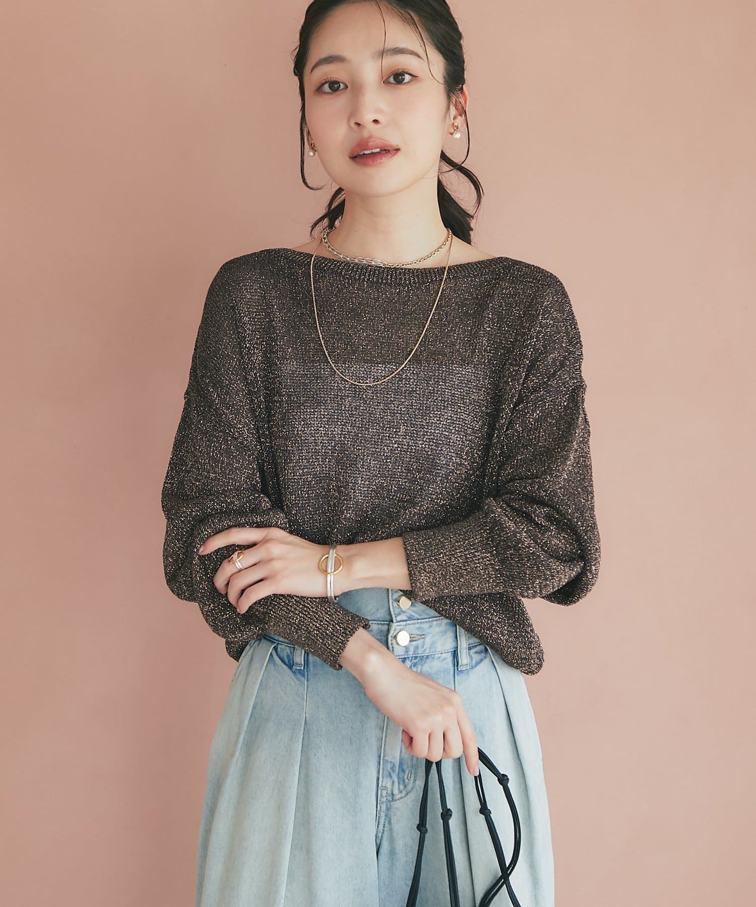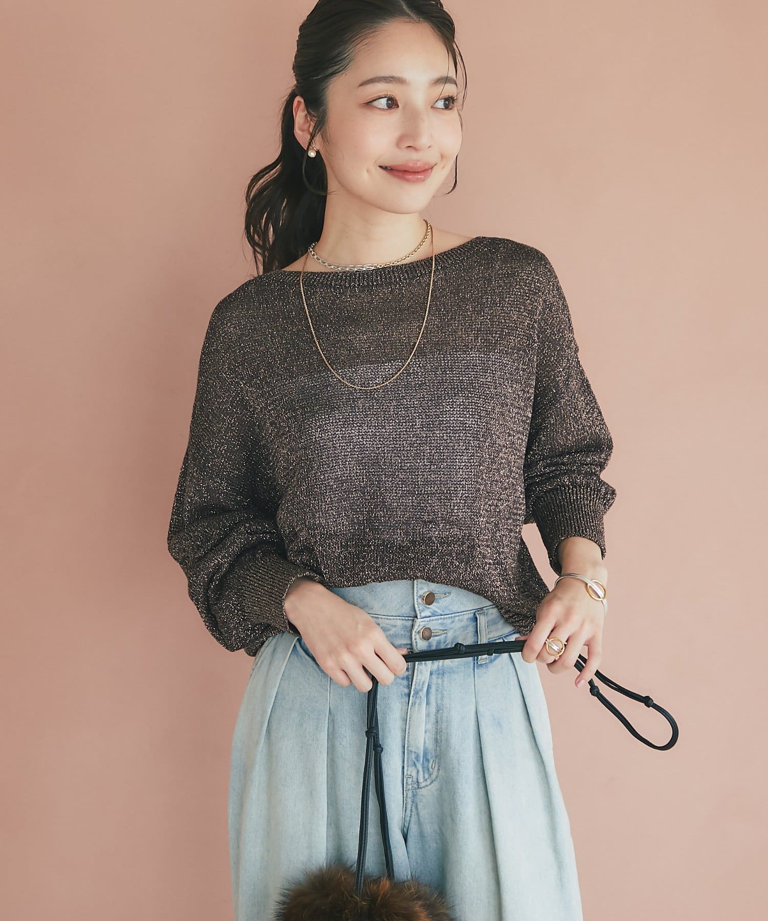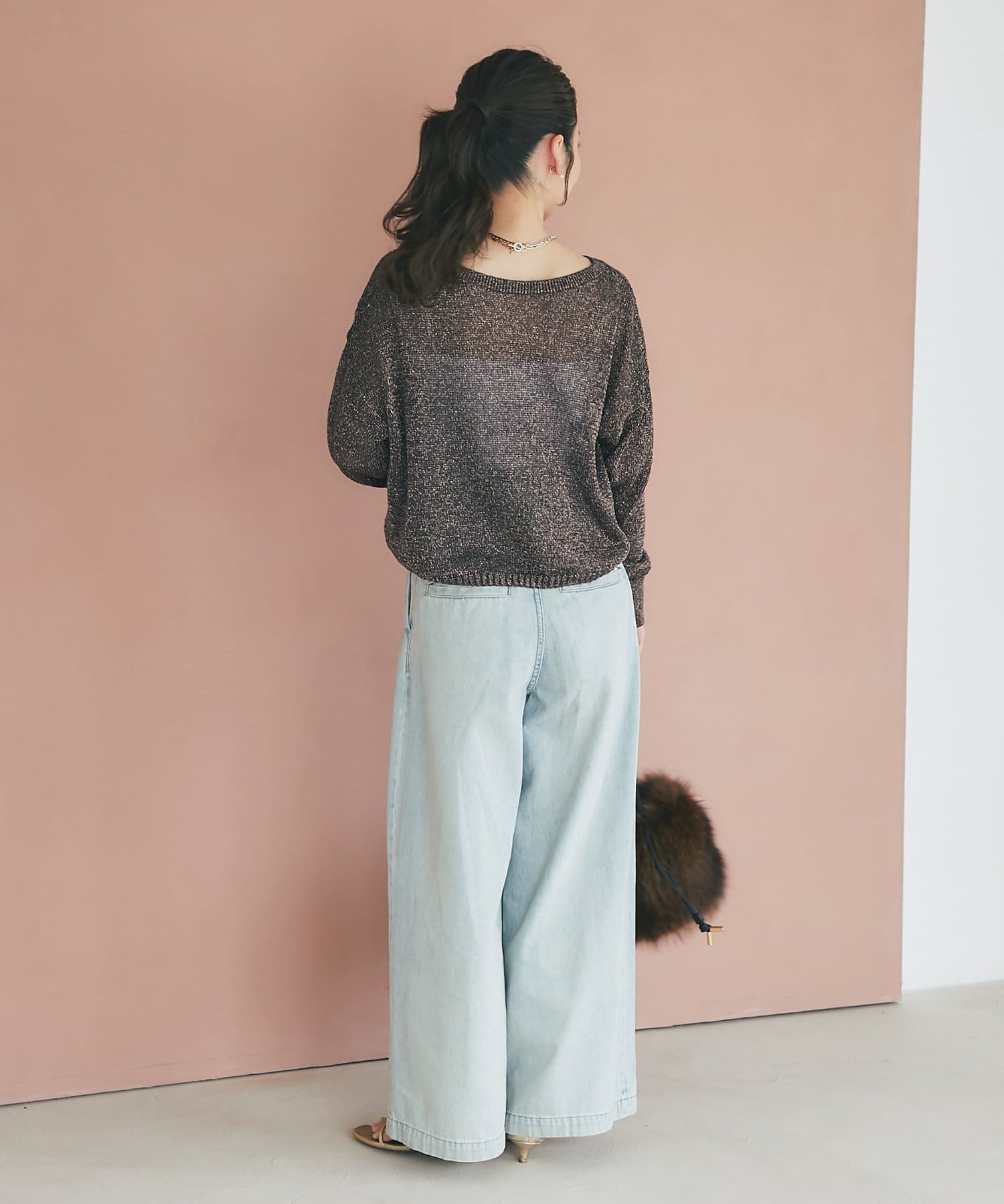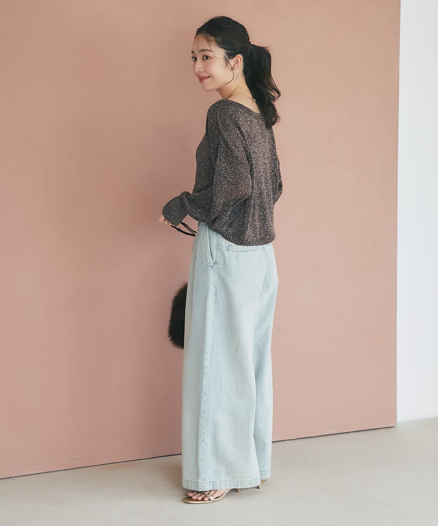 着るだけで華やかなラメニットなので、シンプルなボトムに合わせるだけでコーデが決まります。