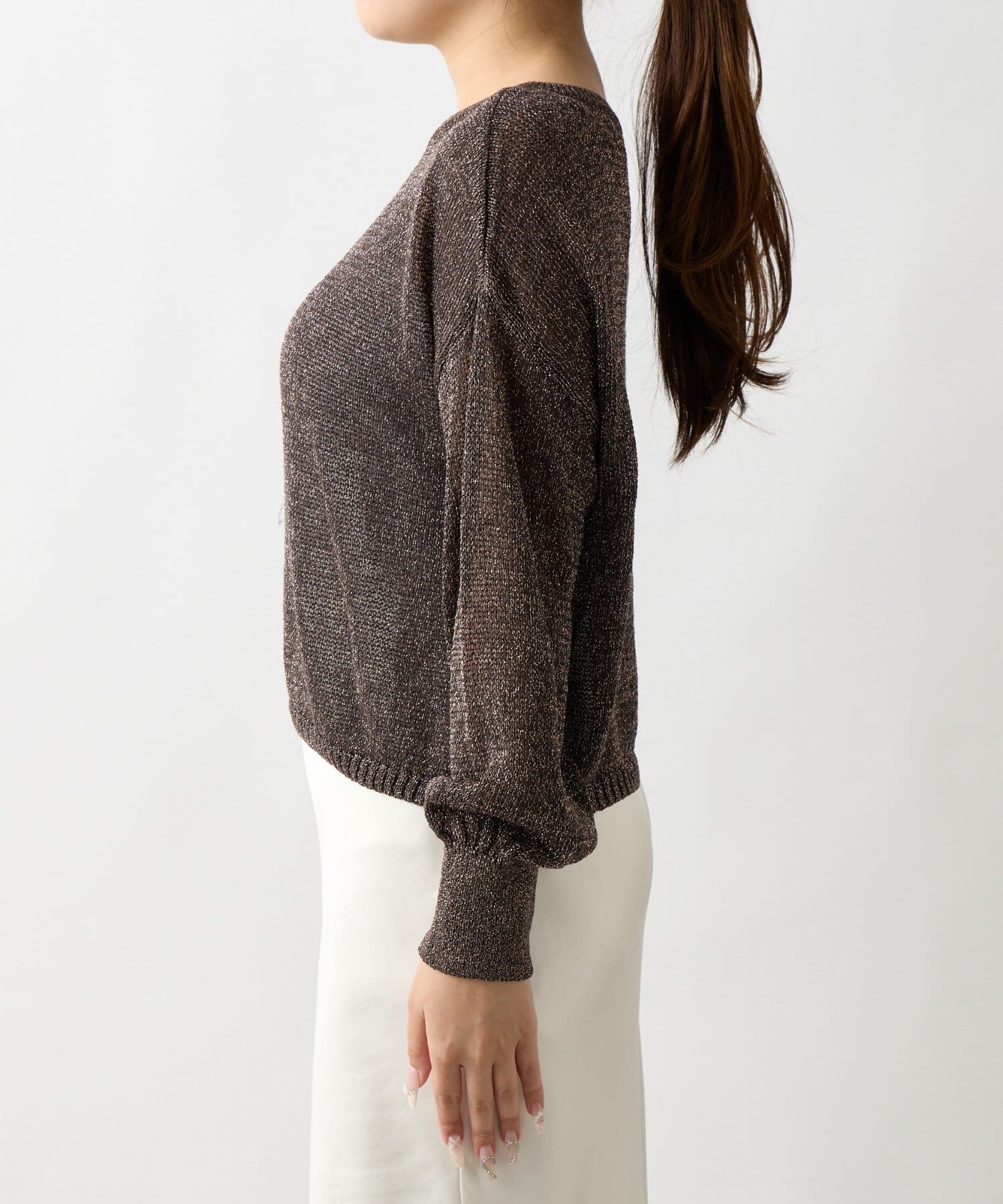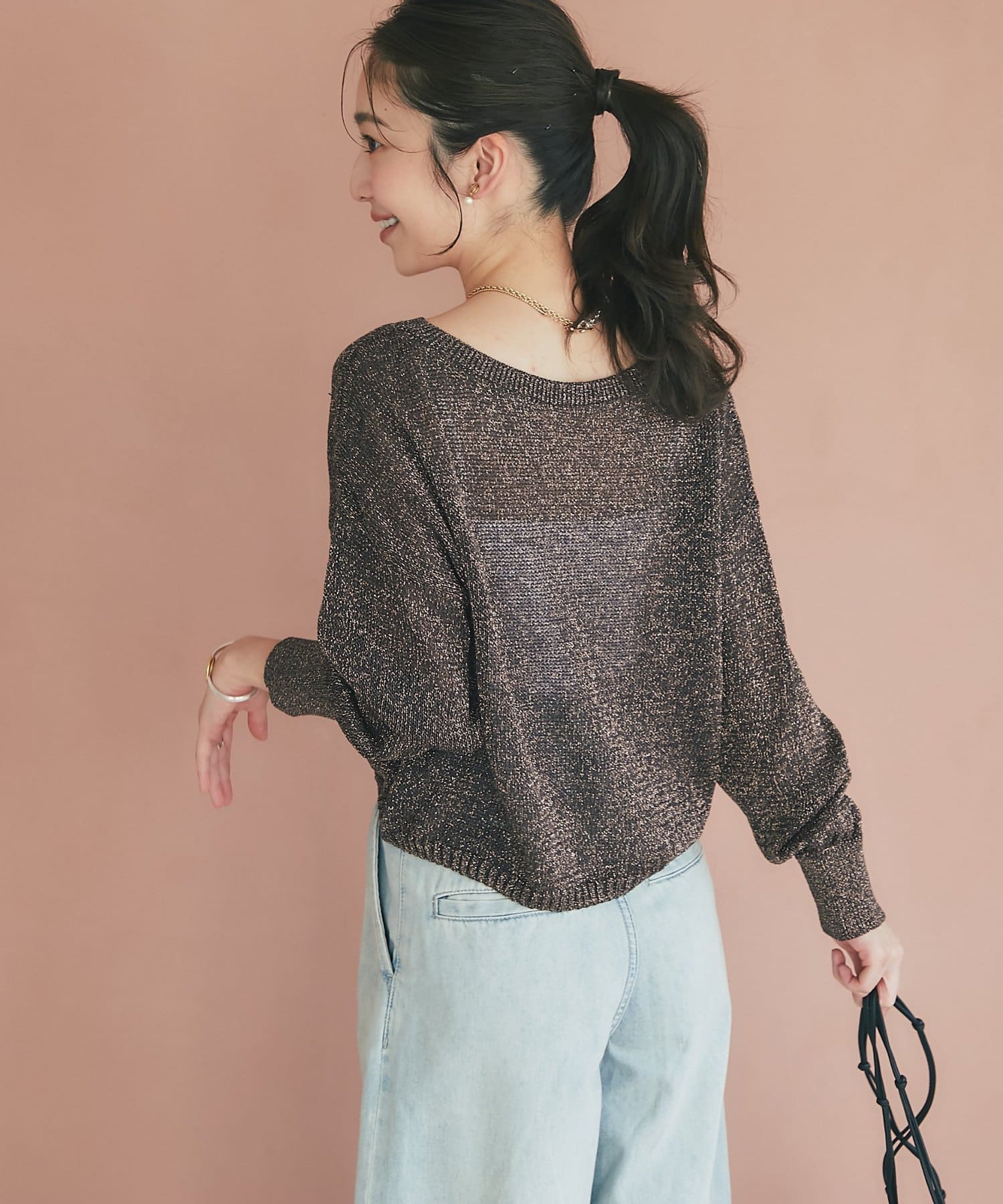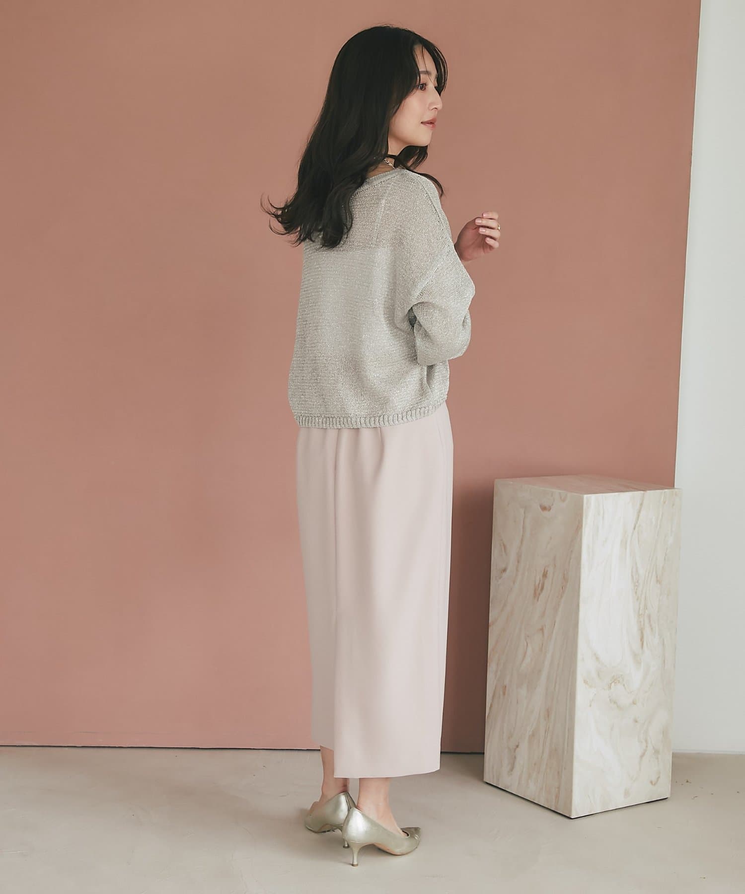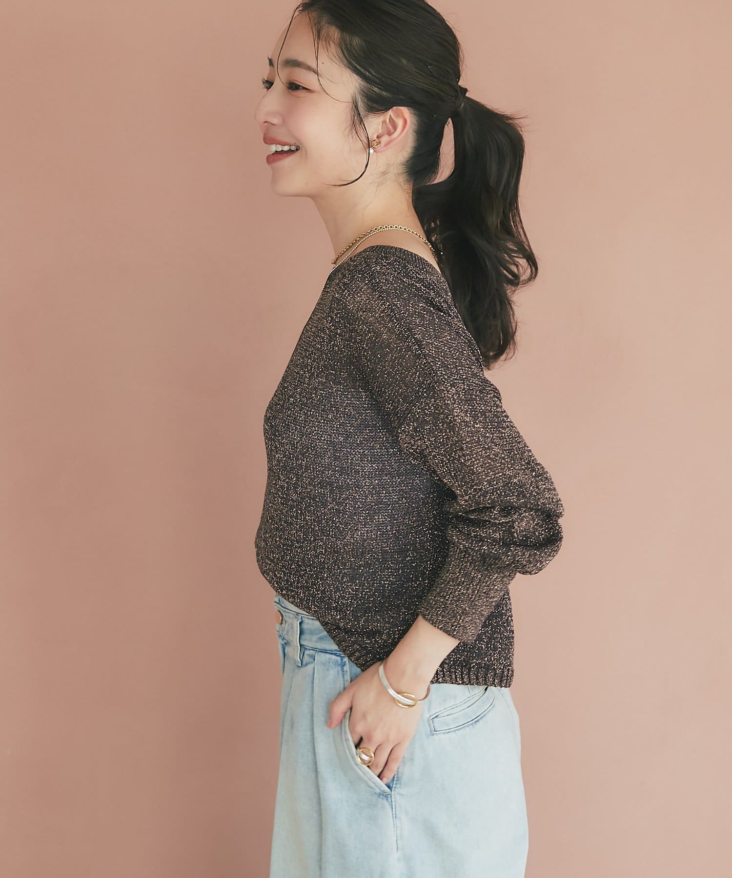 着るだけで華やかなラメニットなので、シンプルなボトムに合わせるだけでコーデが決まります。