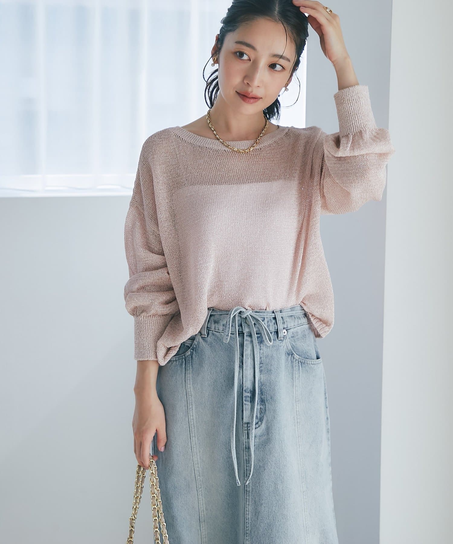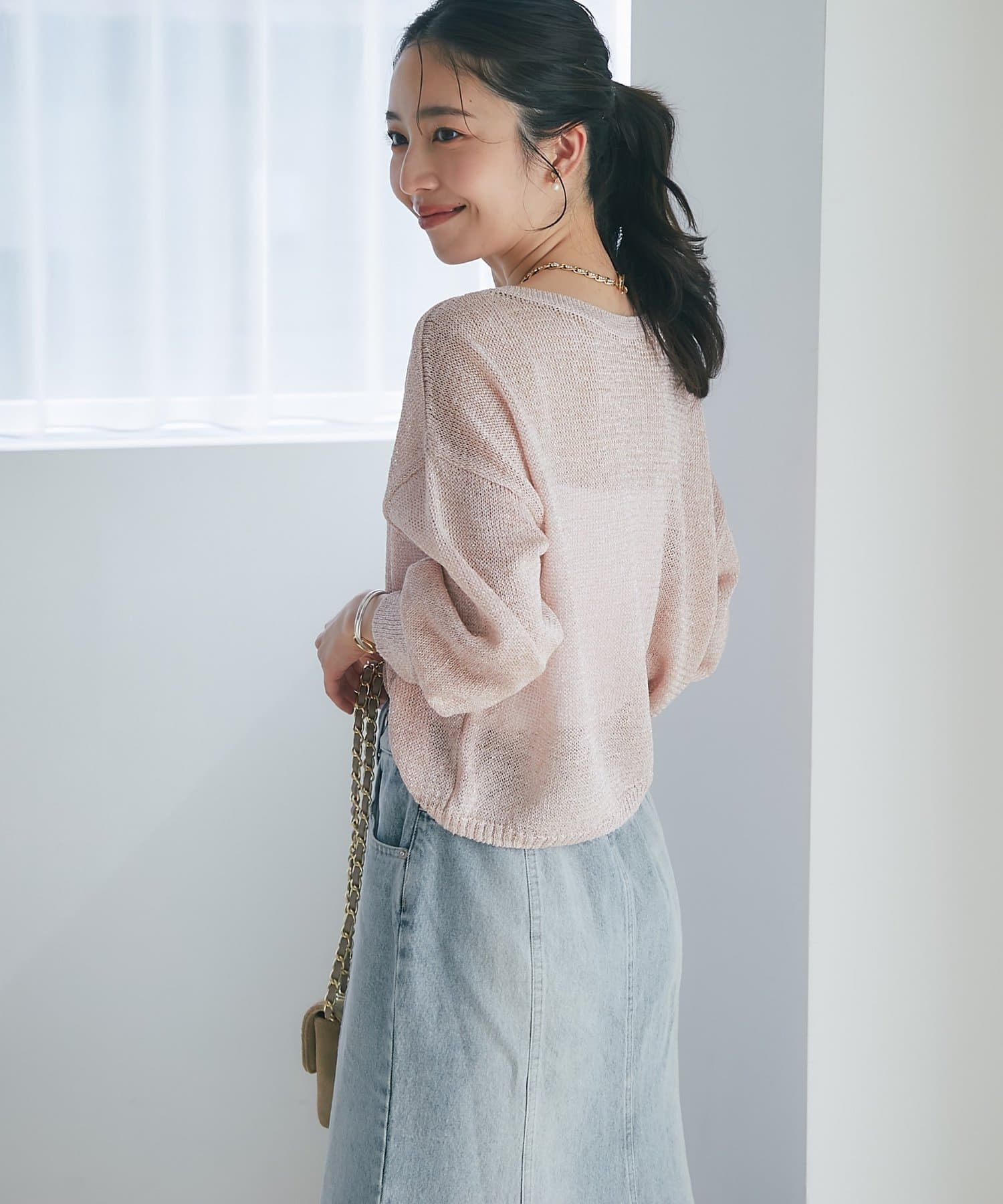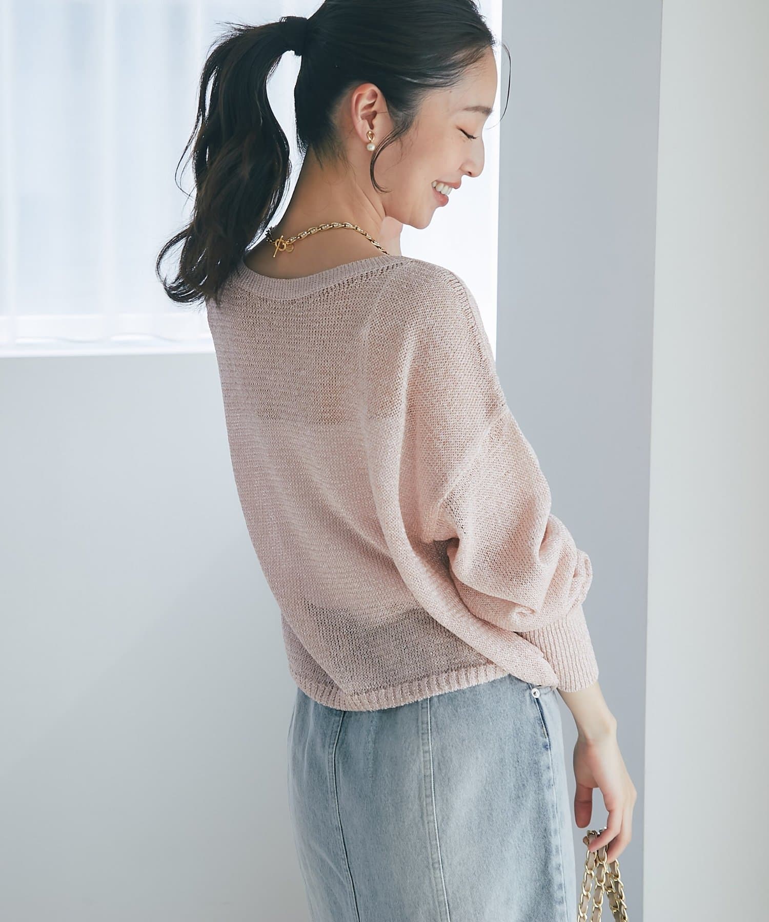 シアー素材で風通しもよく今すぐ取り入れられるニットです。