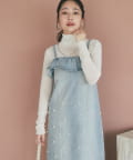 • OUTLET(アウトレット) 【La boutique BonBon】パール付きデニムキャミワンピース