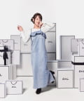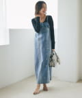 華やかな印象を演出するデニムキャミワンピース。