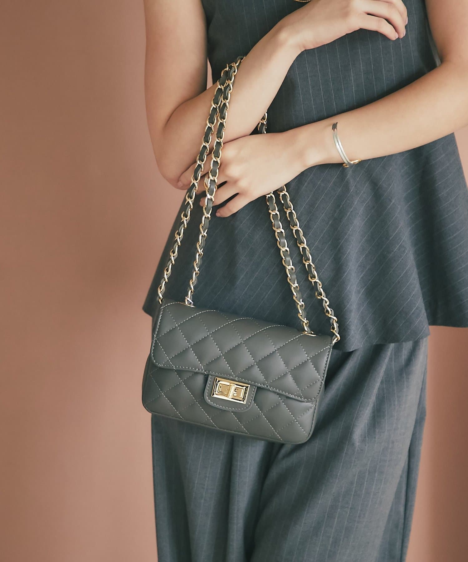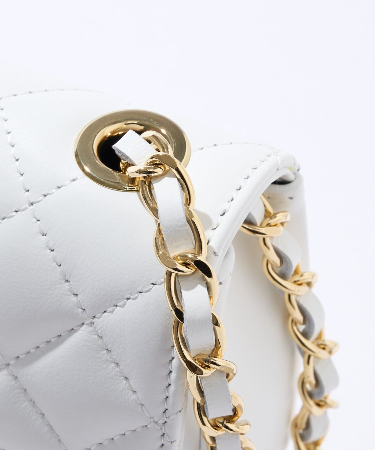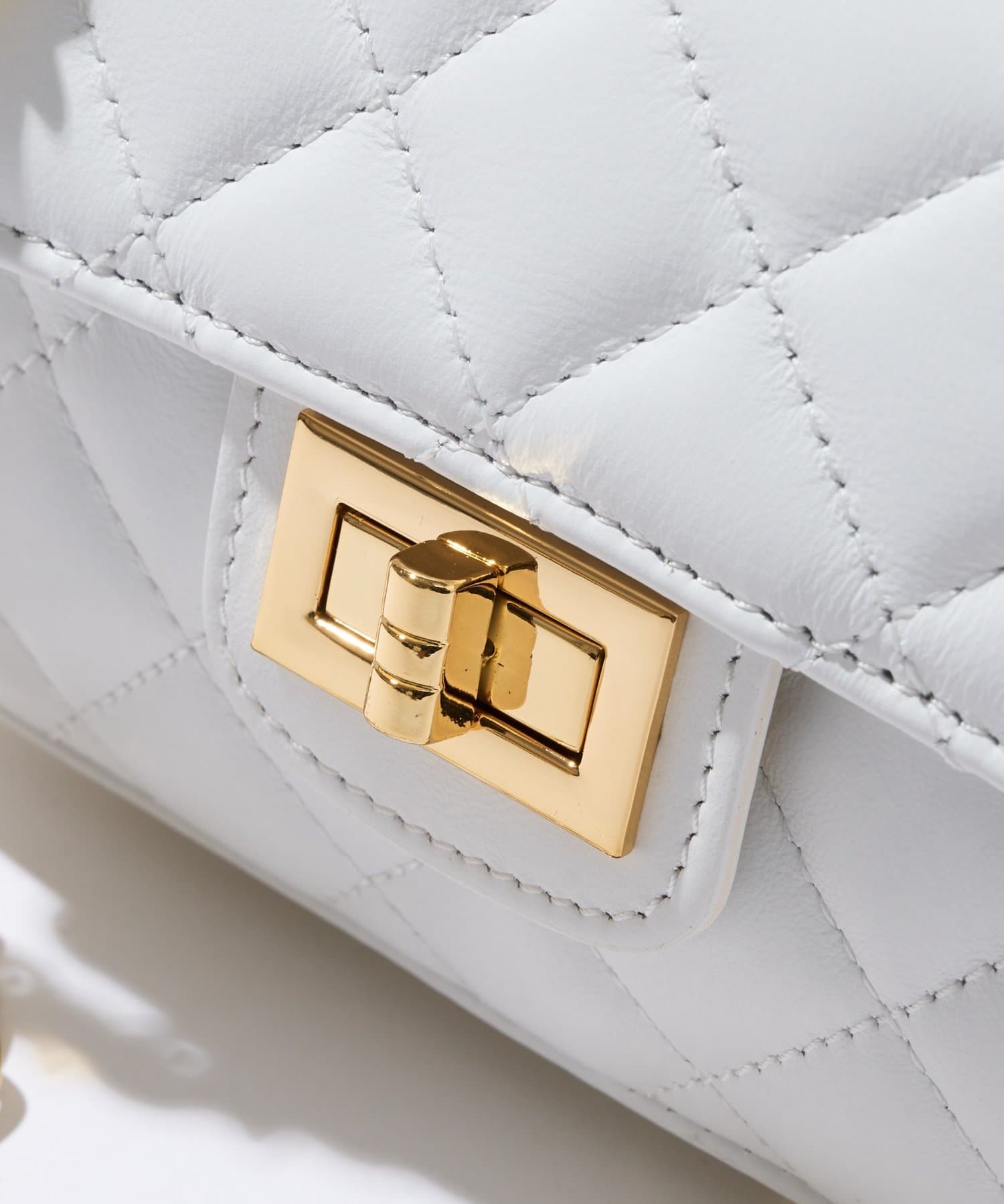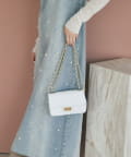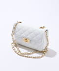 大きめステッチと金具使いがエレガントな雰囲気のキルティングチェーンバッグ。