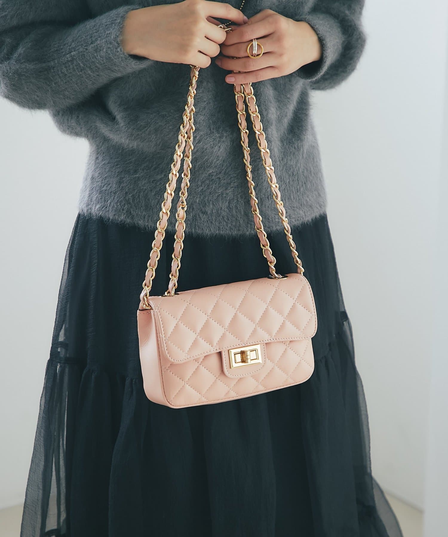 【オウレンティ】マットタッチキルティングチェーンバッグ