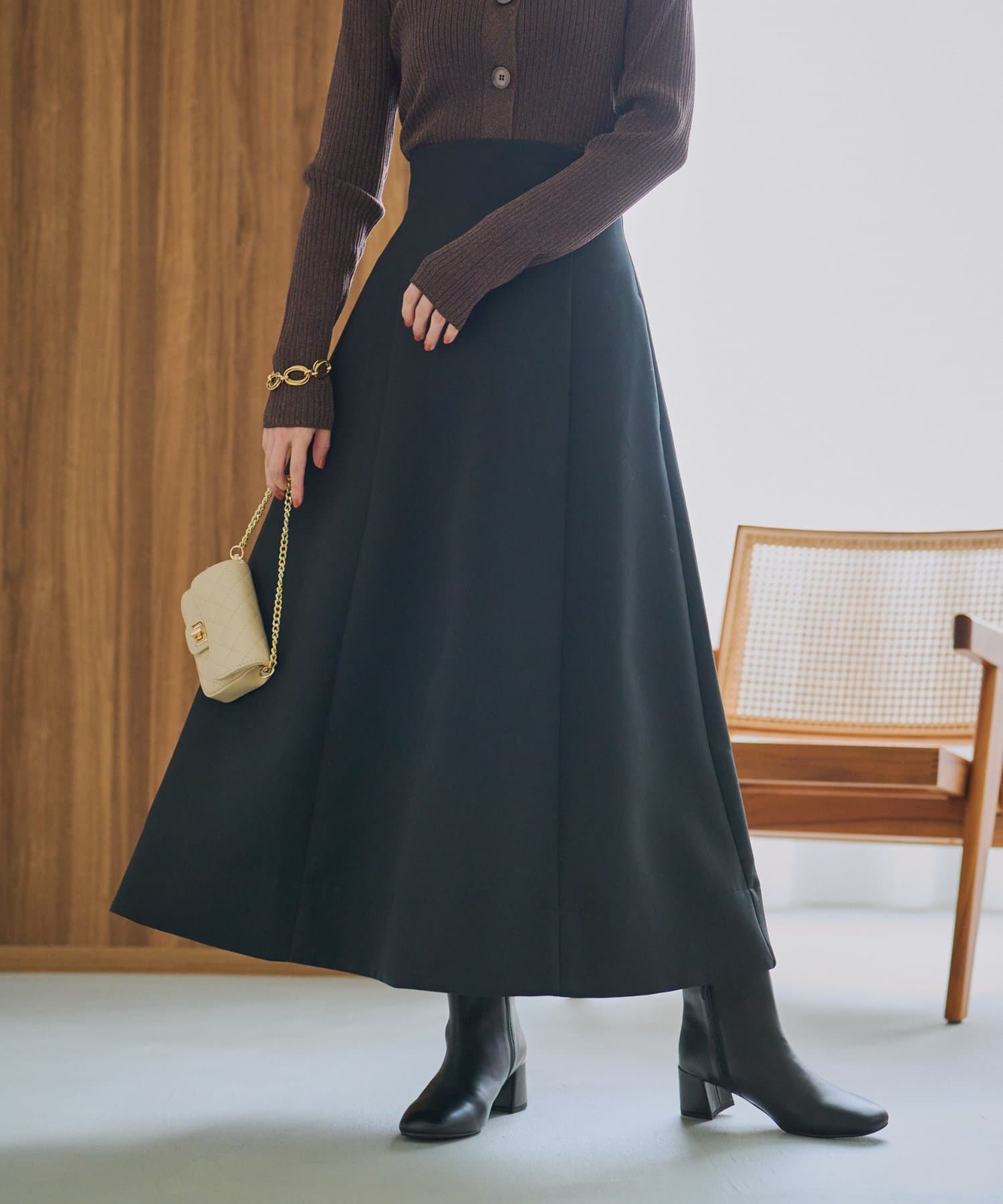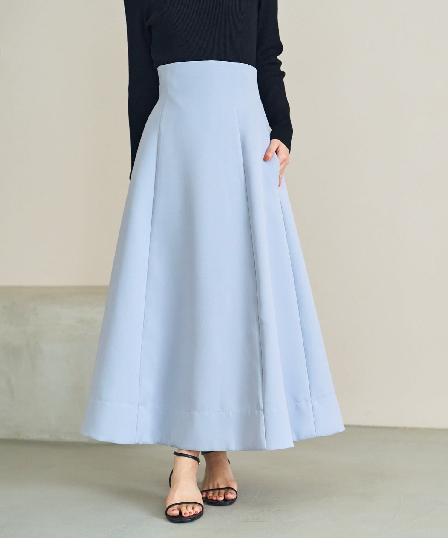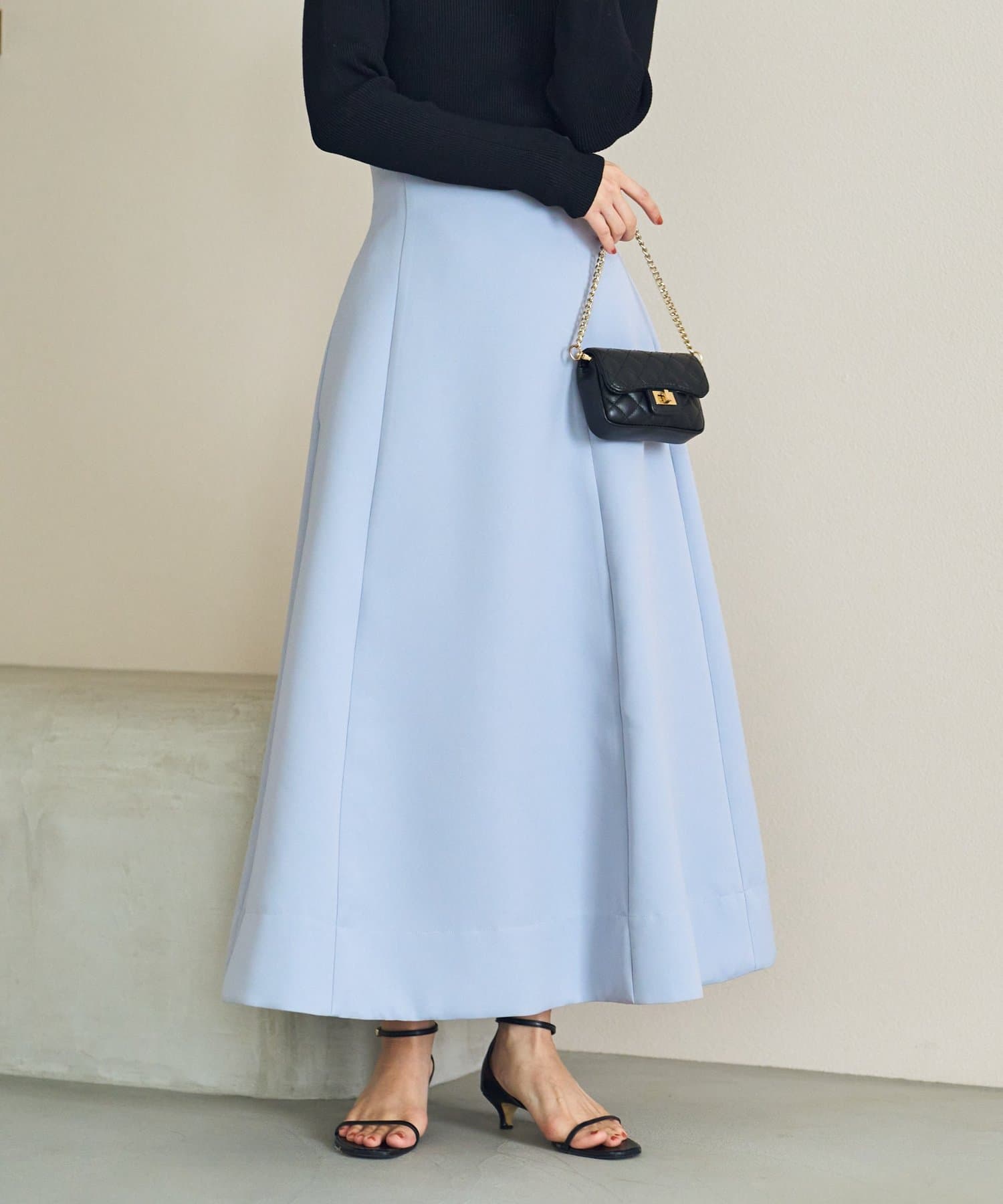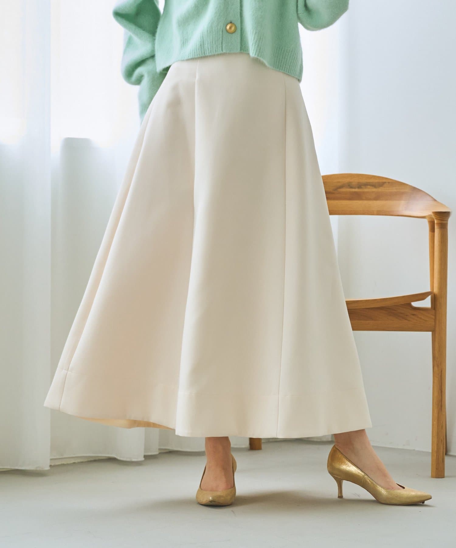 程よいボリューム感とたっぷりのフレアが贅沢なロングスカート。