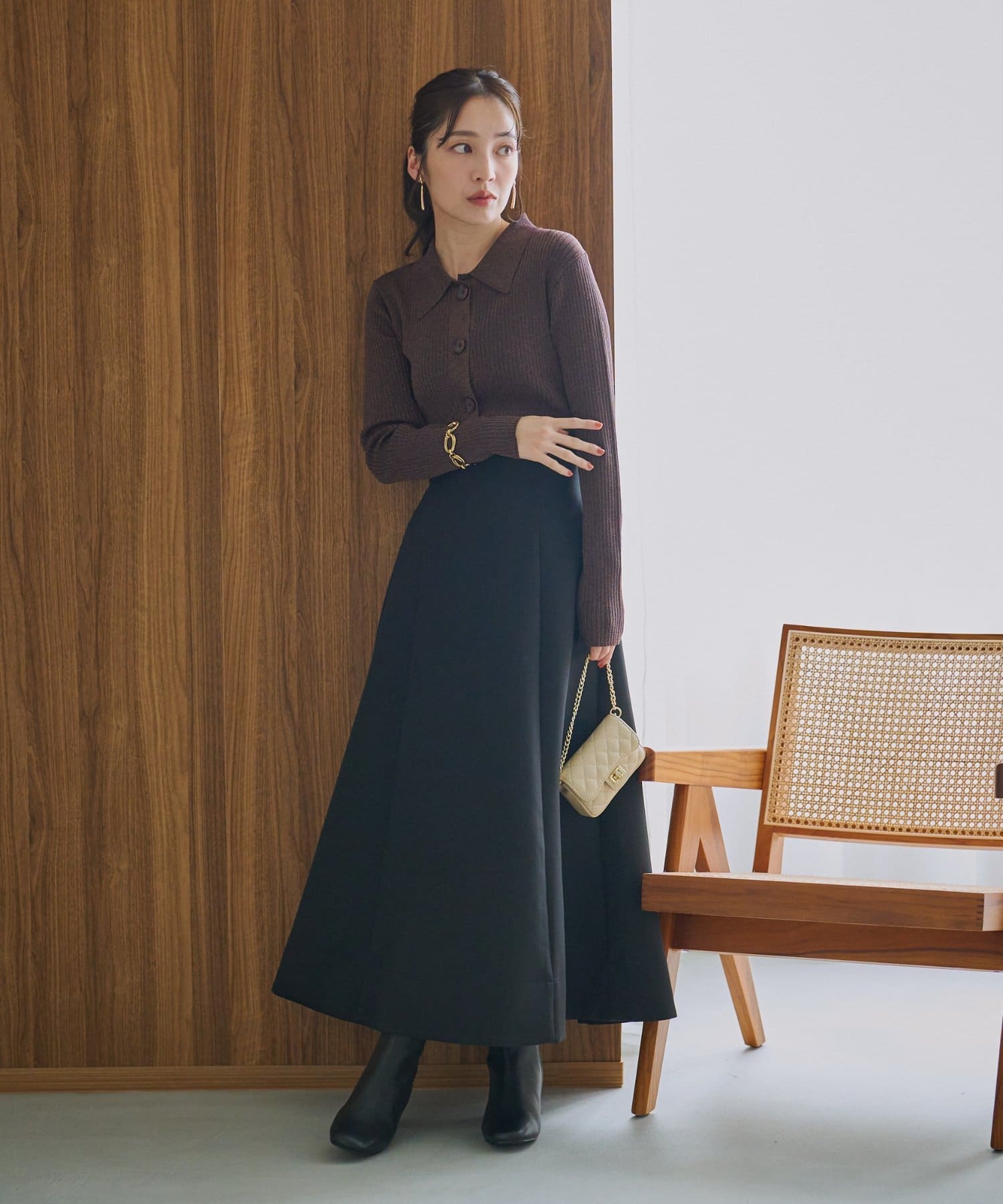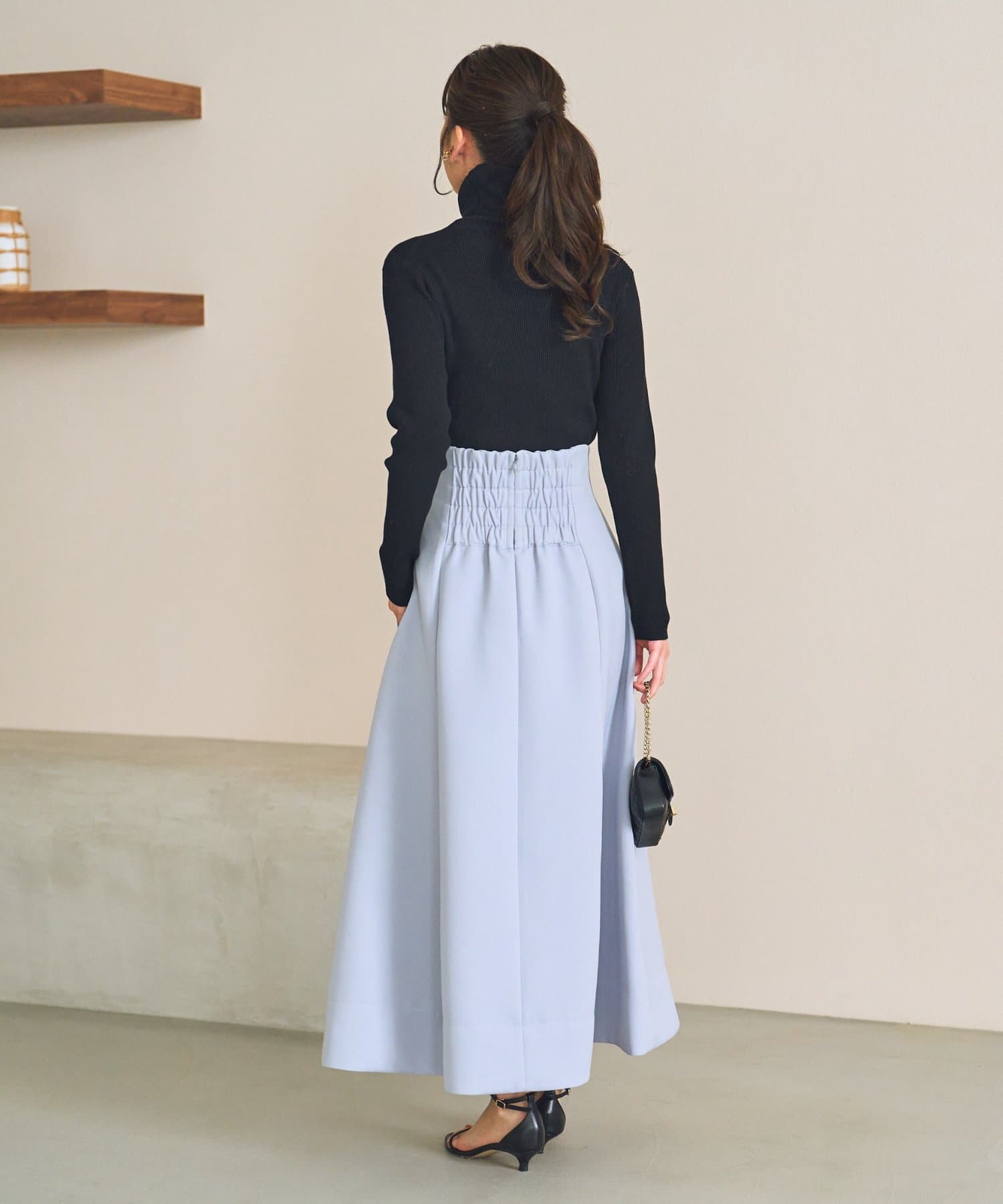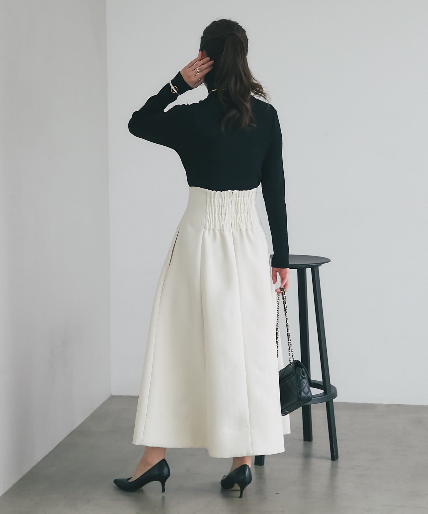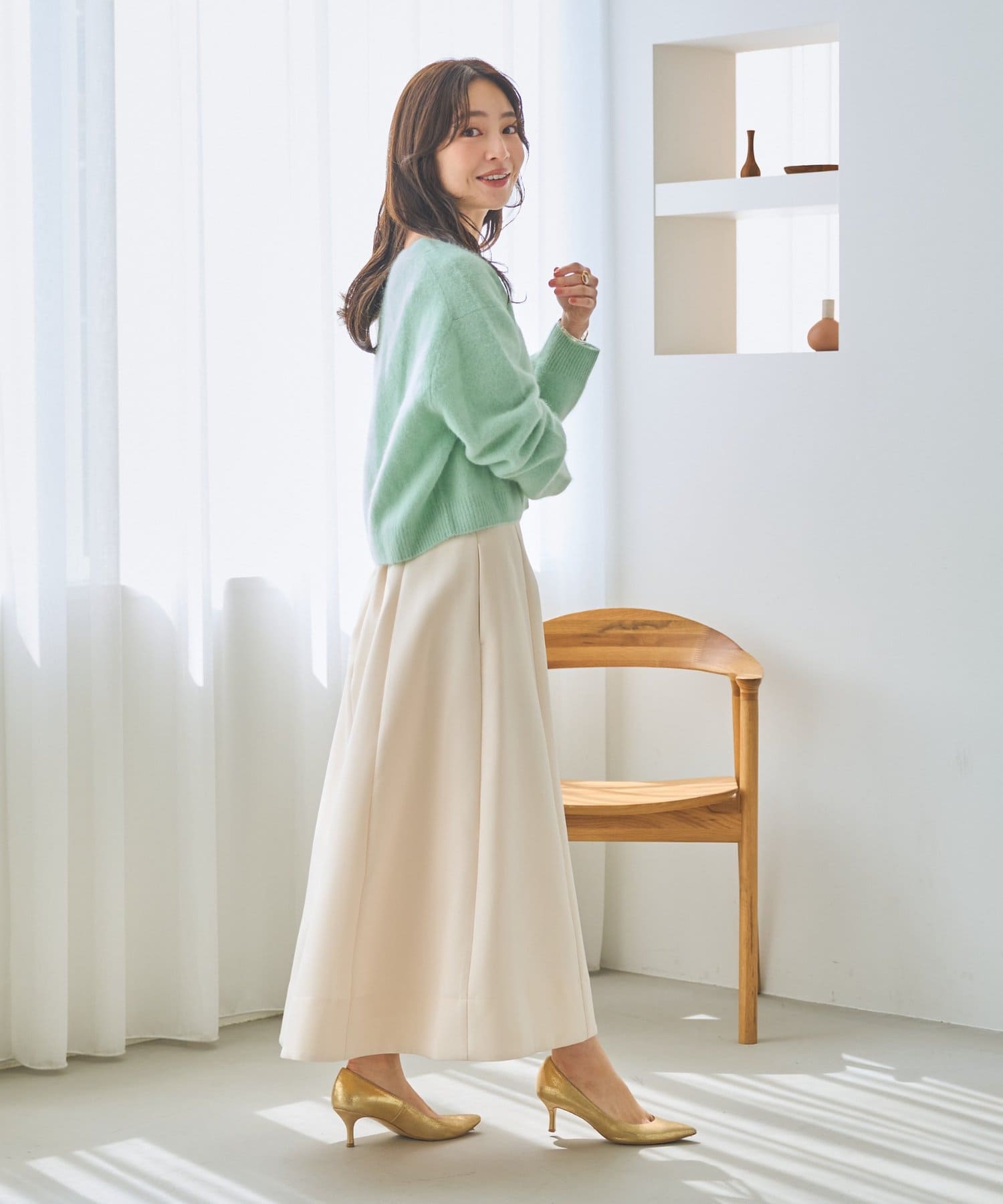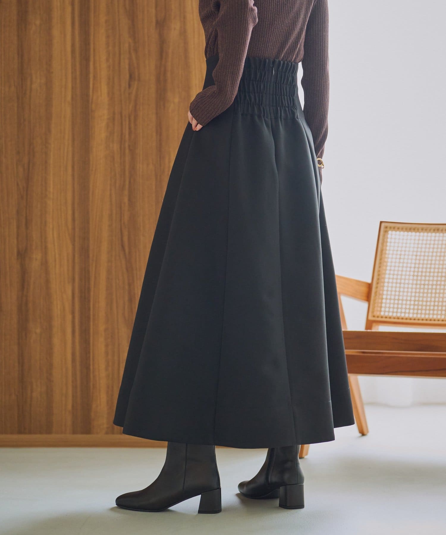程よいボリューム感とたっぷりのフレアが贅沢なロングスカート。