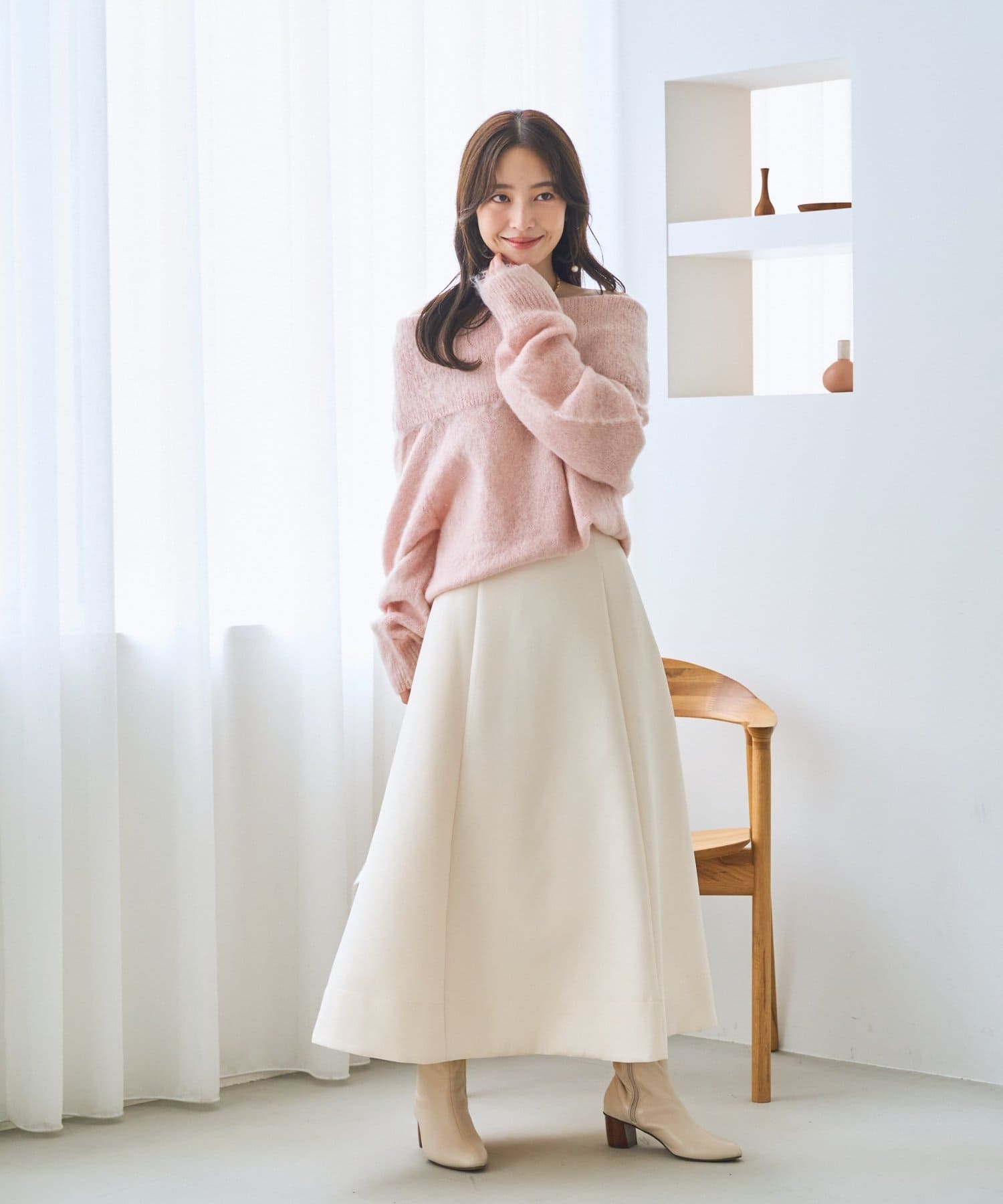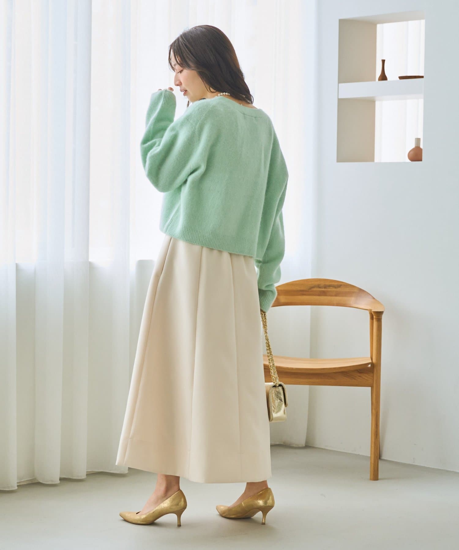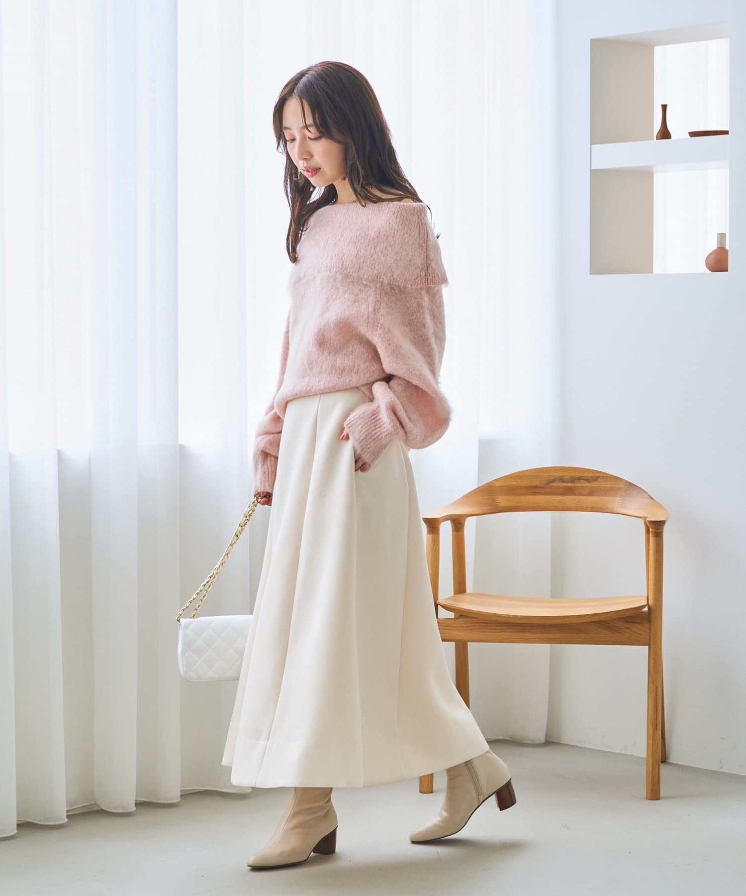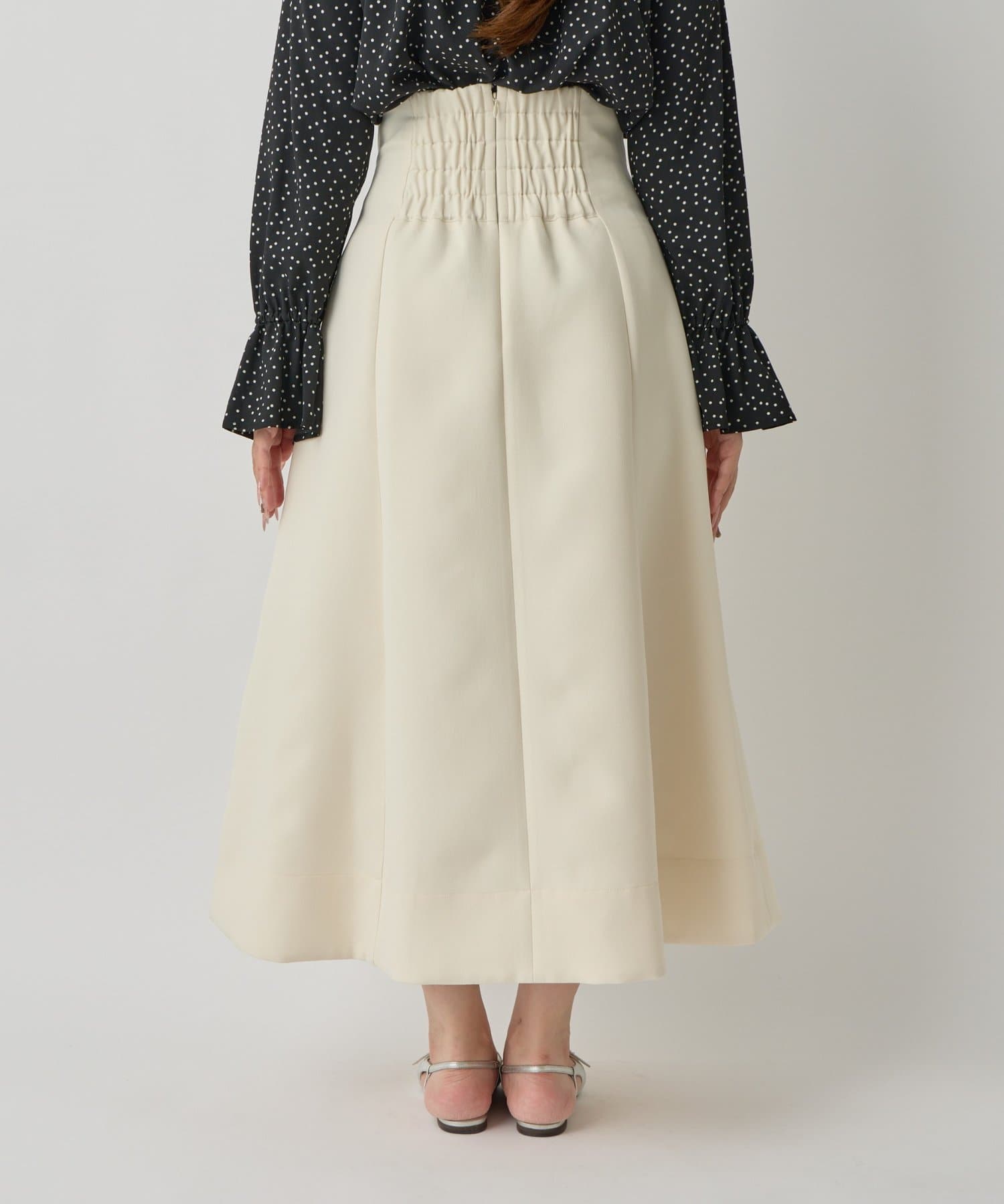 程よいボリューム感とたっぷりのフレアが贅沢なロングスカート。
