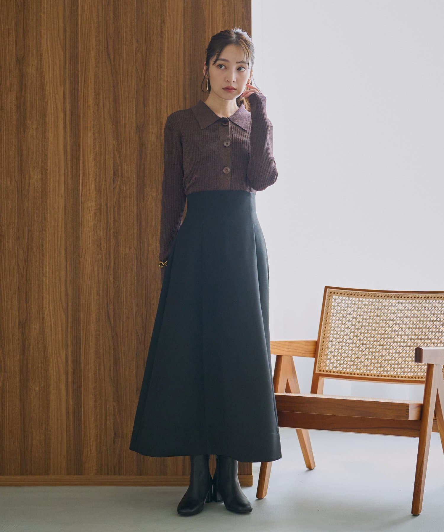【スタイルUP・美シルエット】ハイウエストフレアロングスカート