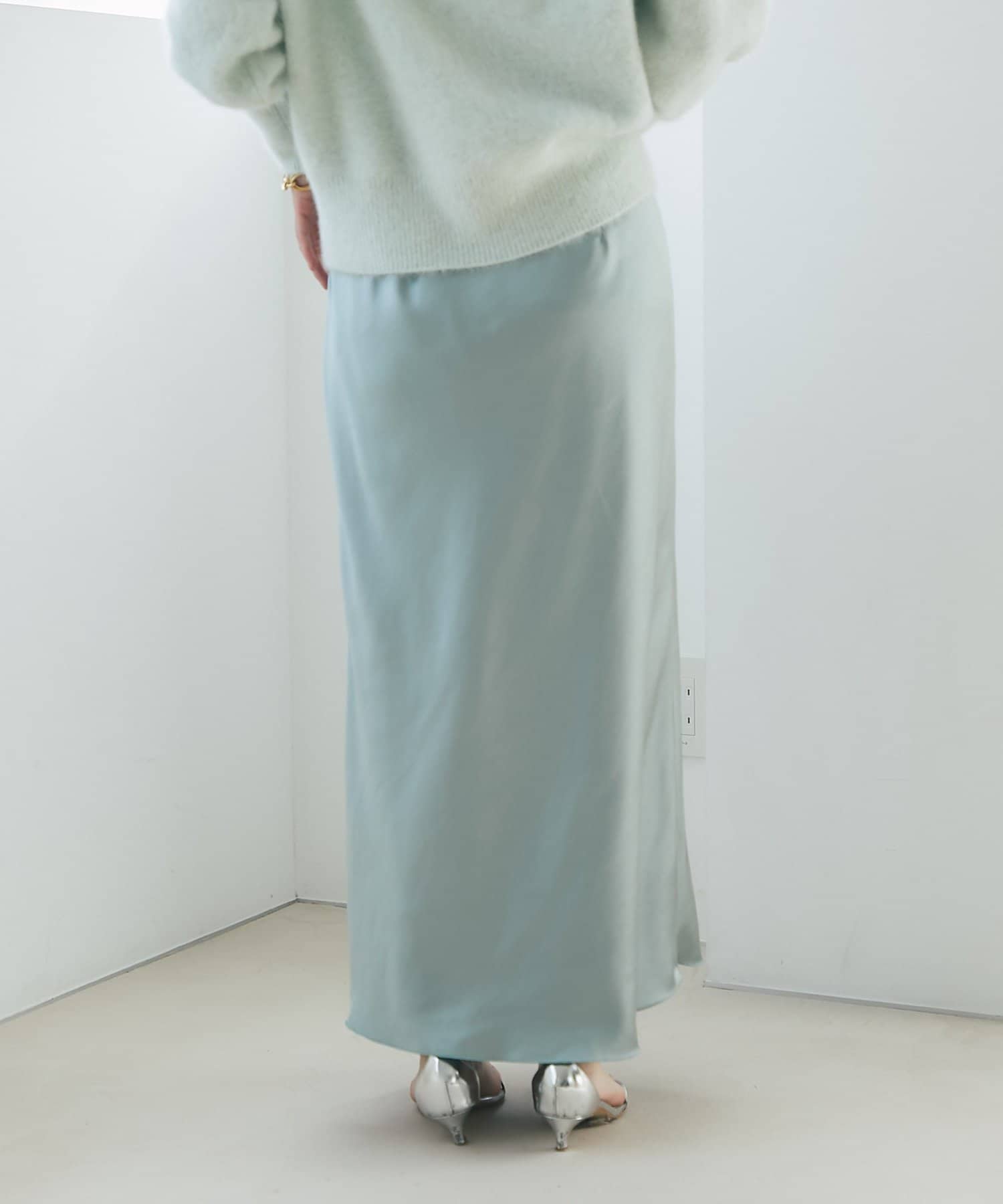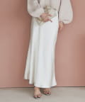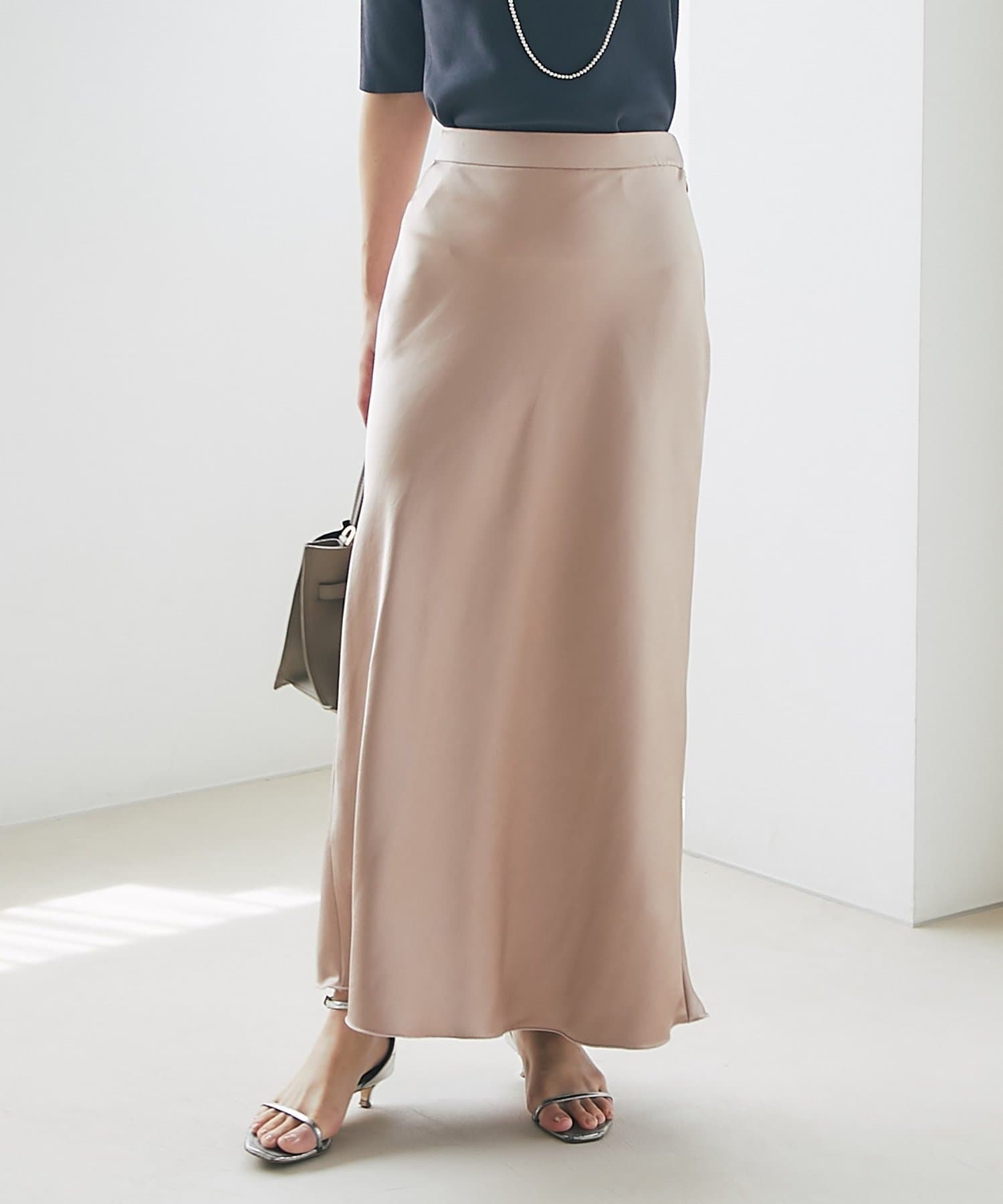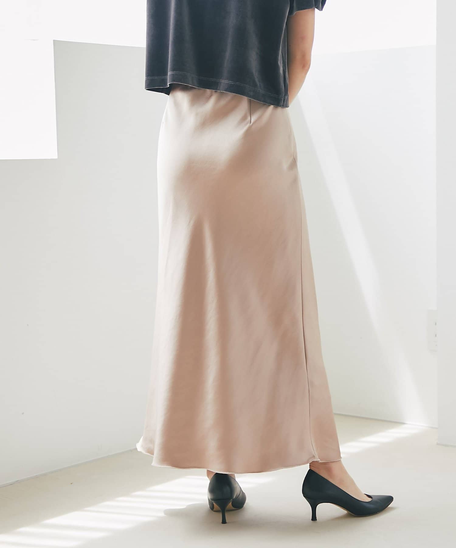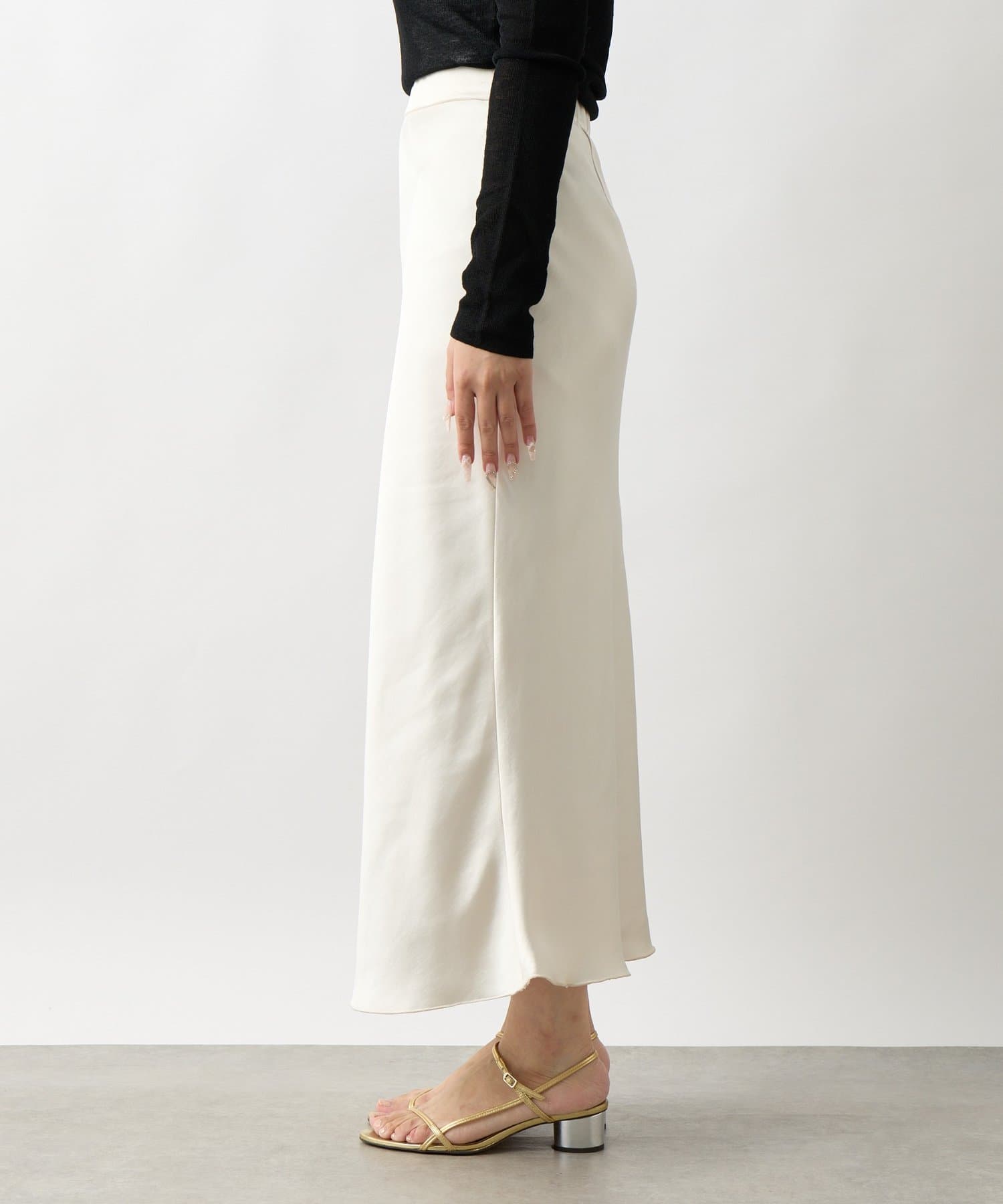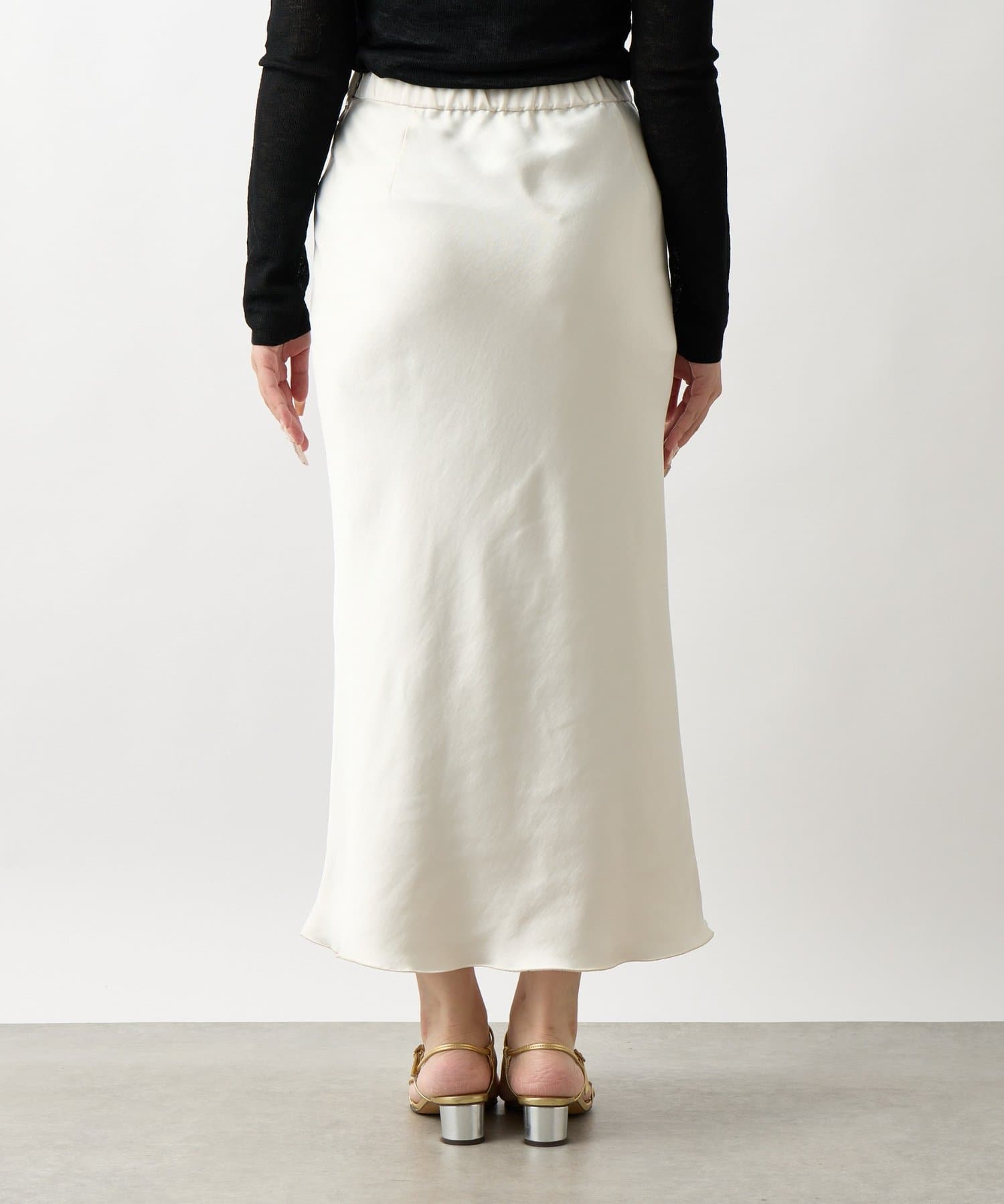 上品な光沢感とすっきりとしたしなやかなシルエットが魅力のサテンスカート。
