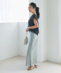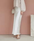 ウエストやヒップはすっきり見え、裾に向かって自然に広がるシルエットが女性らしさを引き立てます。