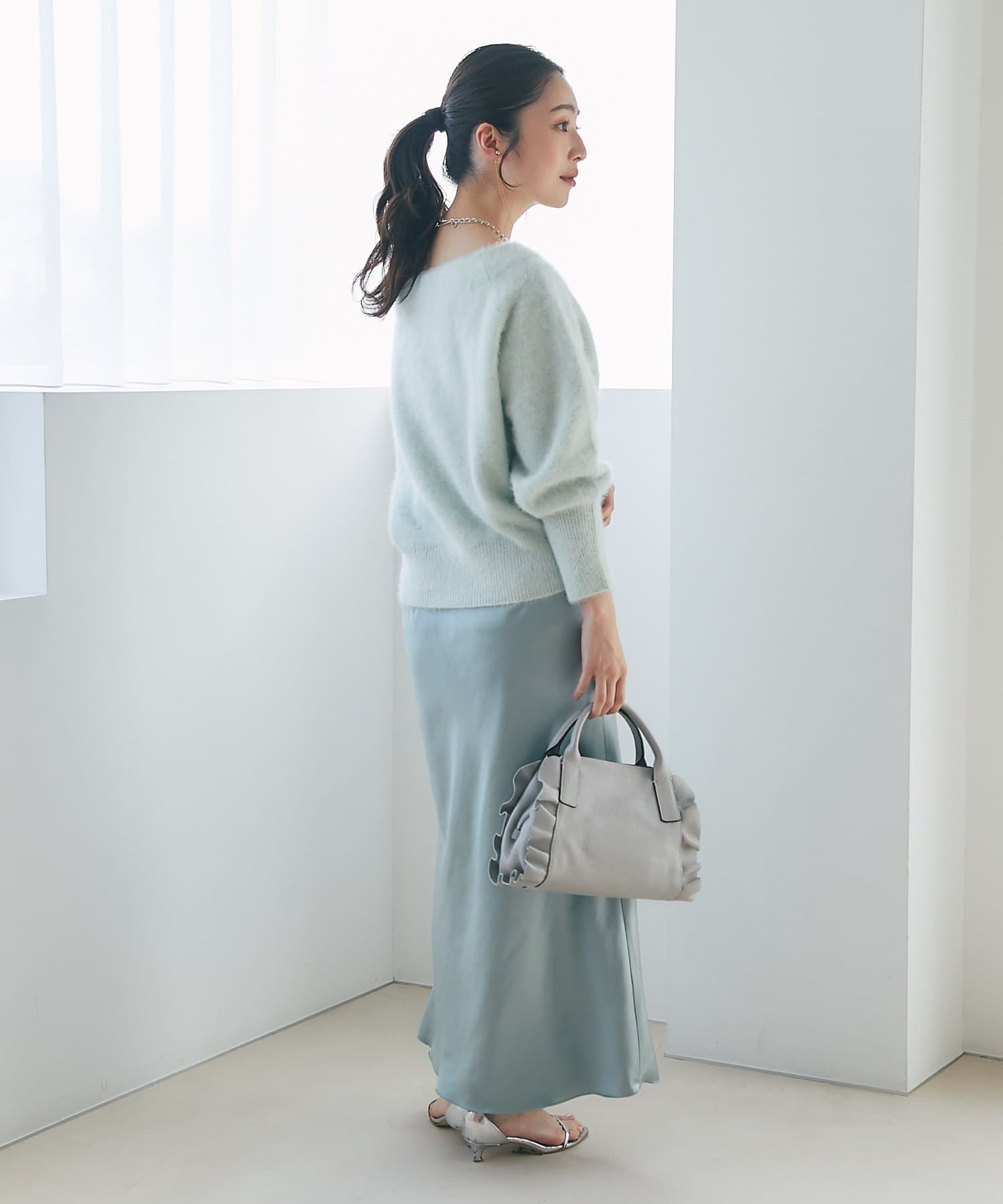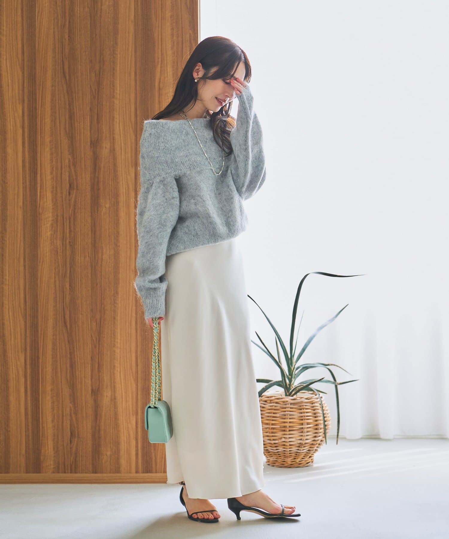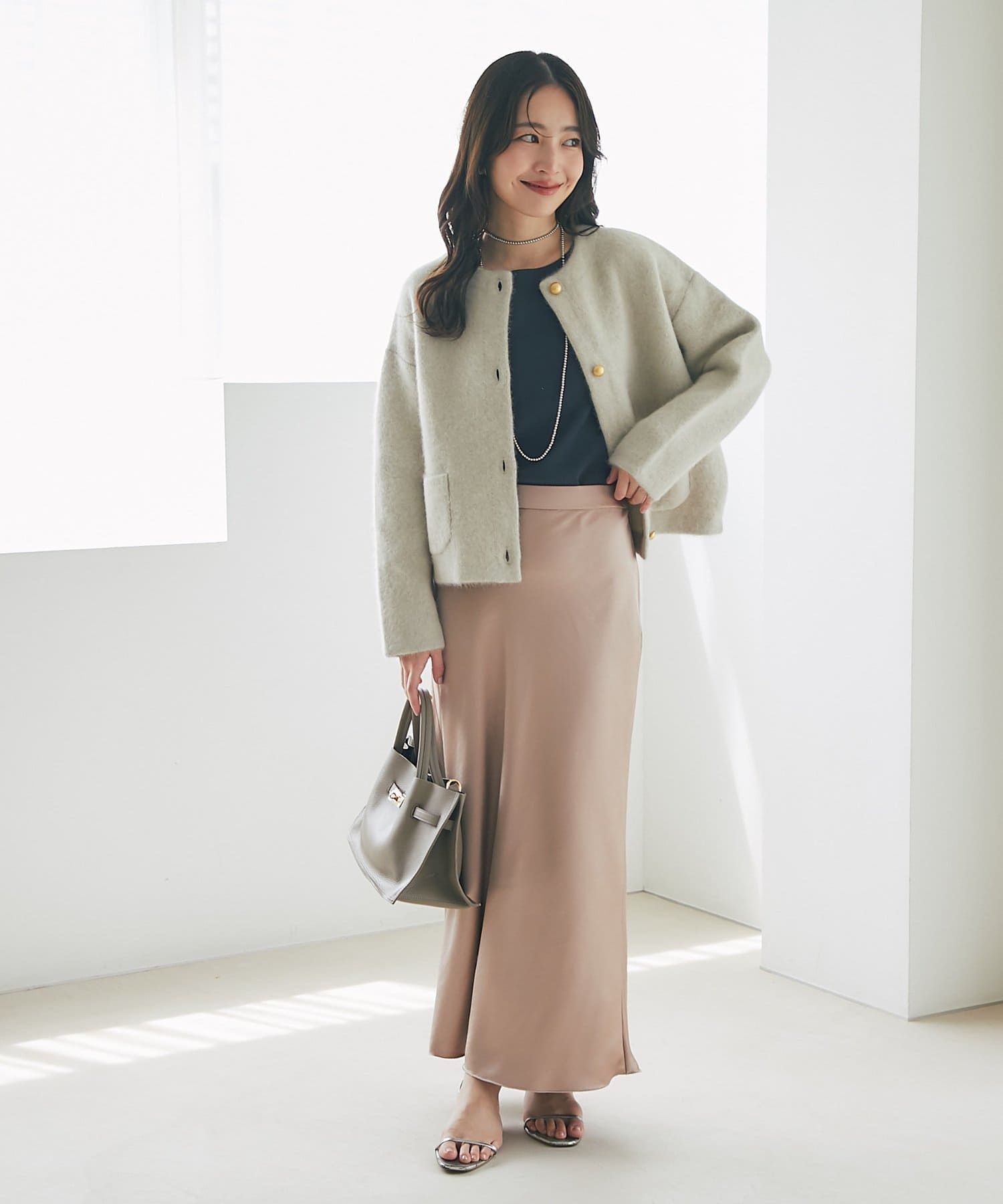 ブラウスやシャツ合わせで女性らしいスタイルや、ニットやコートとの相性も抜群です。