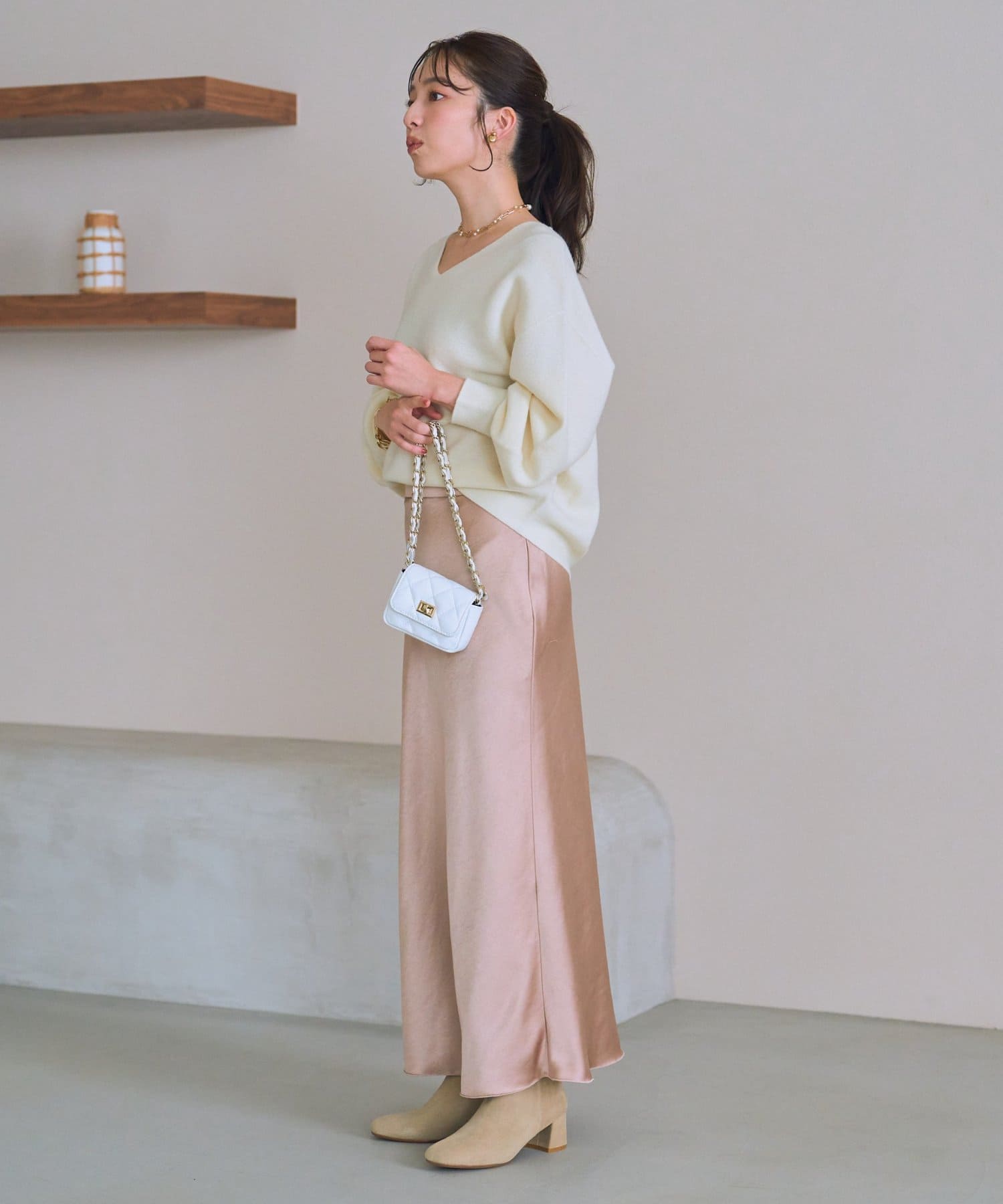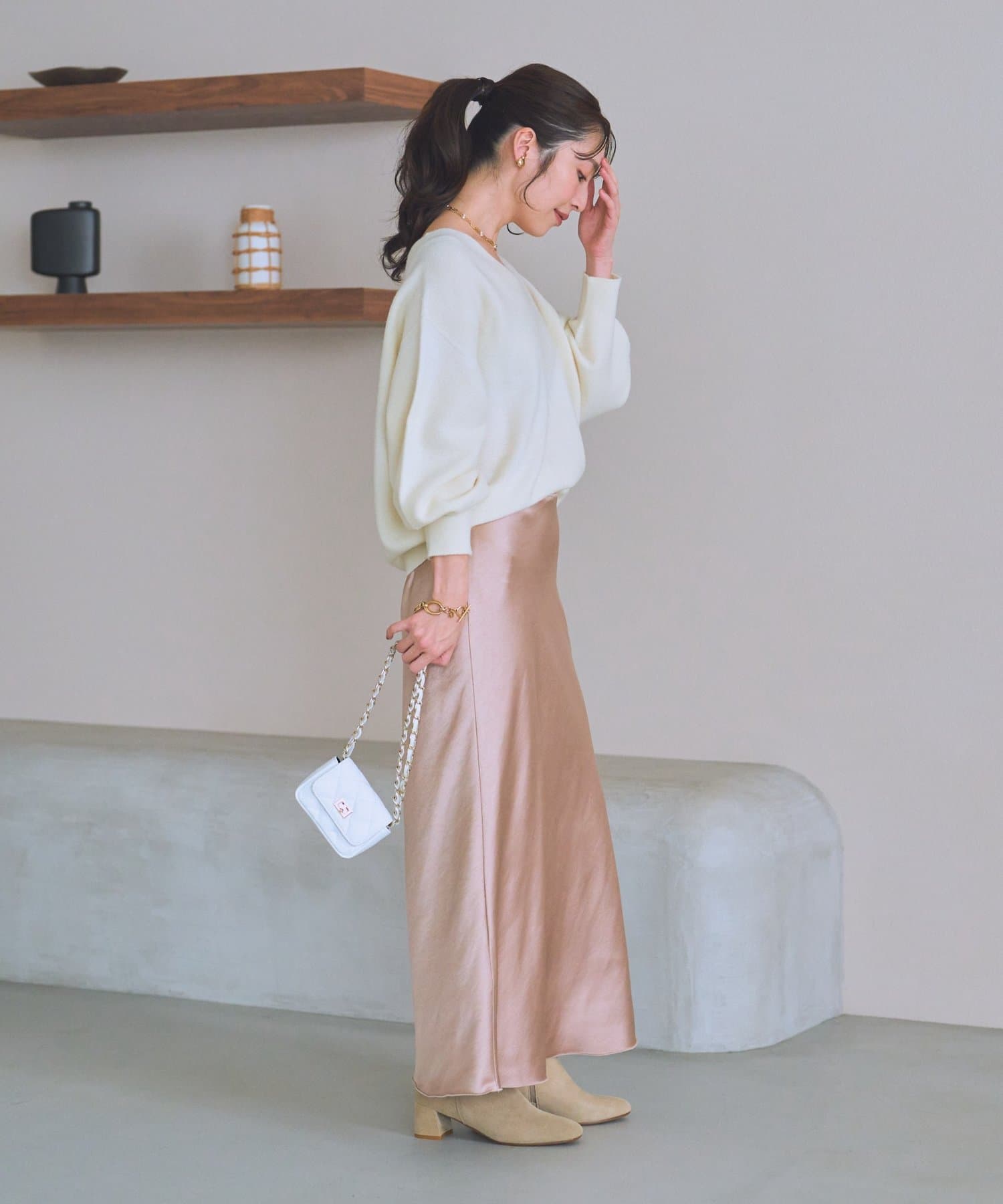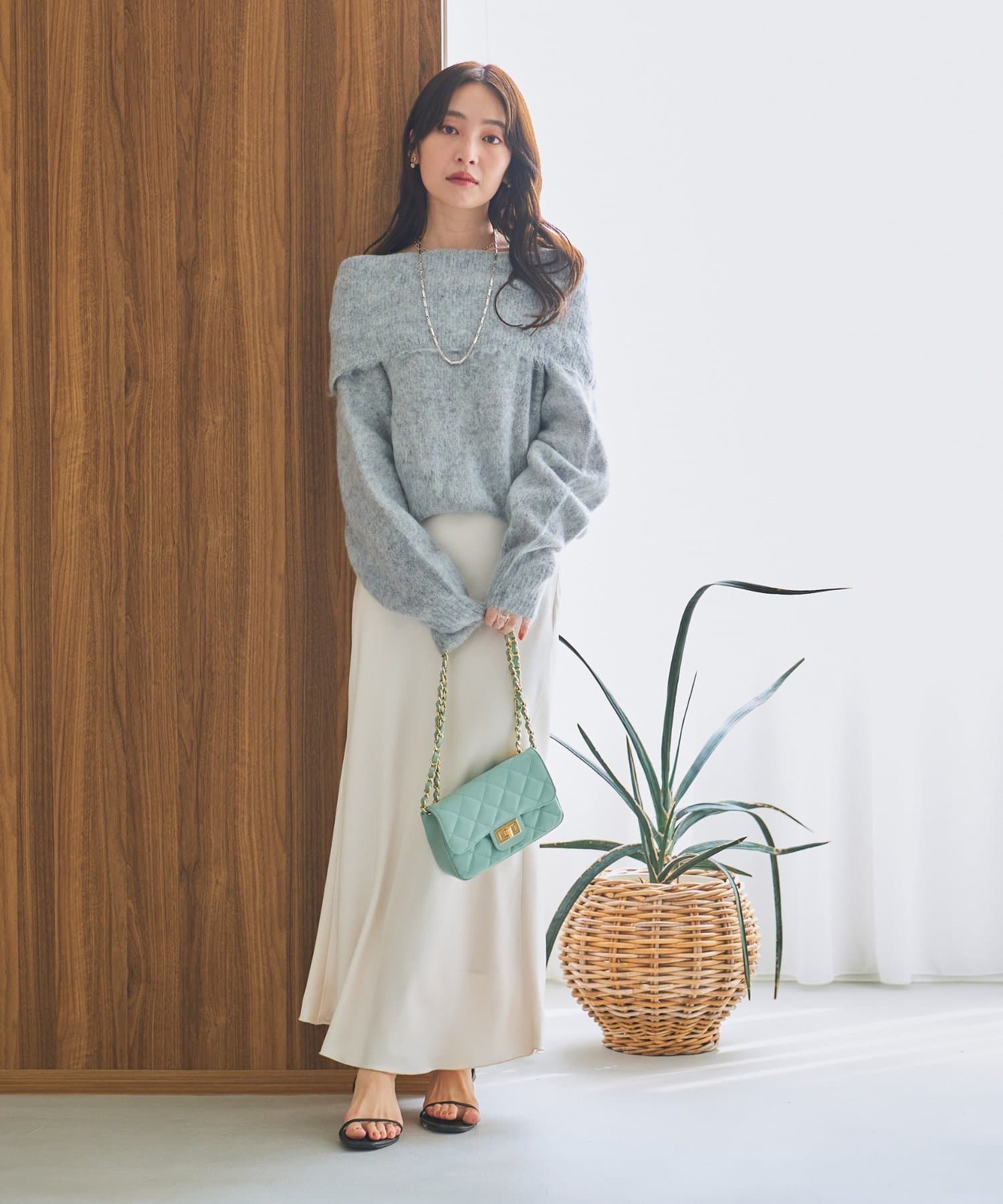 ブラウスやシャツ合わせで女性らしいスタイルや、ニットやコートとの相性も抜群です。