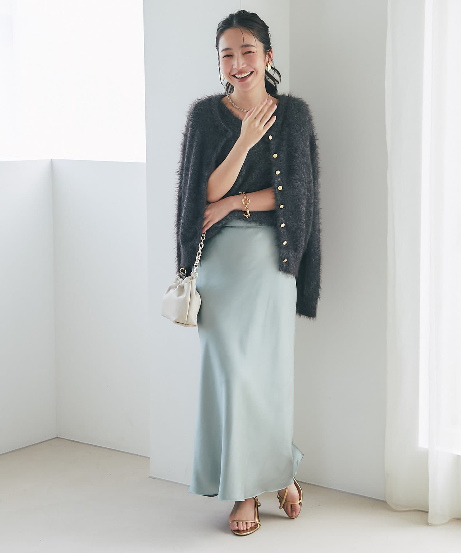 選べる4サイズ!!艶めく素材と落ち感が女性らしさを引き立てるスカート