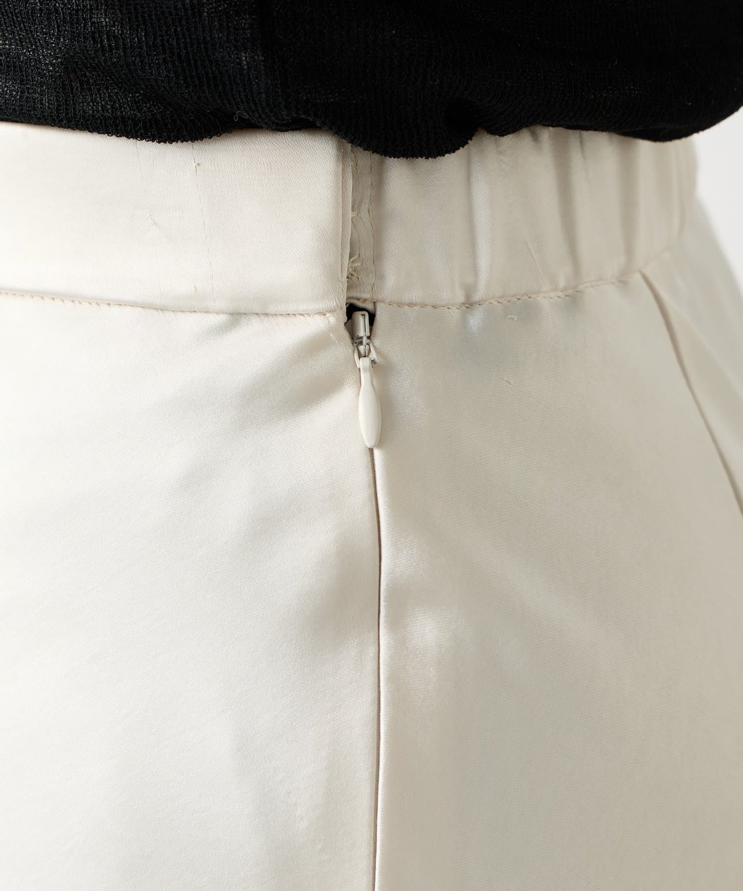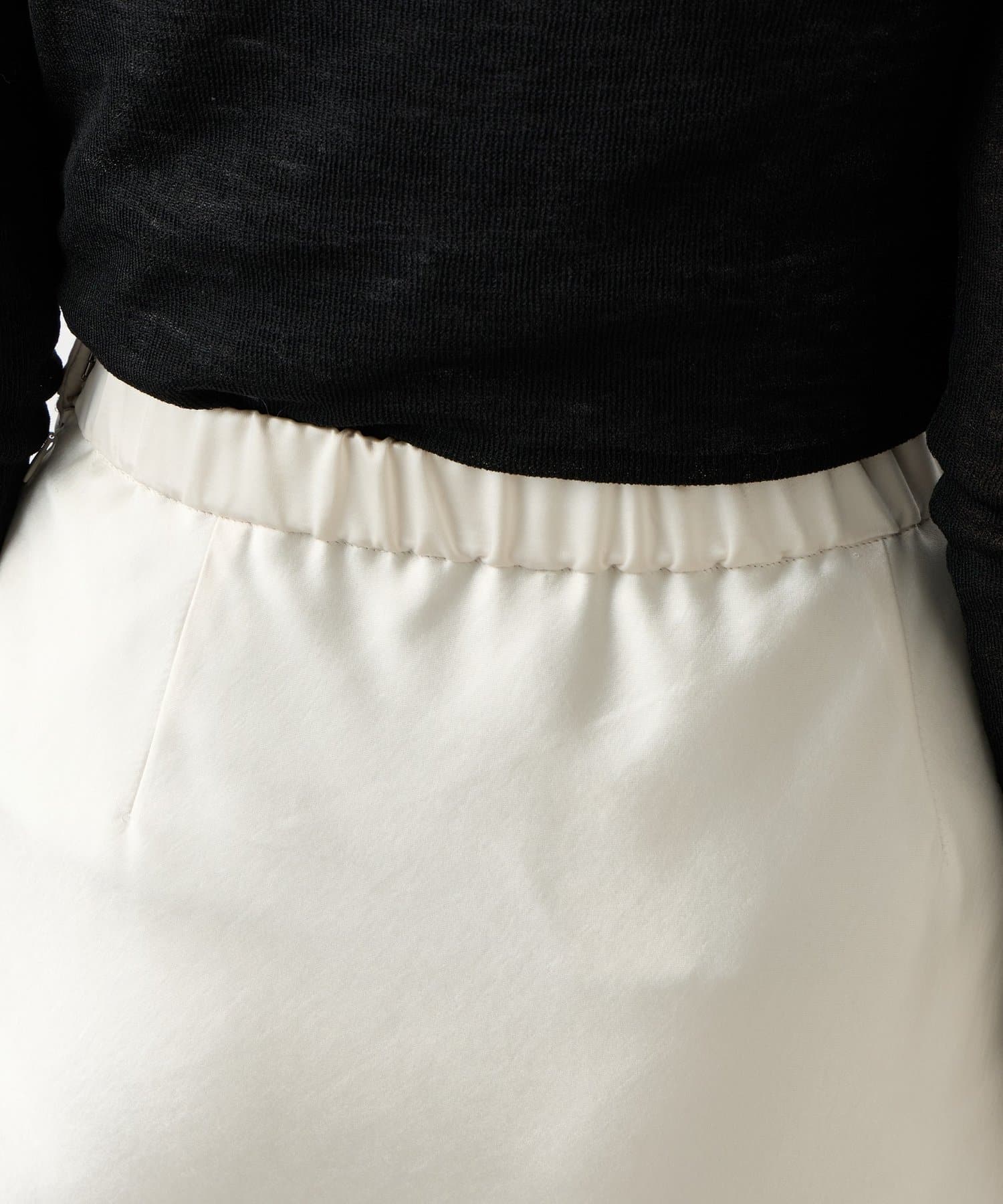 上品な光沢感とすっきりとしたしなやかなシルエットが魅力のサテンスカート。