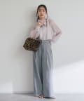 レースやフリルなど甘めのブラウスを合わせれば、女性らしいバランスのとれた着こなしに。