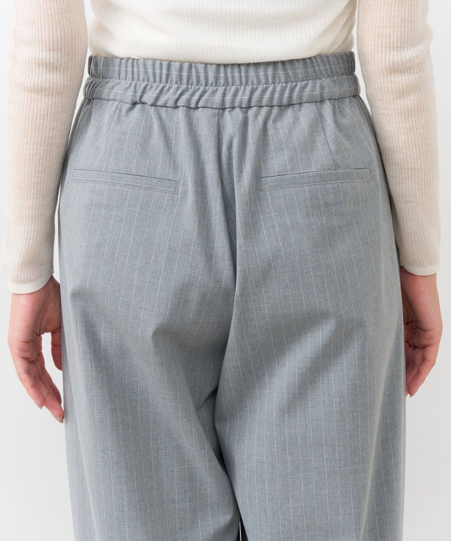ウエスト後ろはゴム仕様でフィット感がありながらもストレスフリーな穿き心地です。