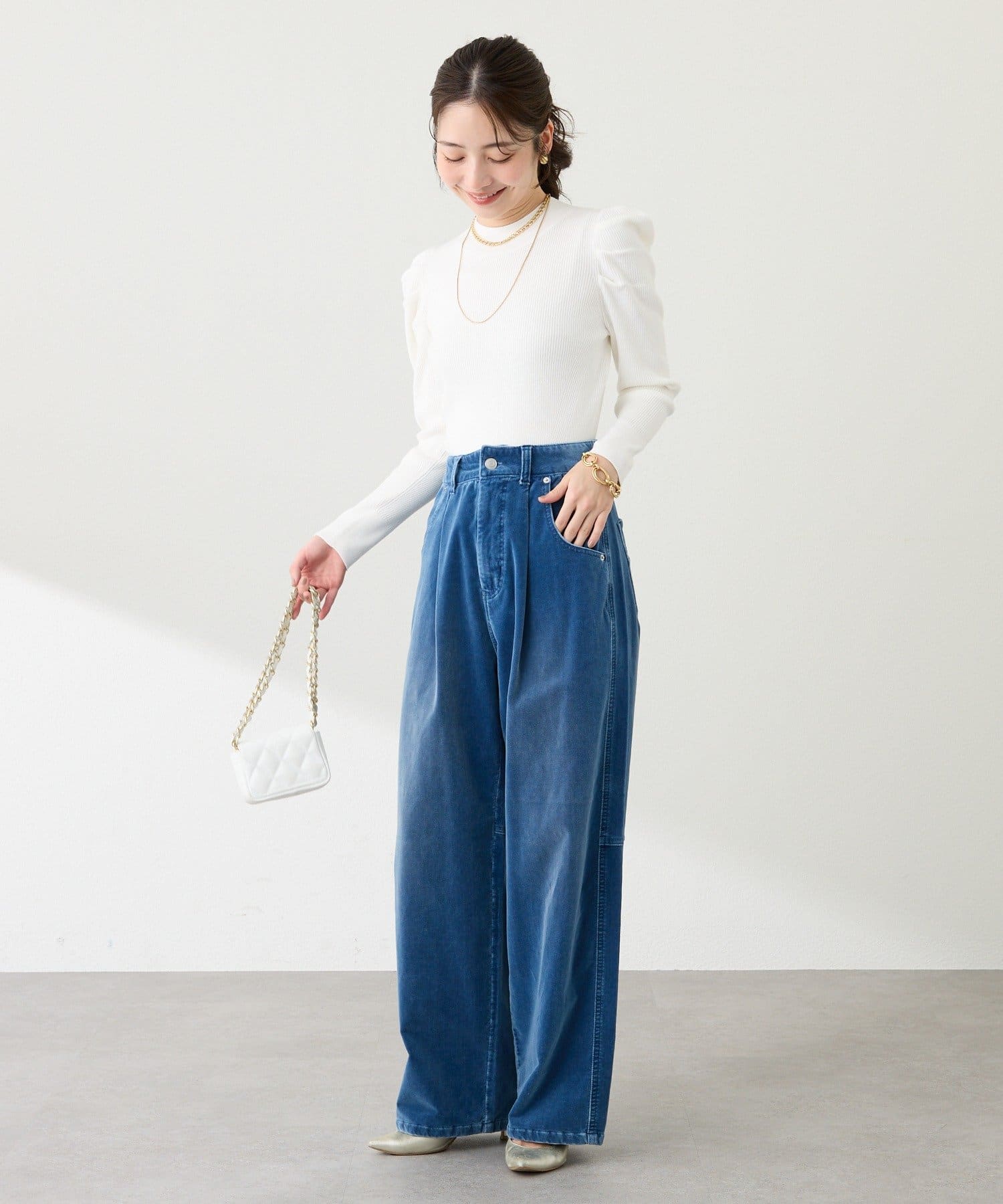 トレンド感のあるワイドシルエットで、リラックスした着心地ながらも