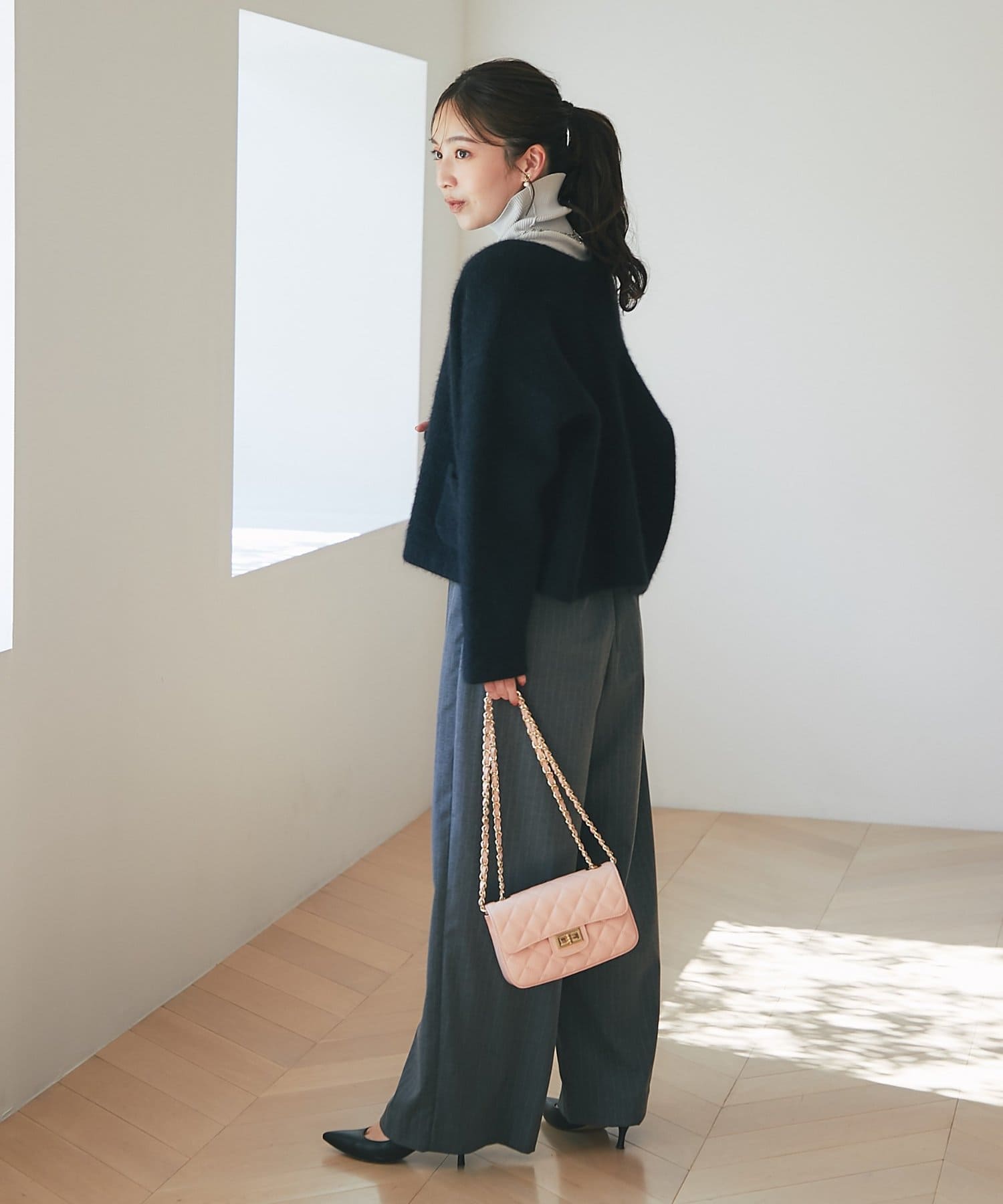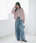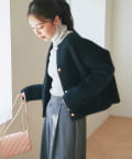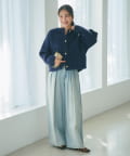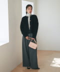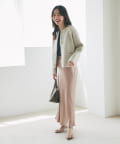 きれいめブラウスとテーパードパンツに羽織れば、オフィスにもぴったりの上品なスタイルに。